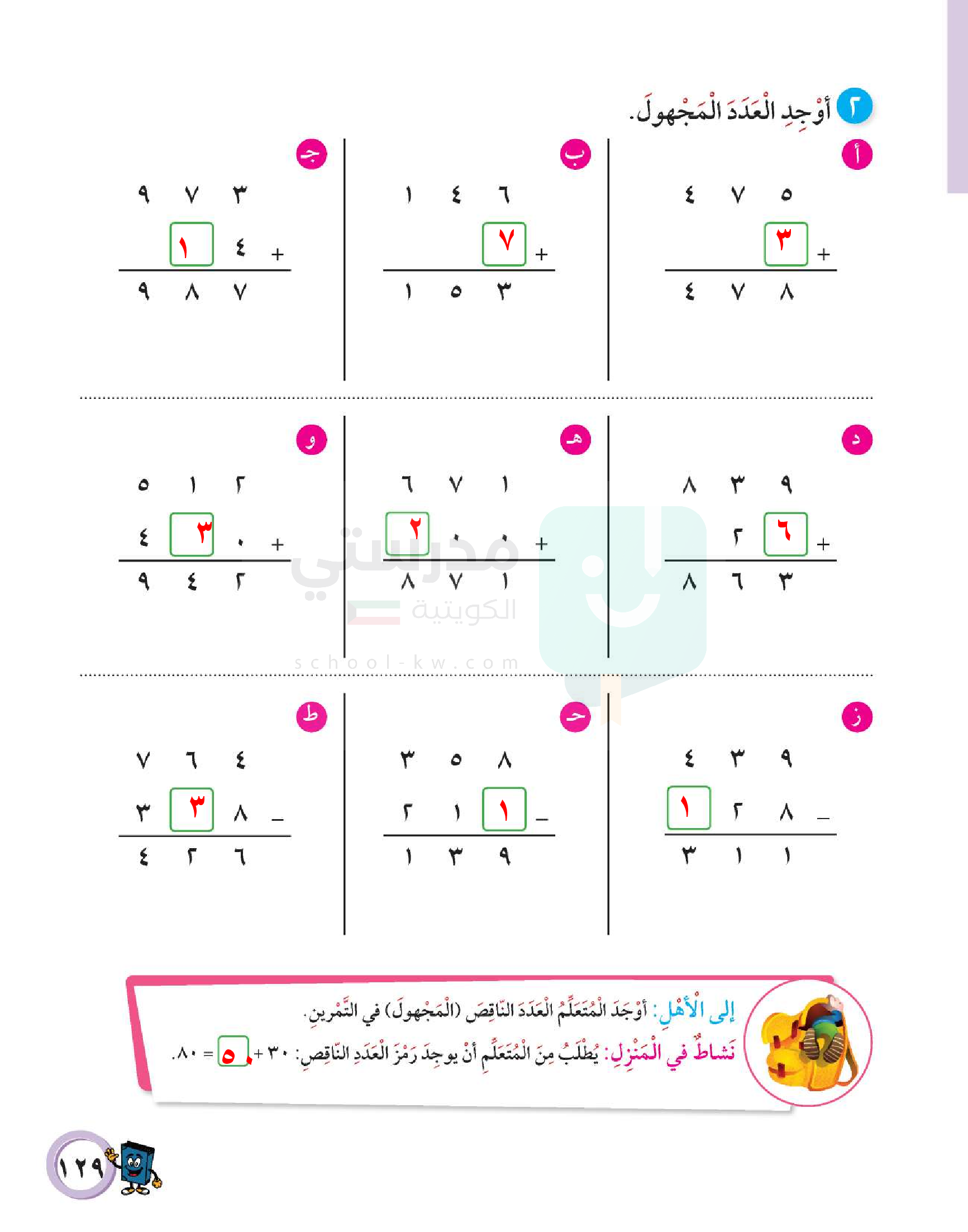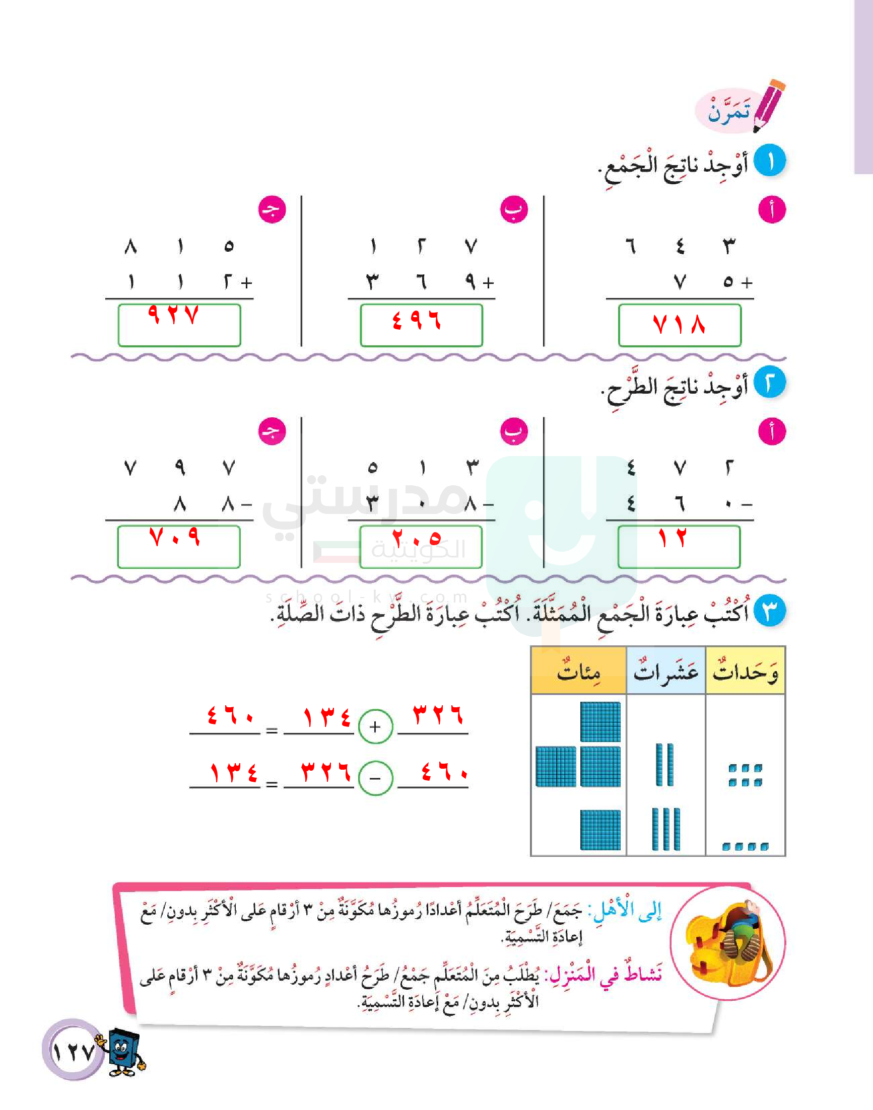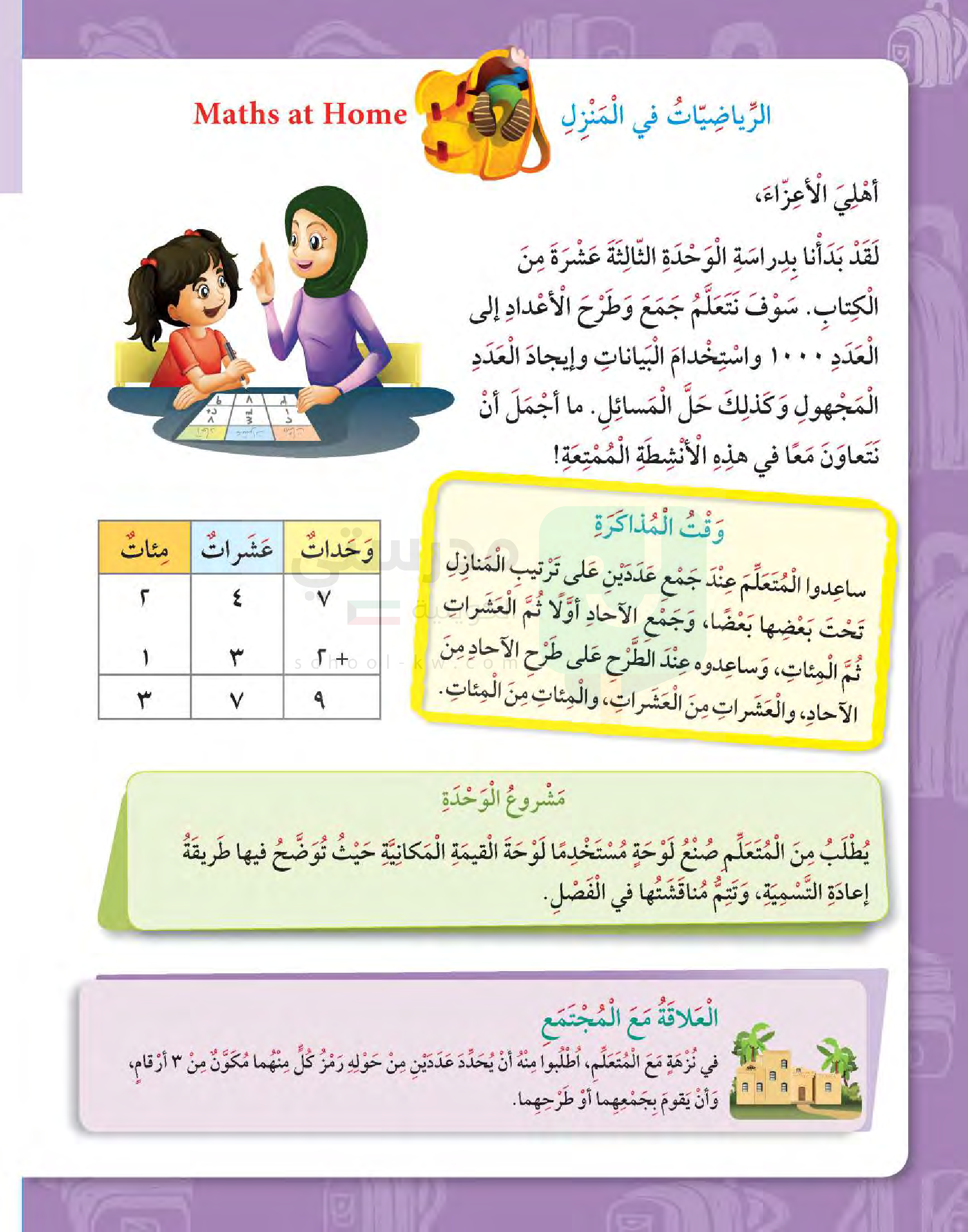 مراجعة وحدة جمع/ طرح الأعداد من 0 إلى 1000