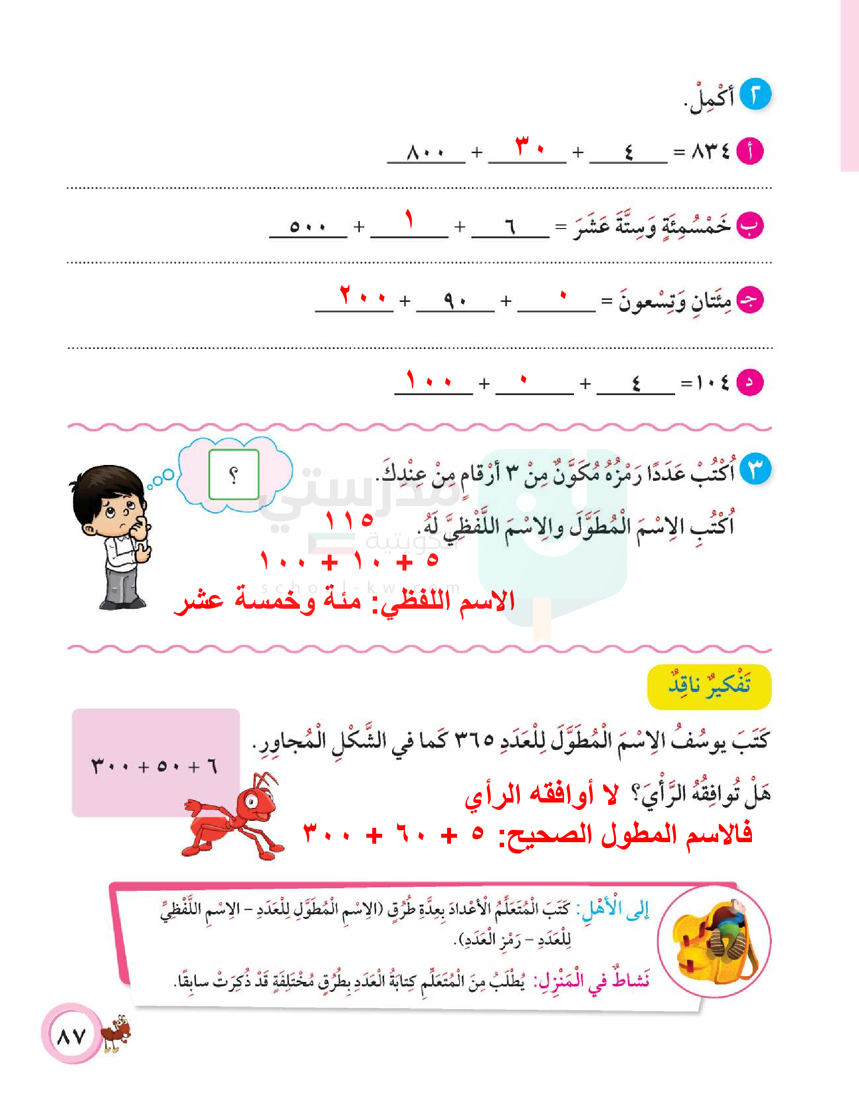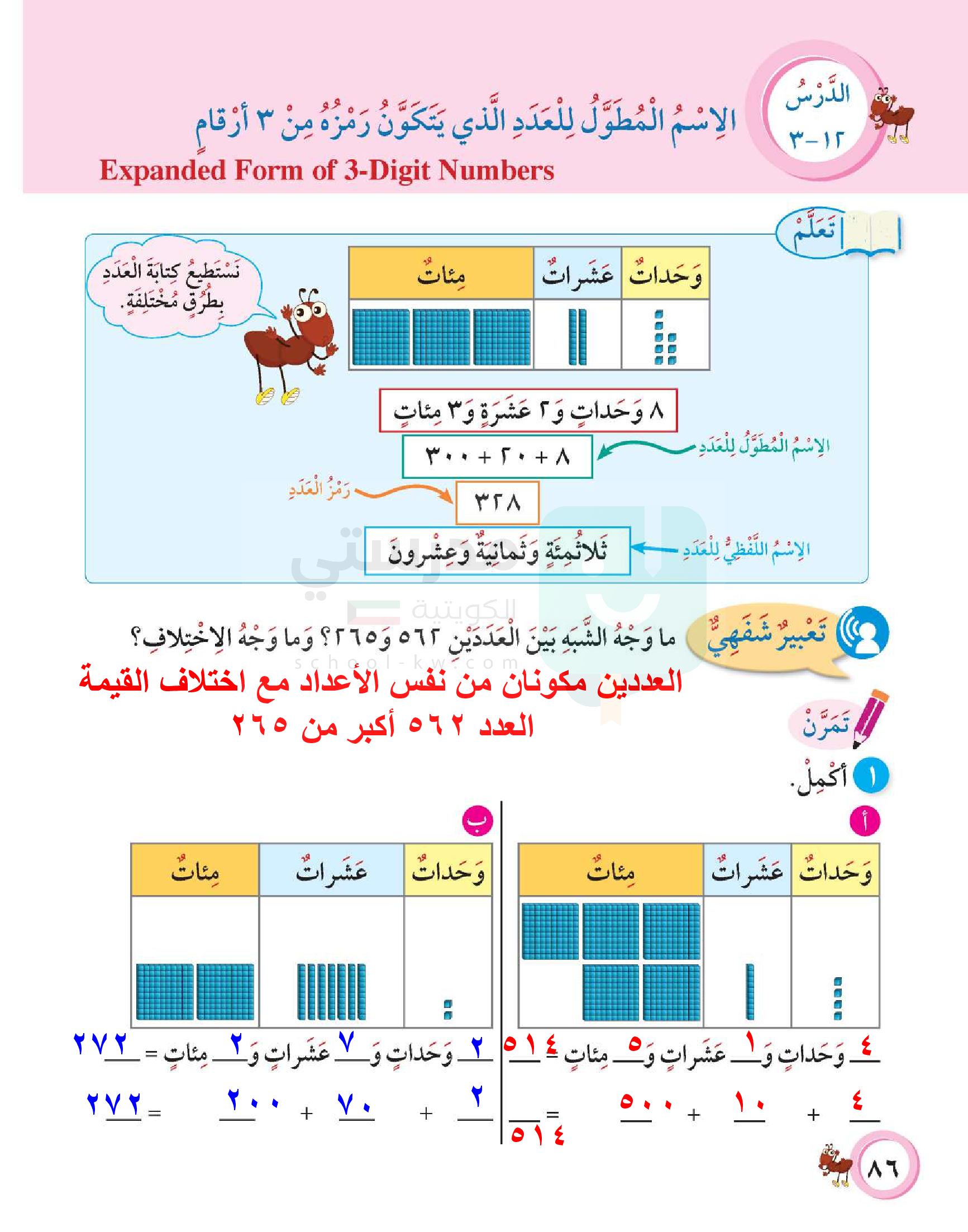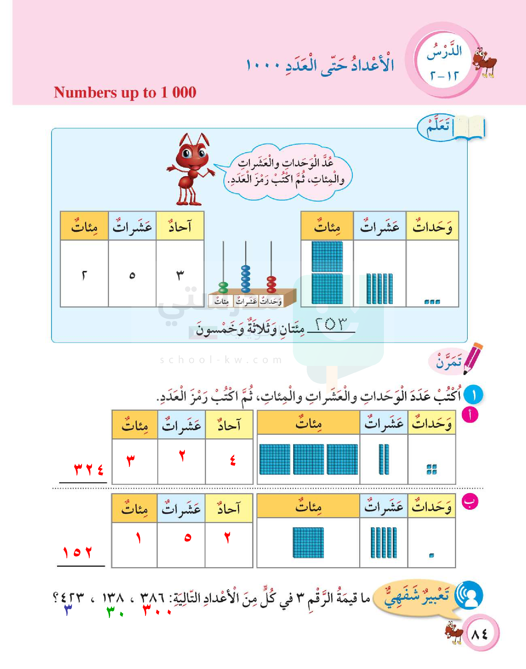 مراجعة وحدة جمع/ طرح الأعداد من 0 إلى 1000