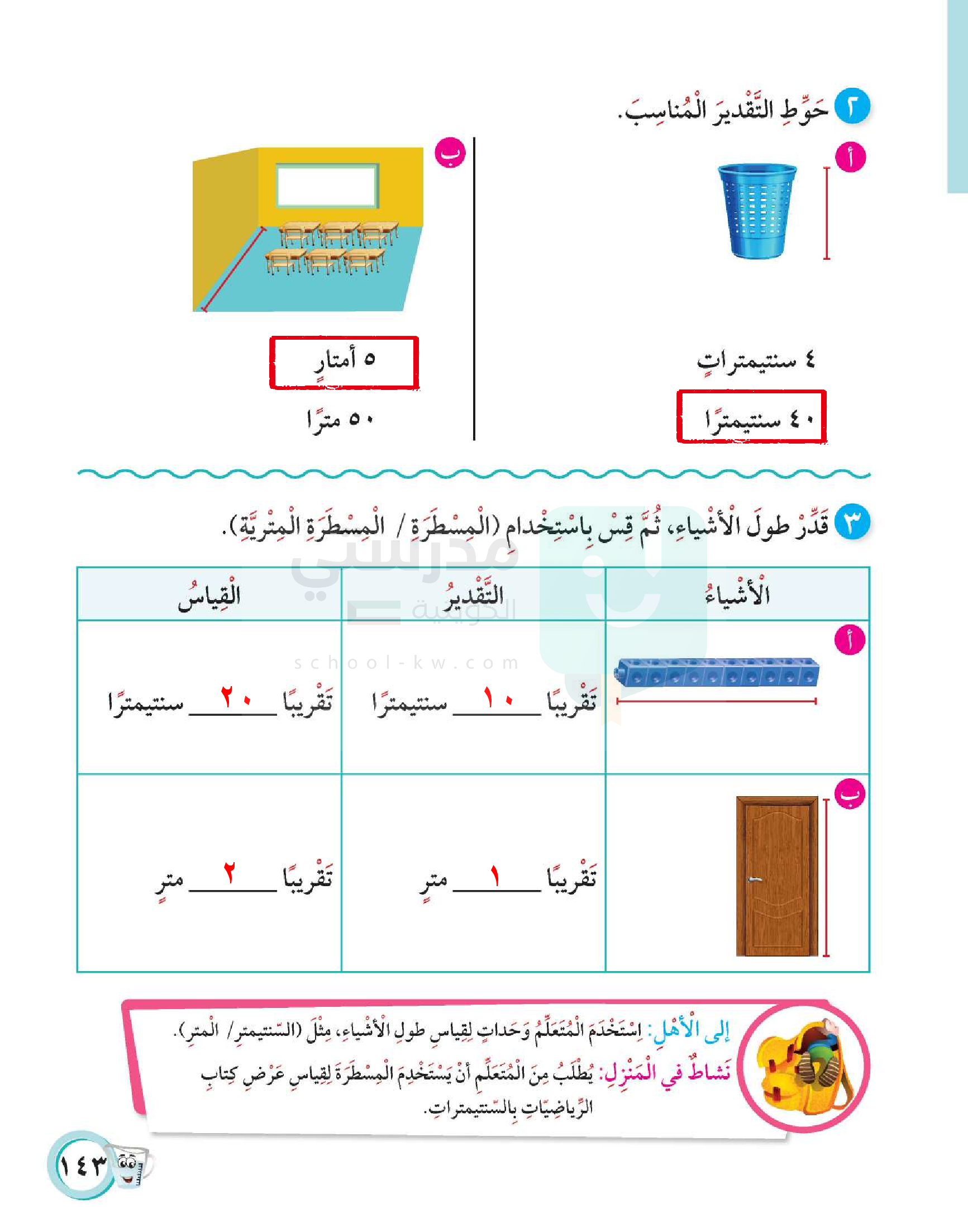 قياس الطول بوحدات مقننة (السنتيمتر - المتر)