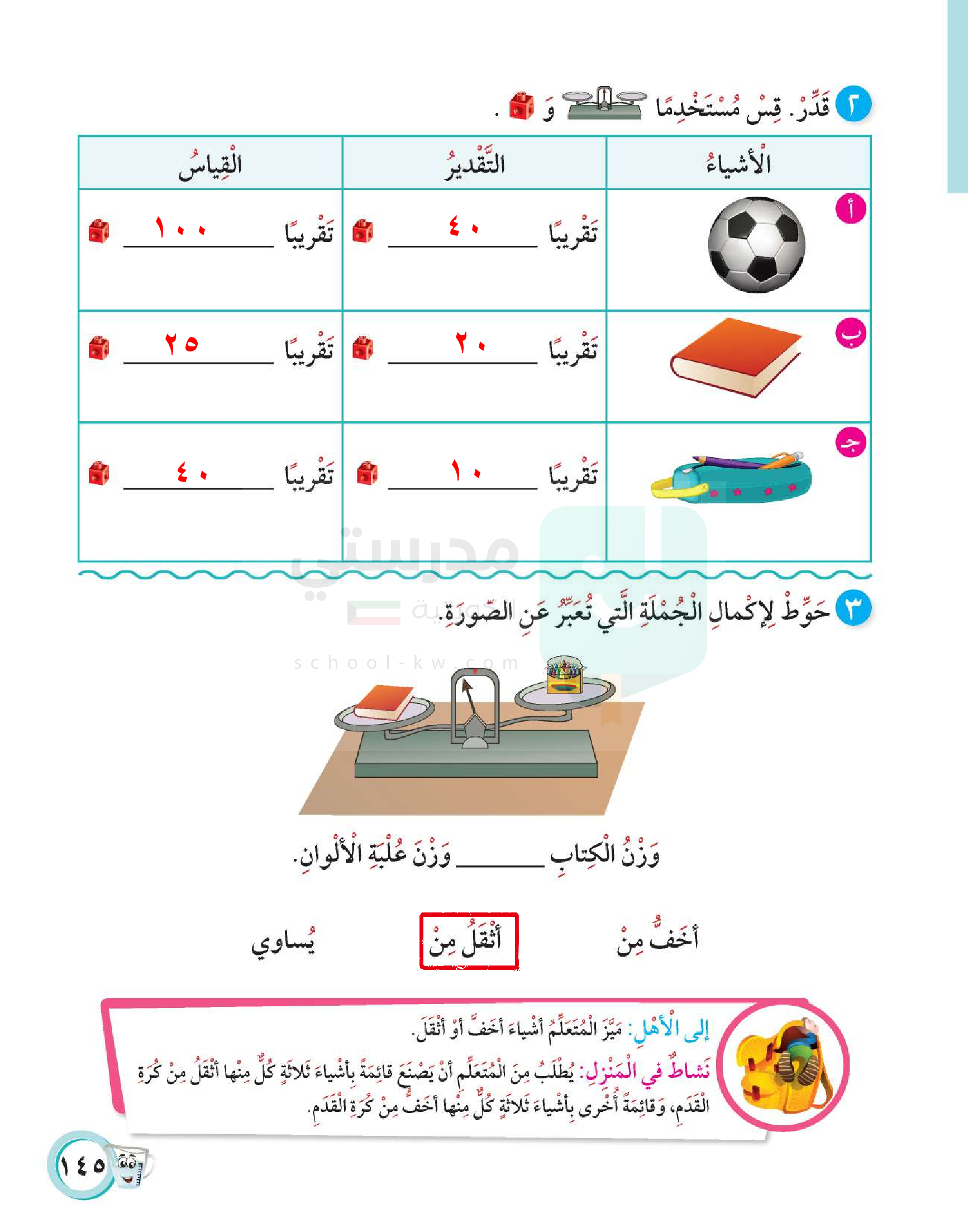 قياس الوزن بوحدات مقننة (الكيلوجرام)