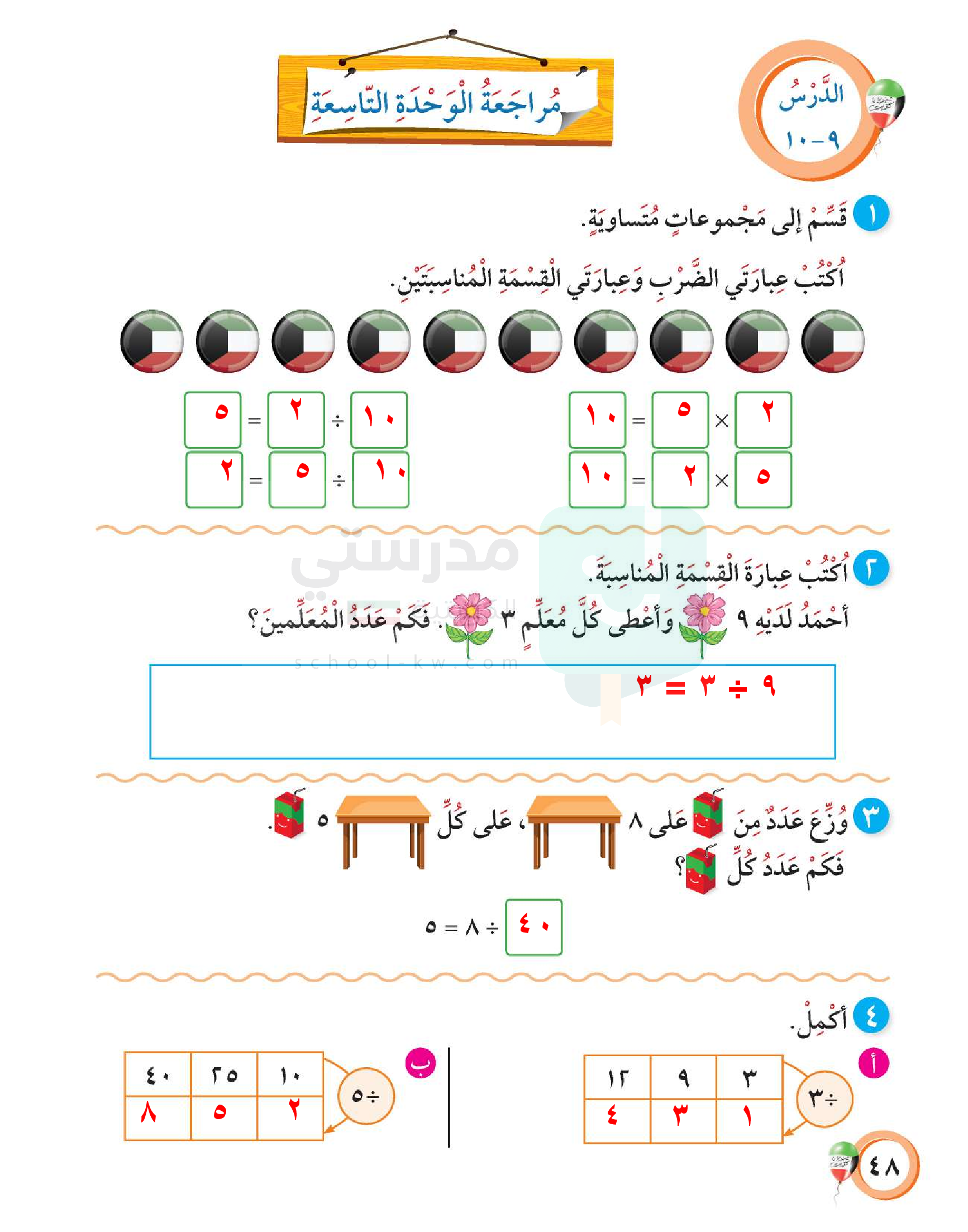 مراجعة وحدة تدريبات على ضرب الأعداد