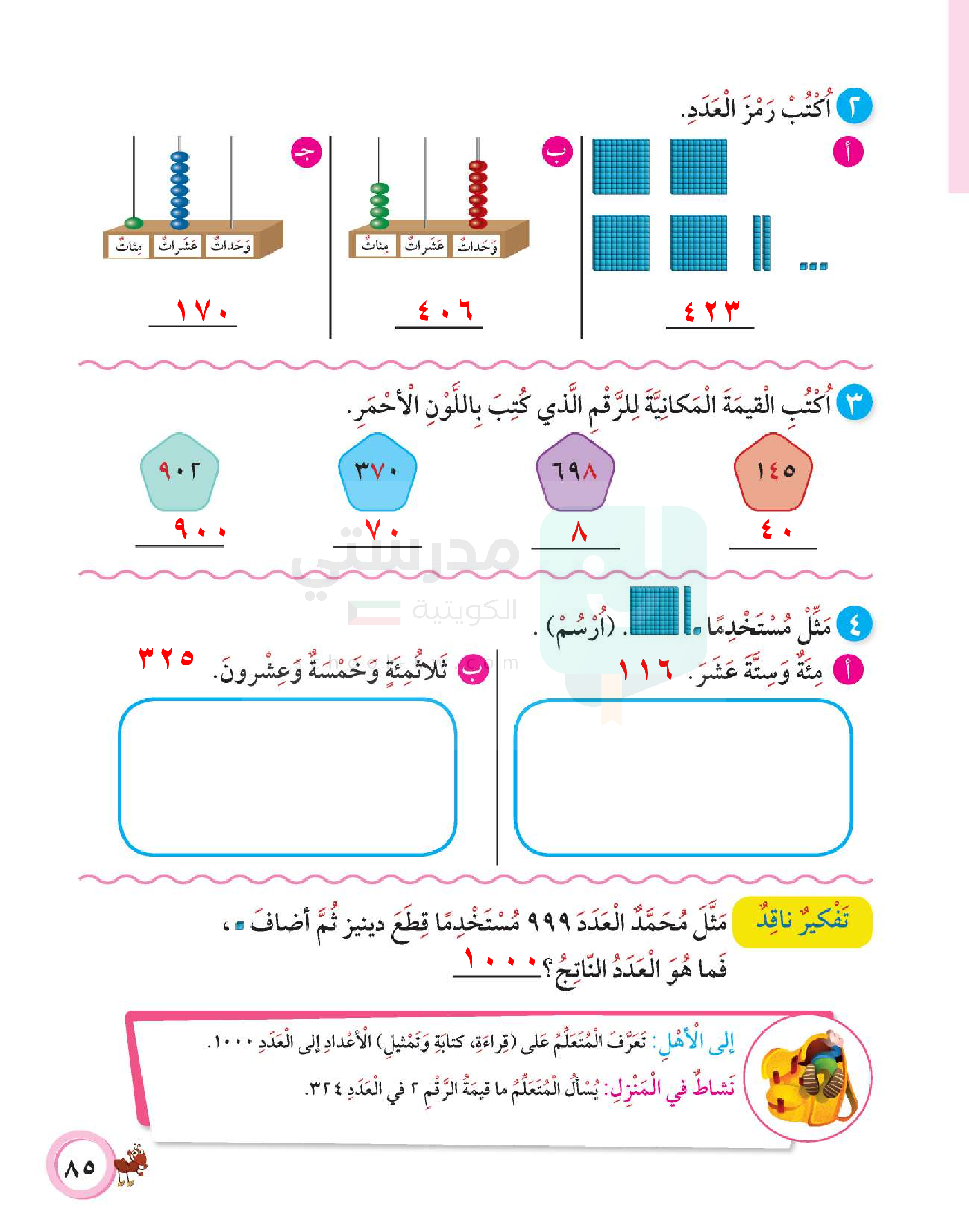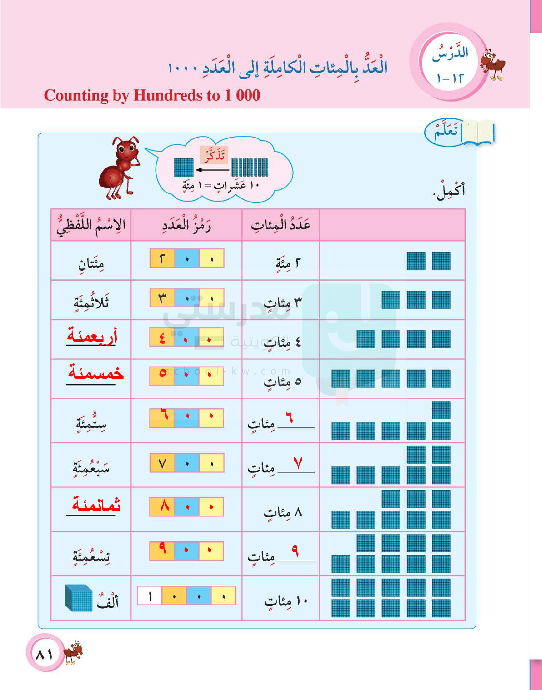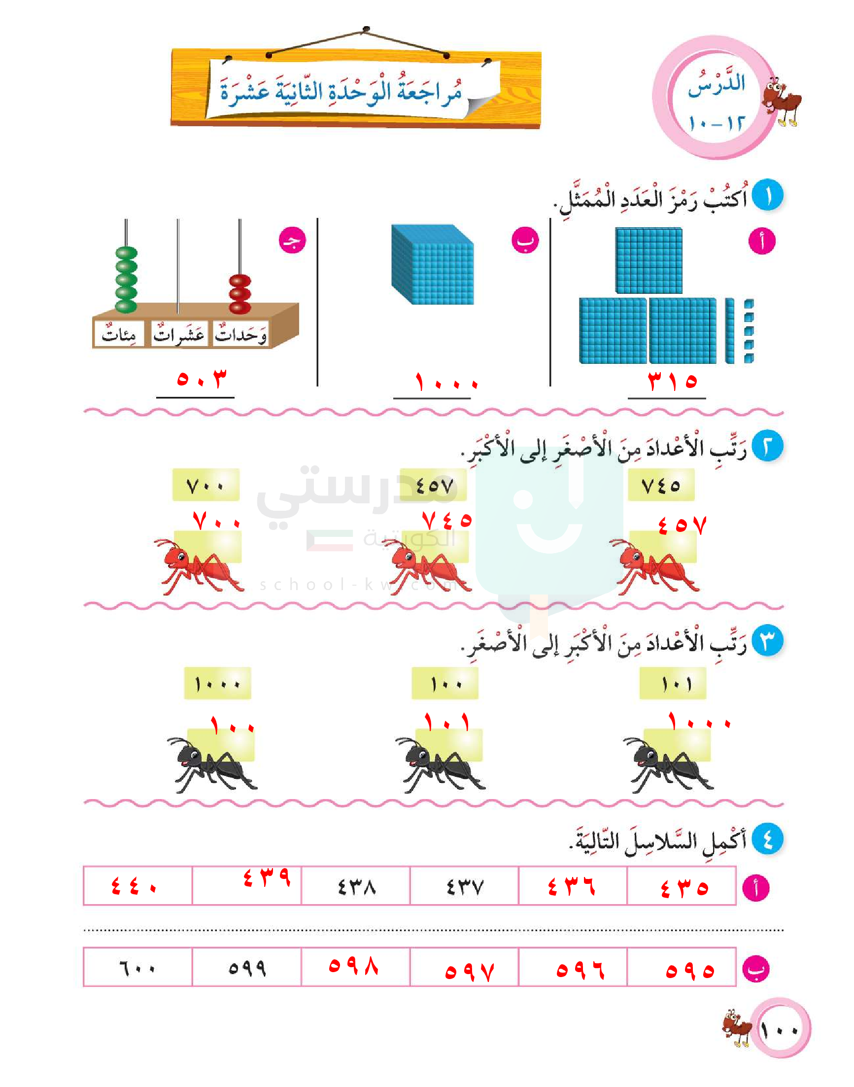 مراجعة وحدة الأعداد الكلية إلى العدد 1000
