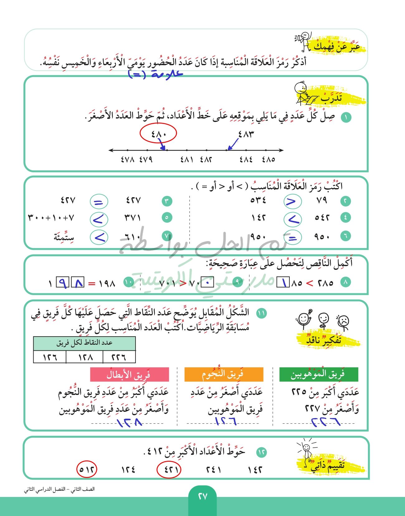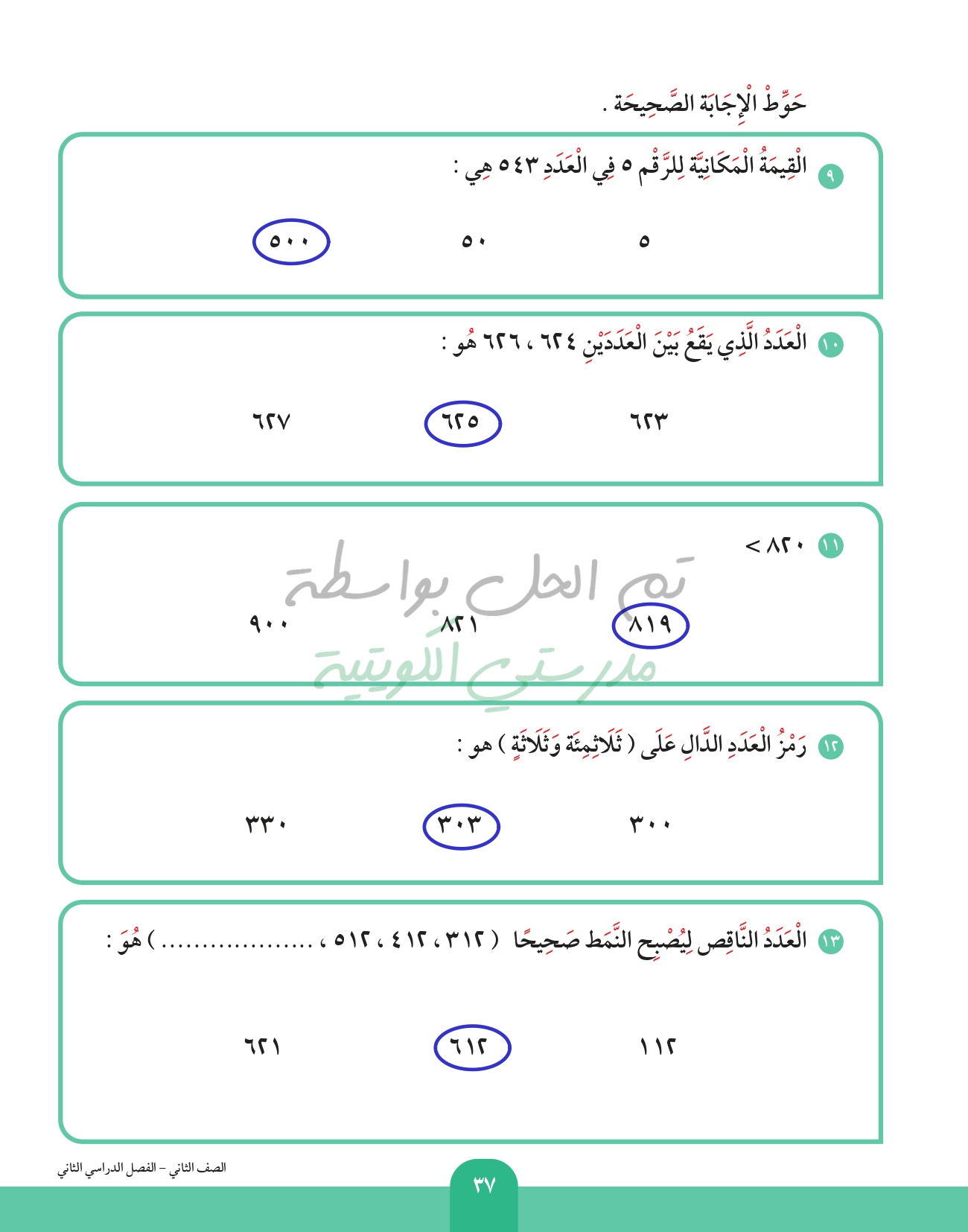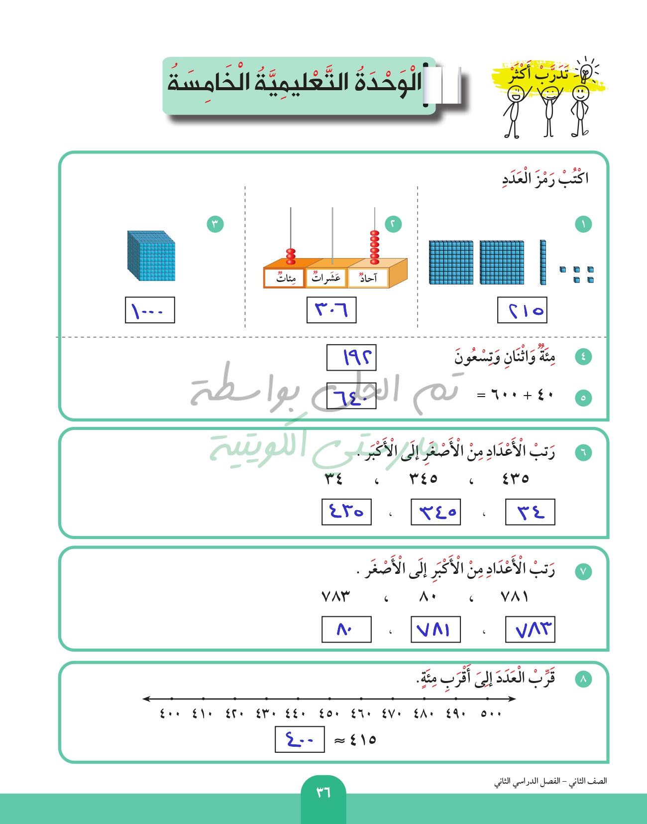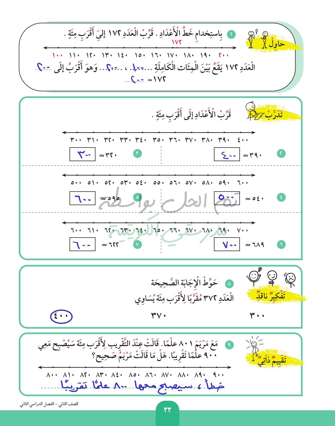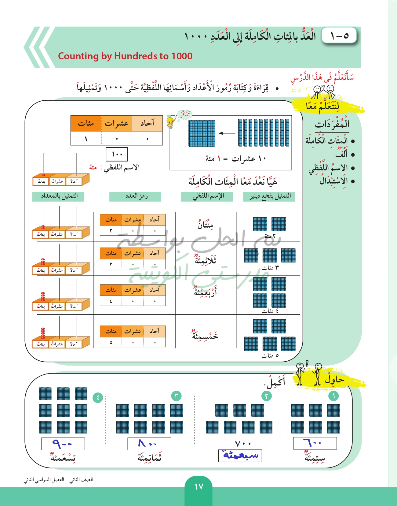 العد بالمئات الكاملة إلى العدد 1000