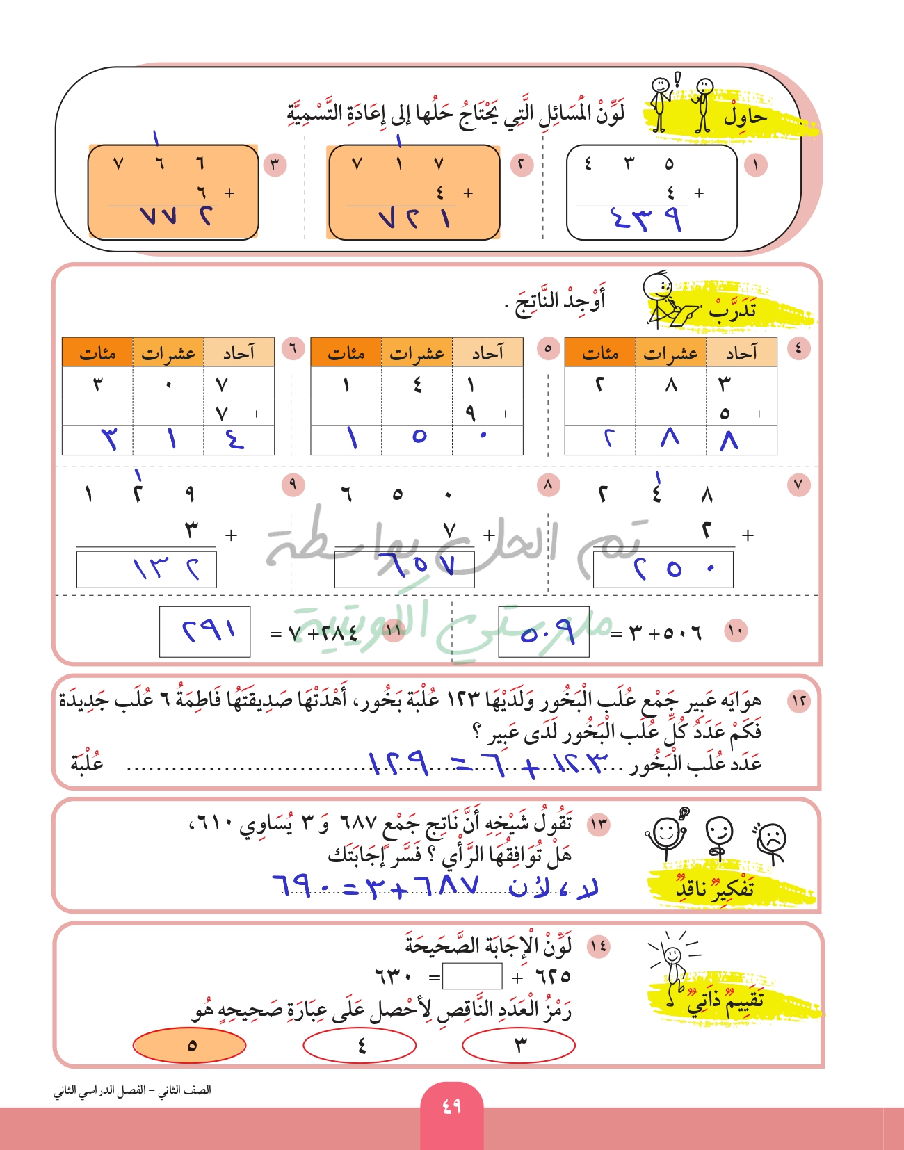 جمع عددين رمز كل منهما مكون من 3 ارقام