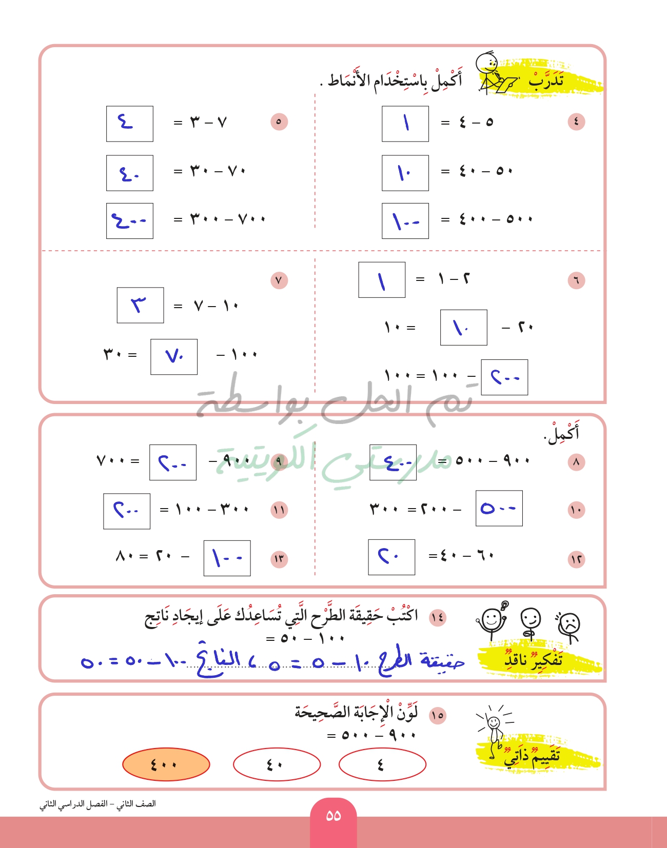 أنماط عملية الطرح