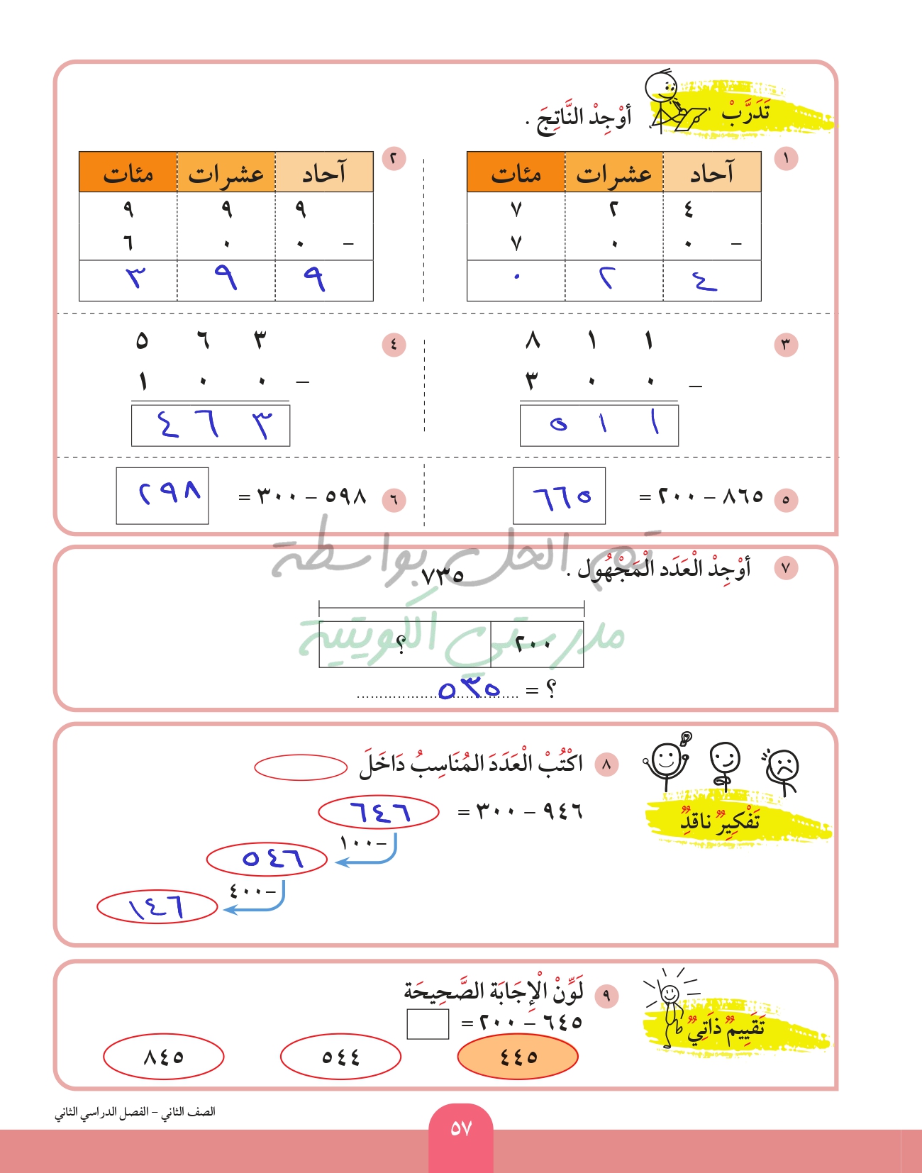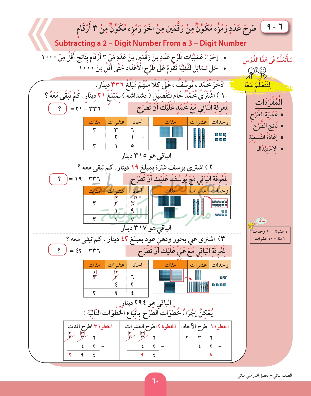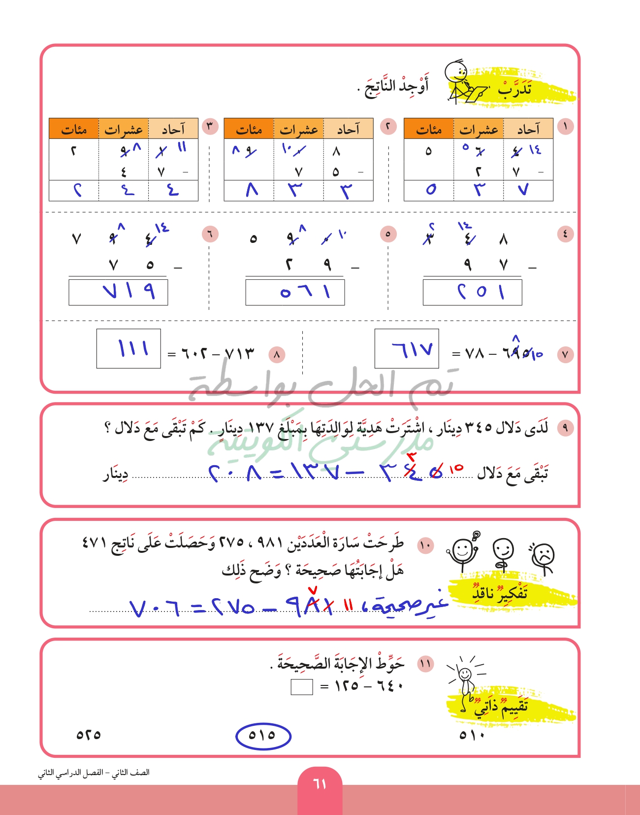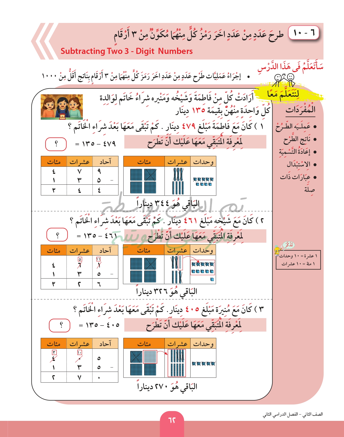 طرح عدد من عدد اخر رمز كل منهما مكون من 3 ارقام