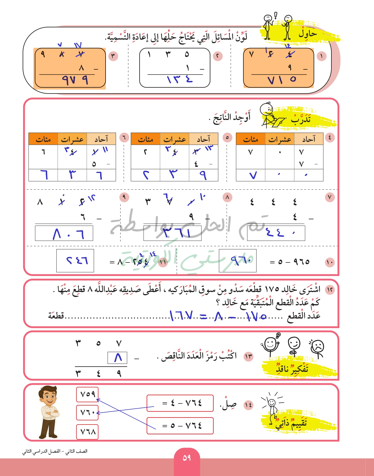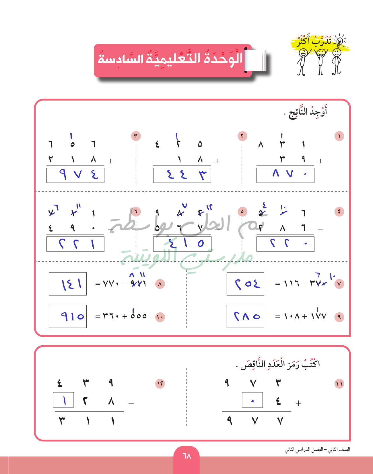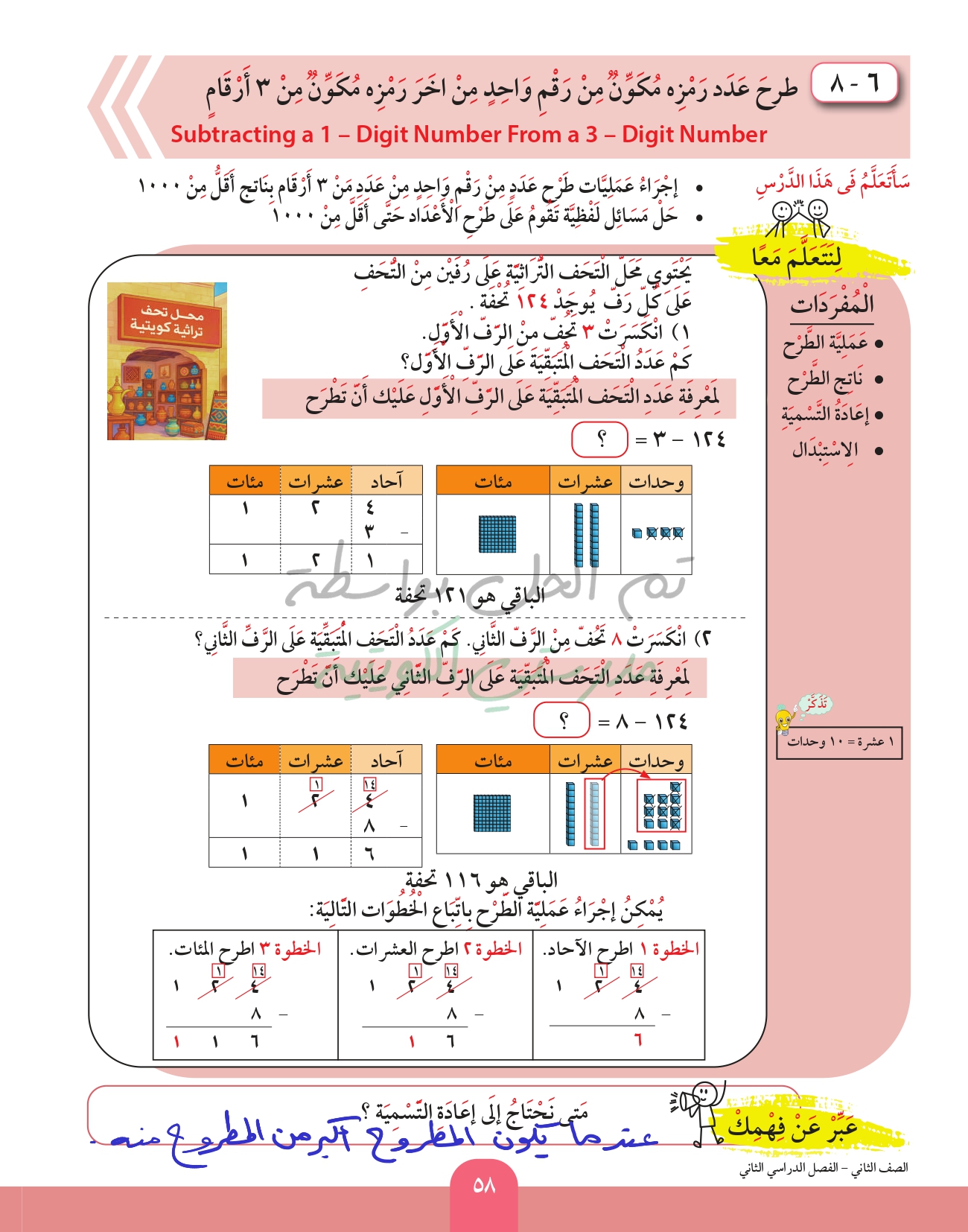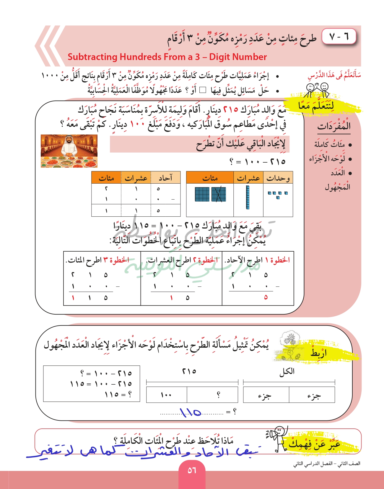طرح عدد من عدد اخر رمز كل منهما مكون من 3 ارقام