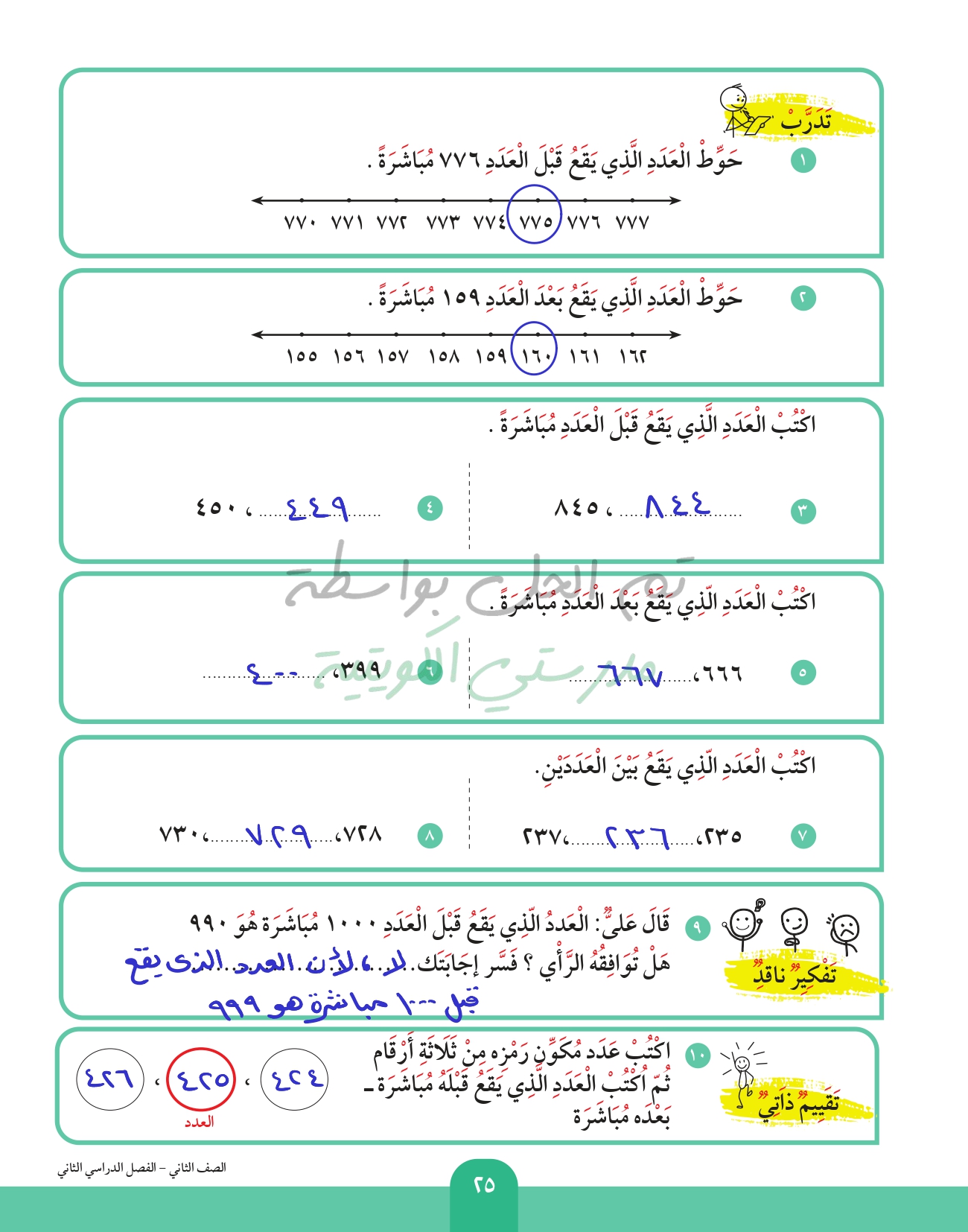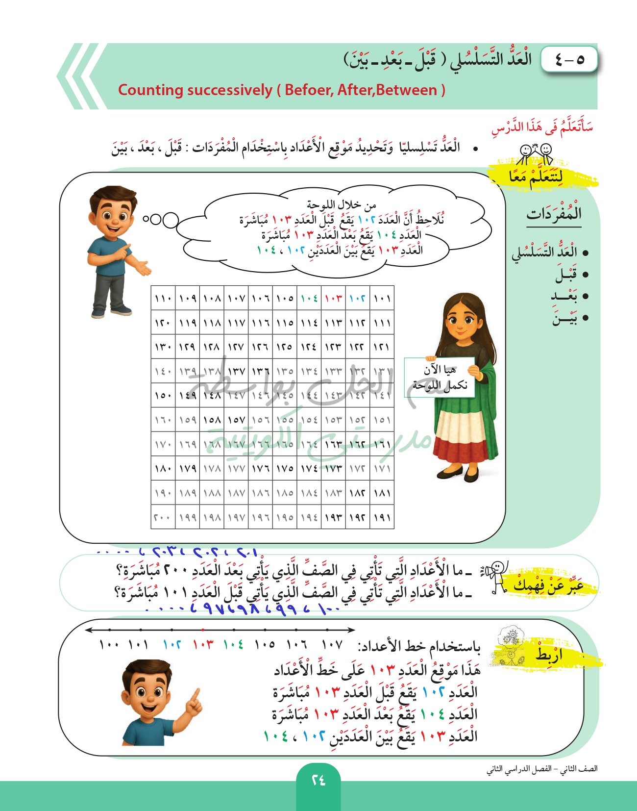 العد التسلسلي (قبل - بعد - بين)
