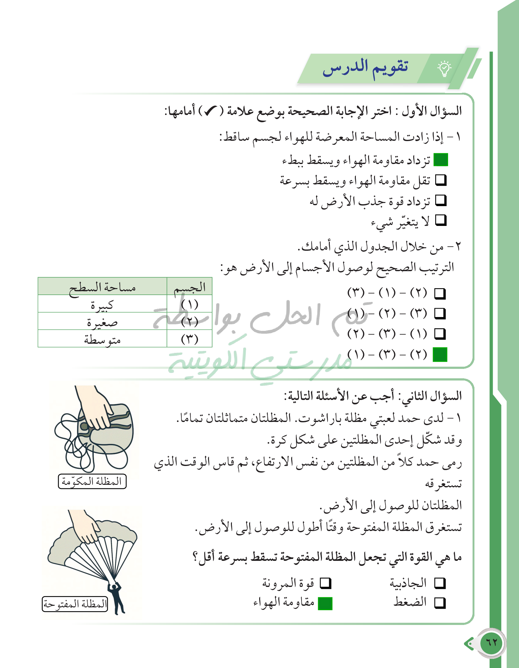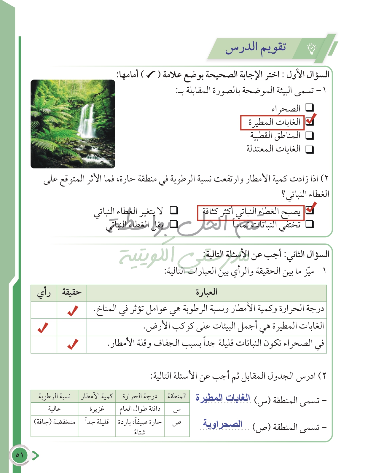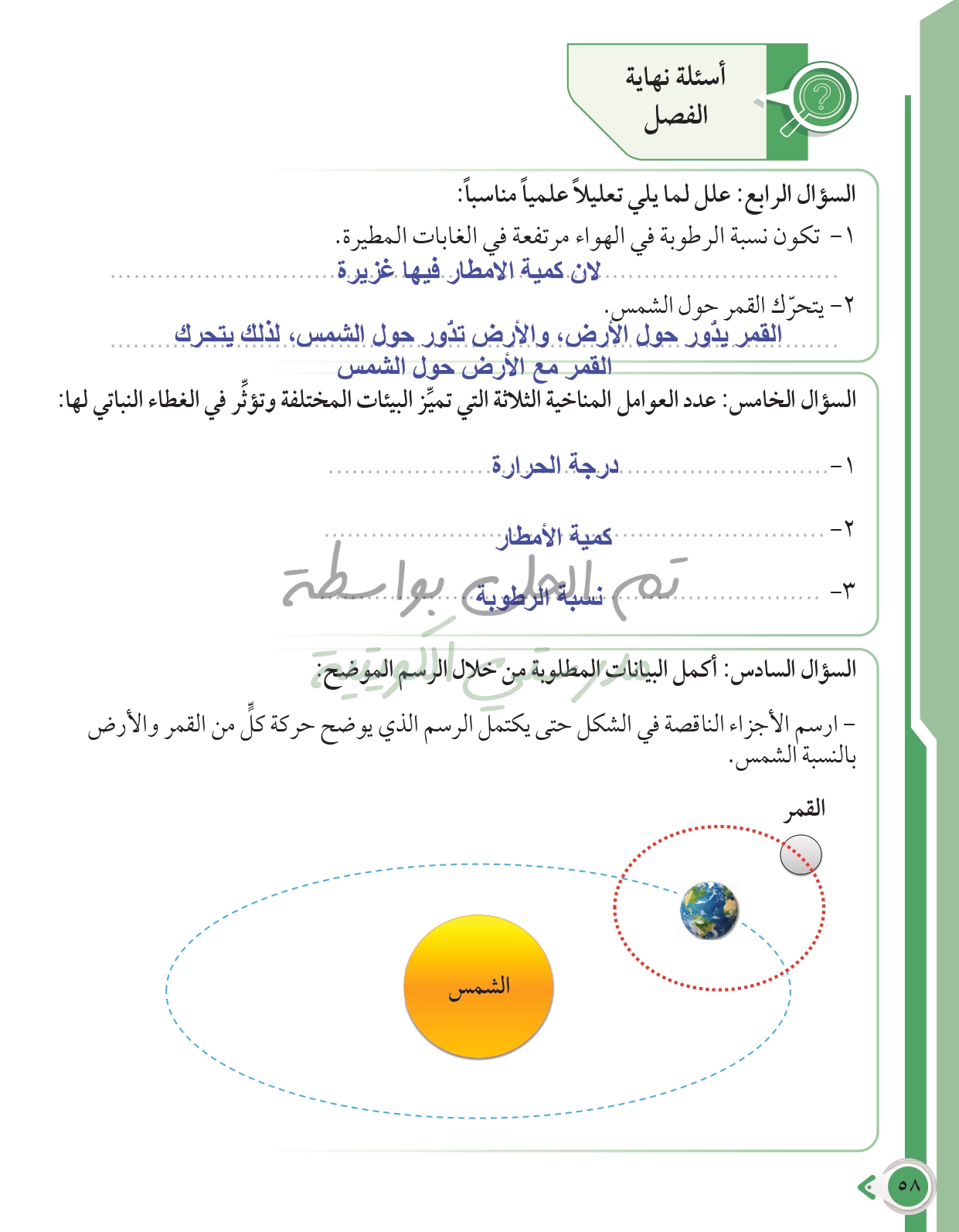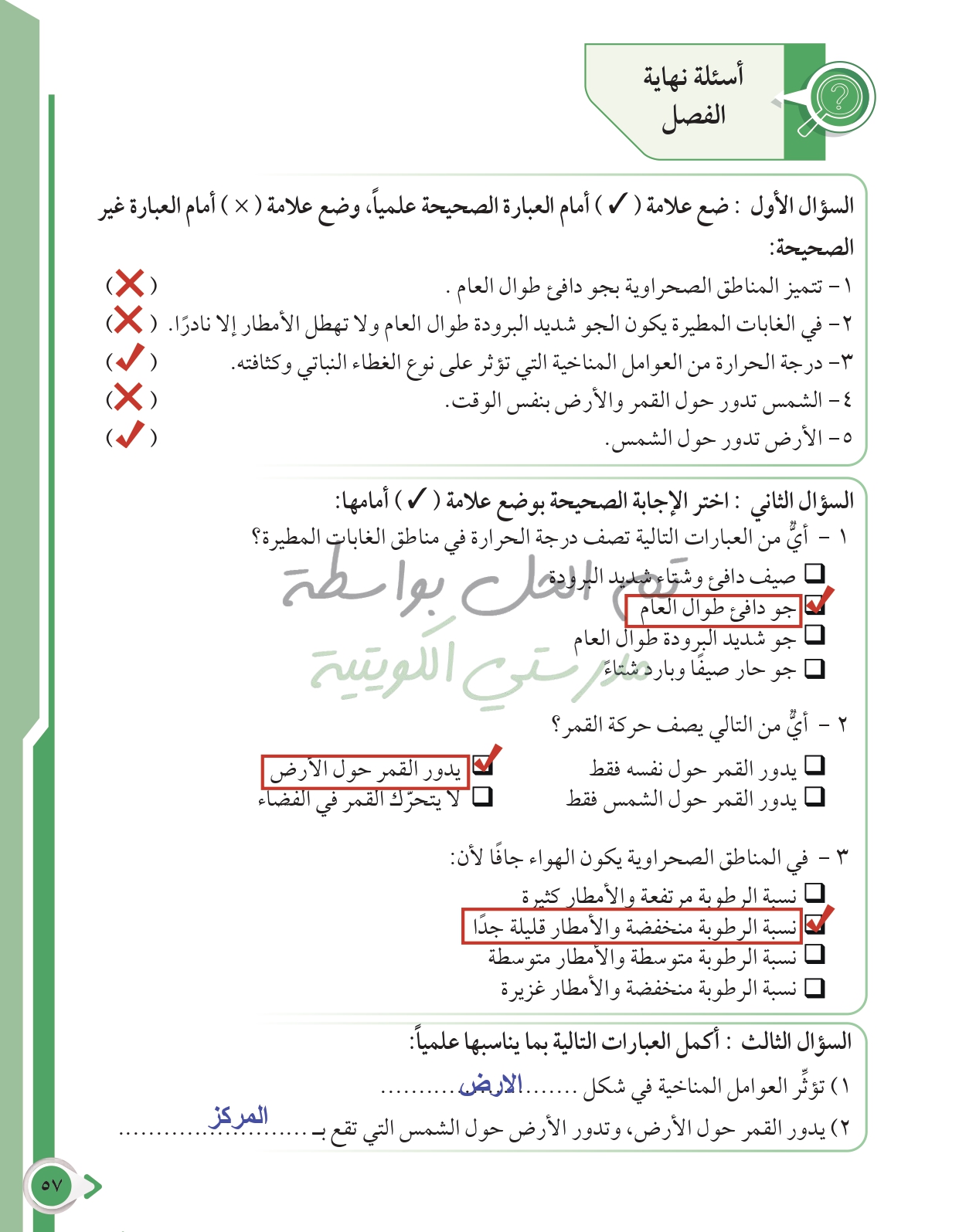 أسئلة نهاية فصل الطقس والفضاء