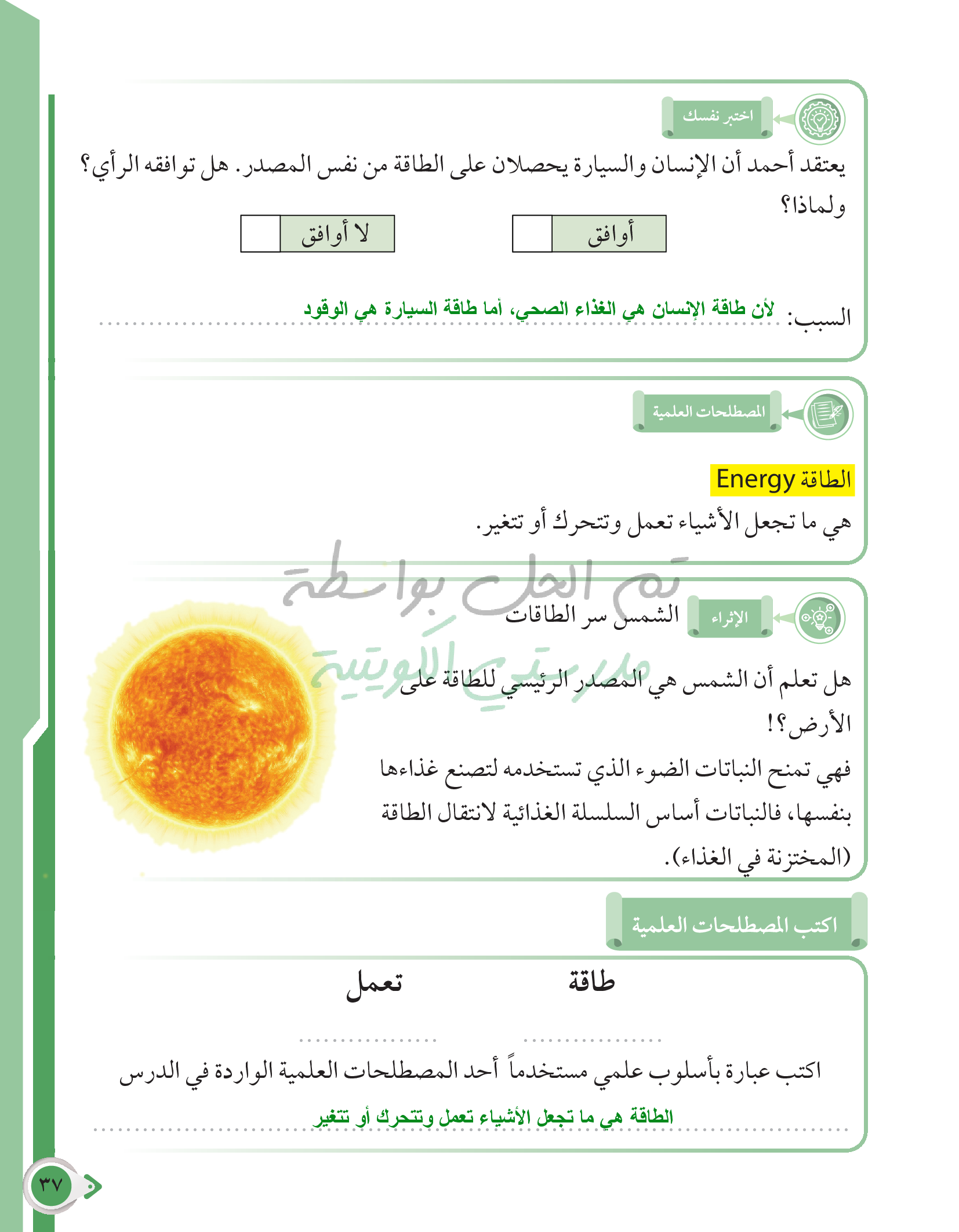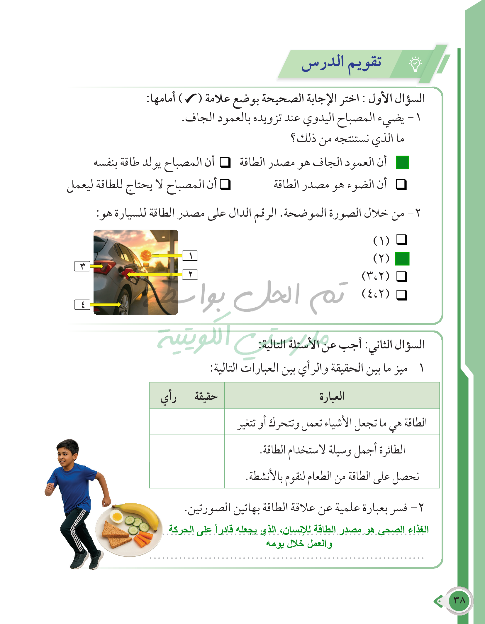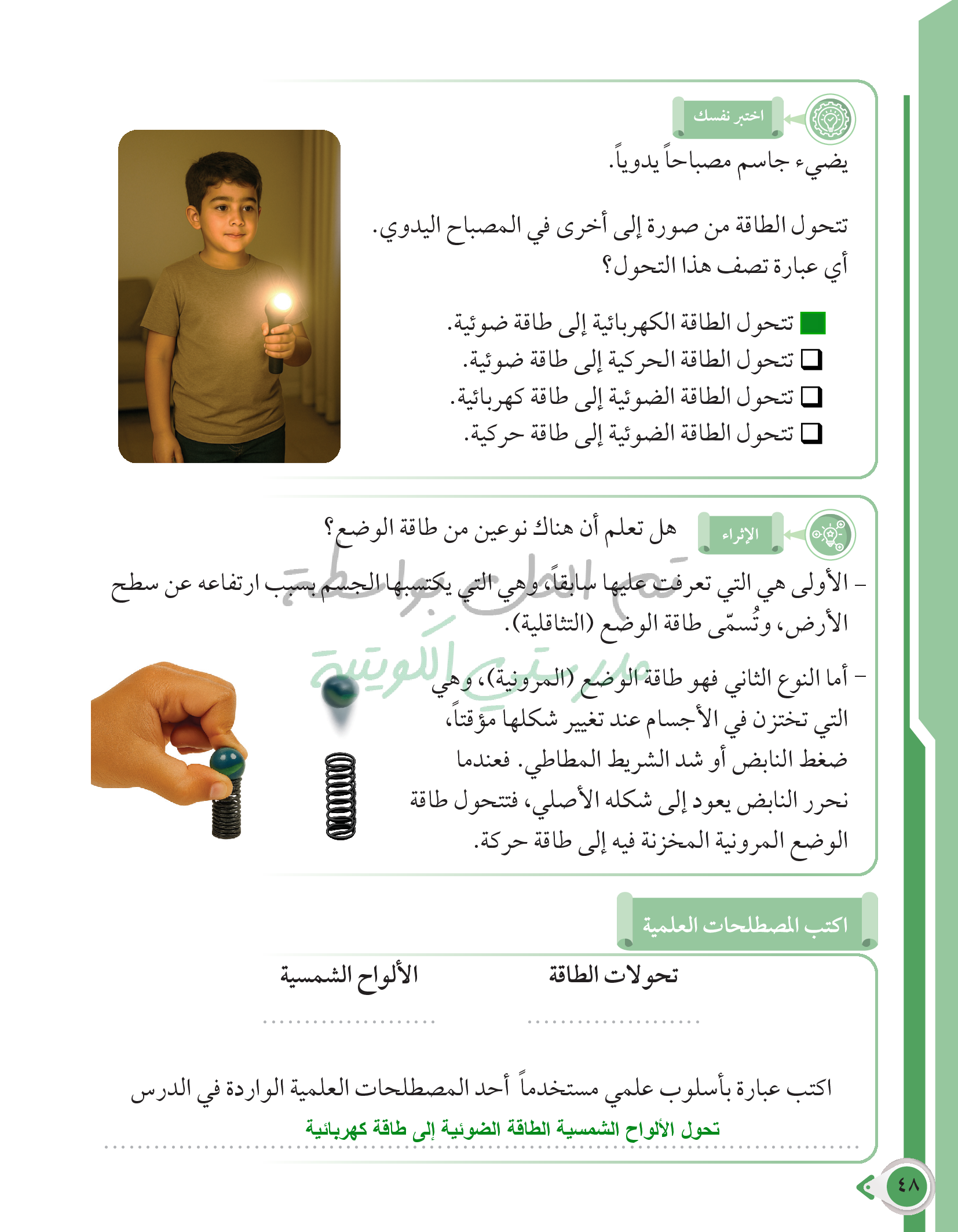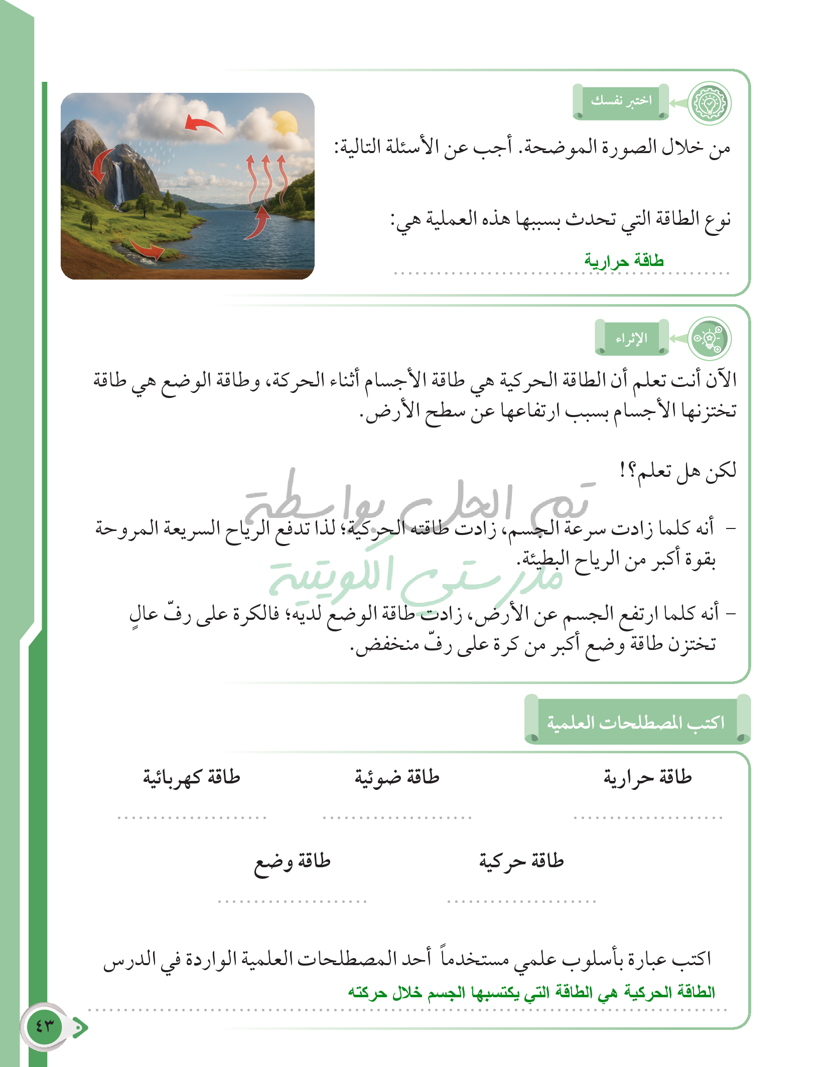 أسئلة نهاية فصل الطاقة وتحولاتها