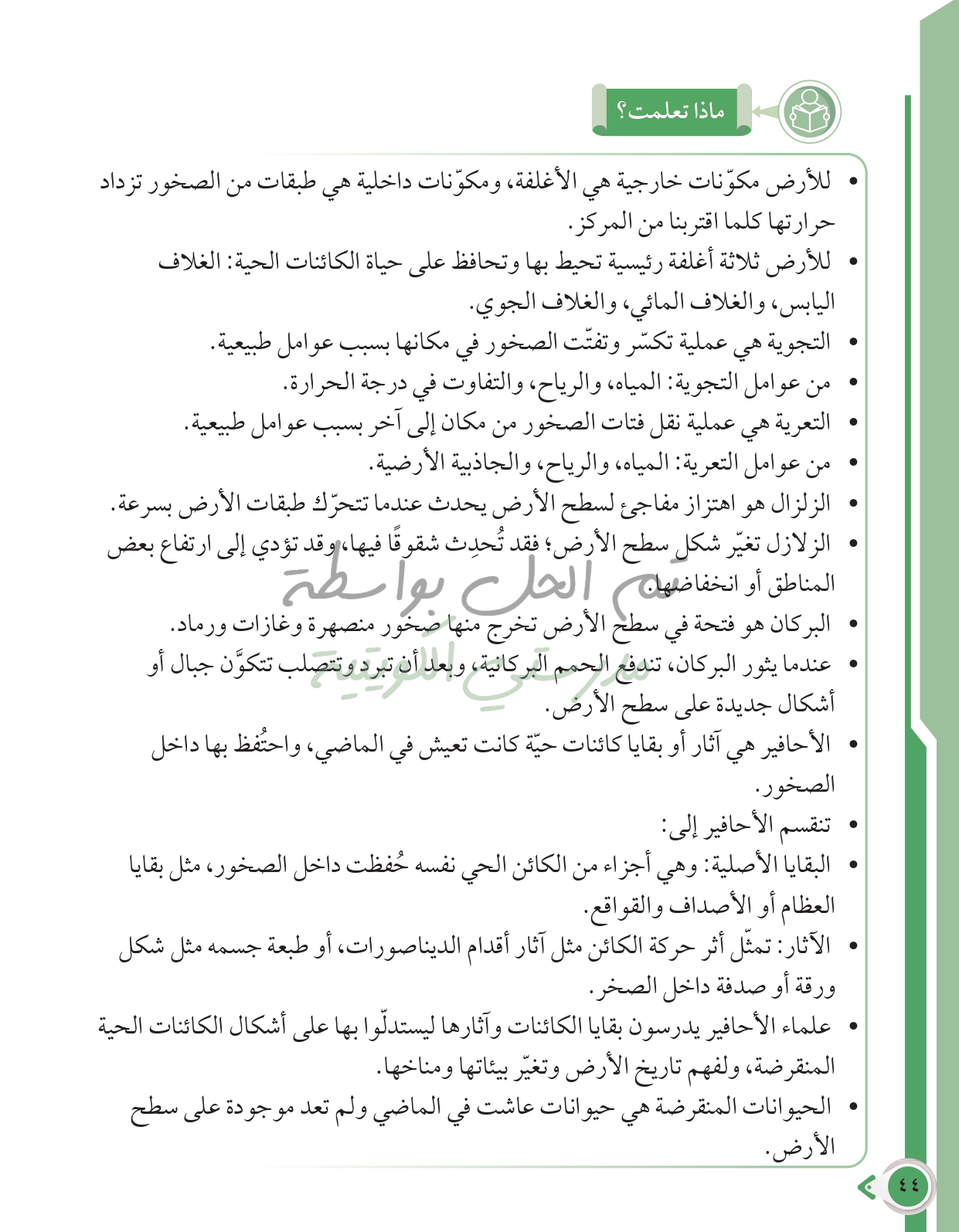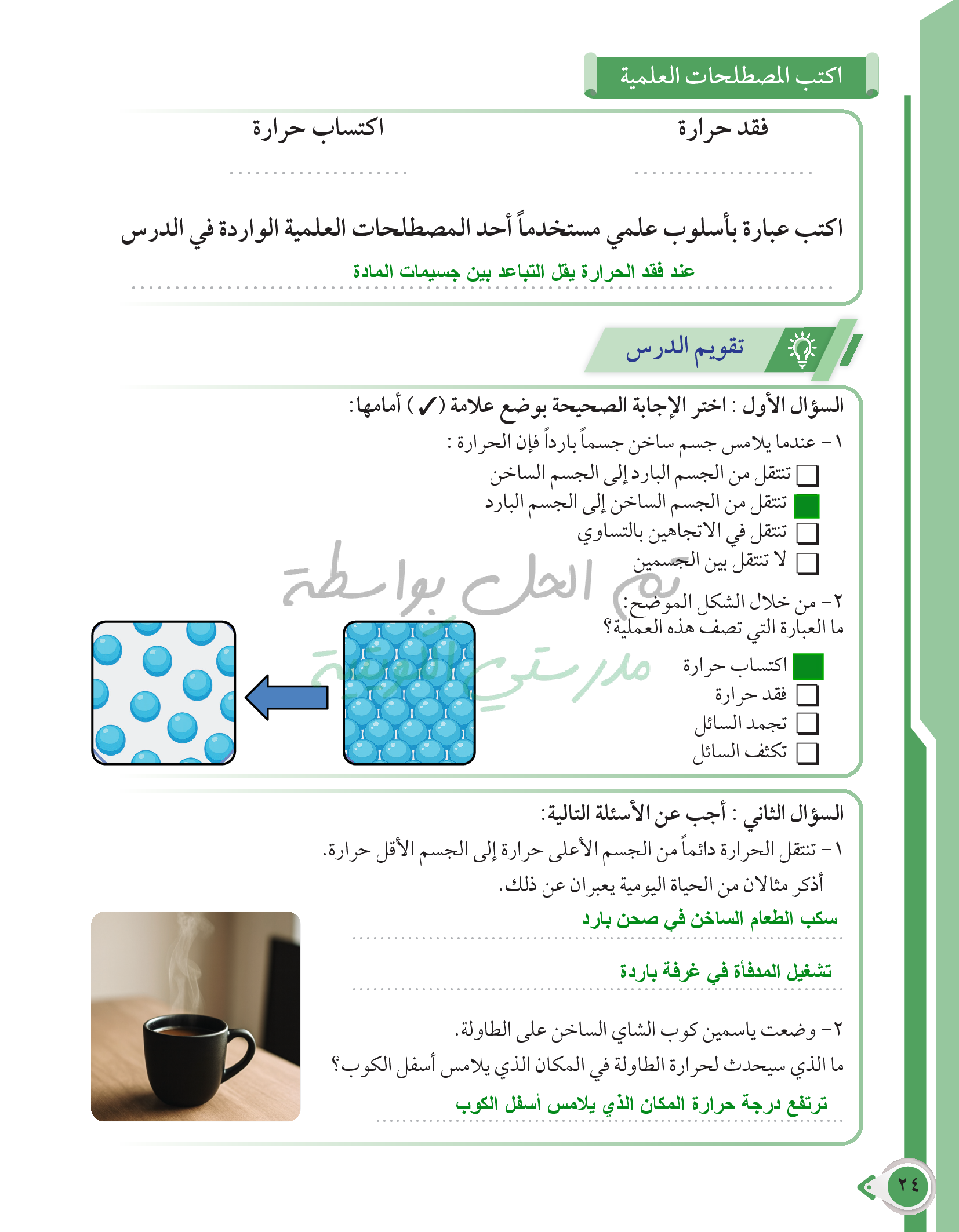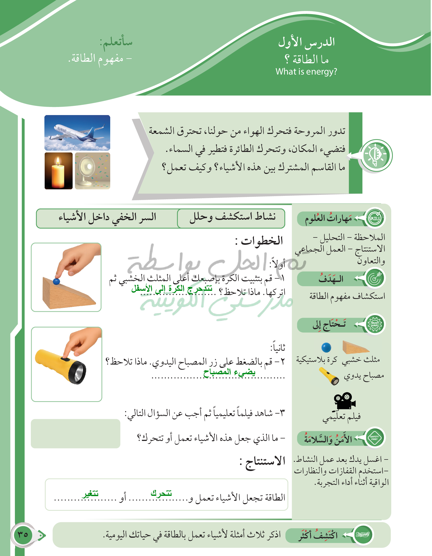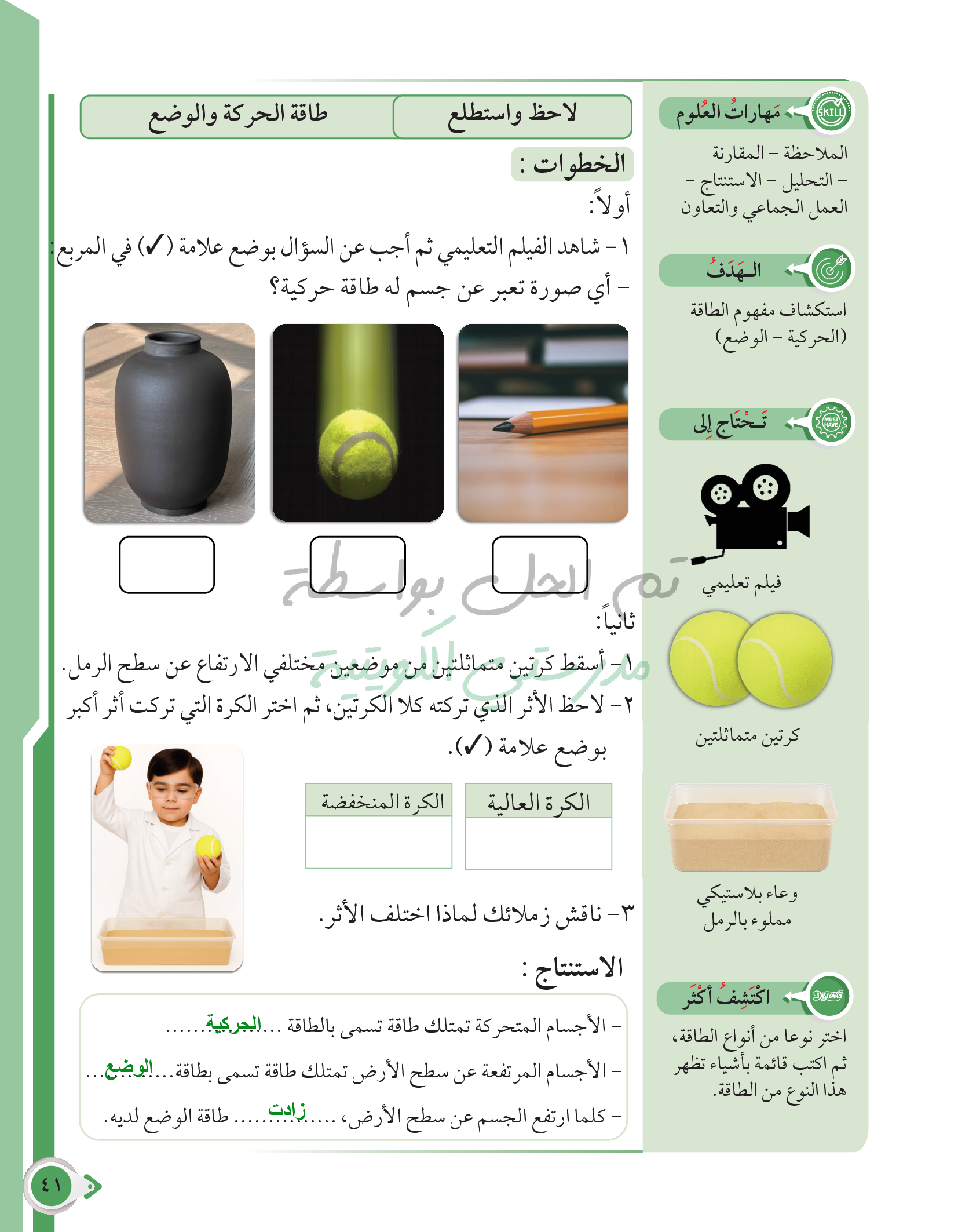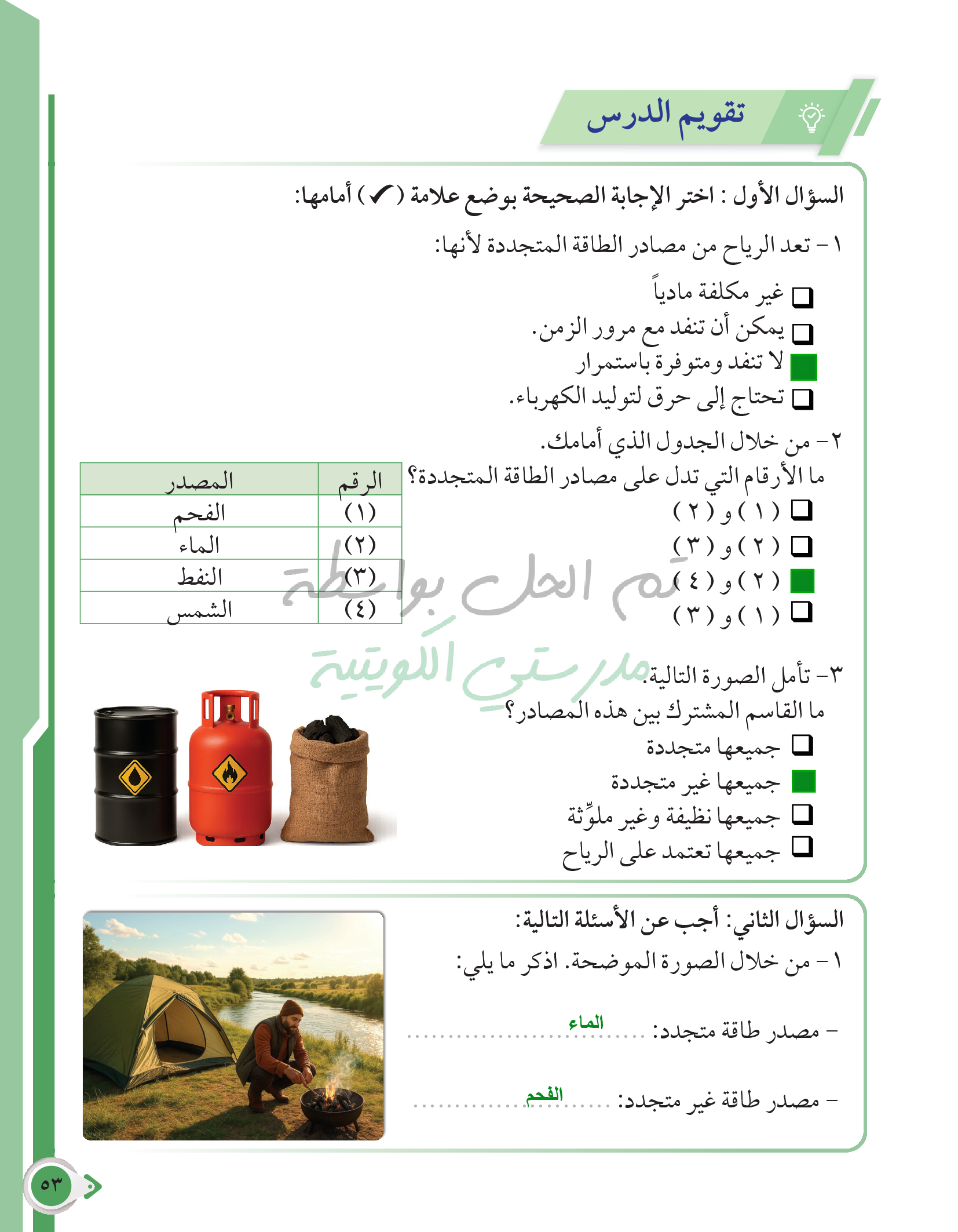 أسئلة نهاية فصل الطاقة وتحولاتها