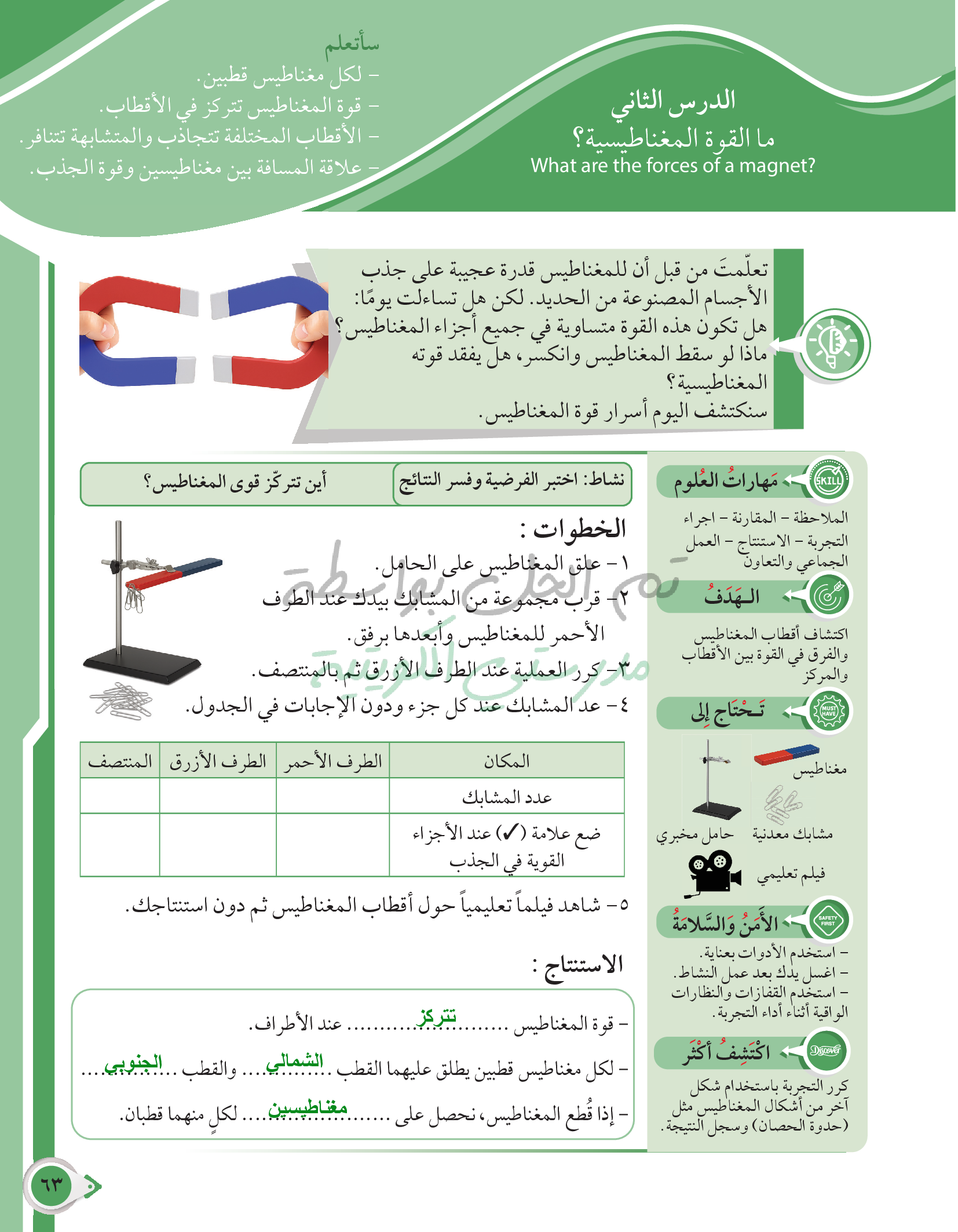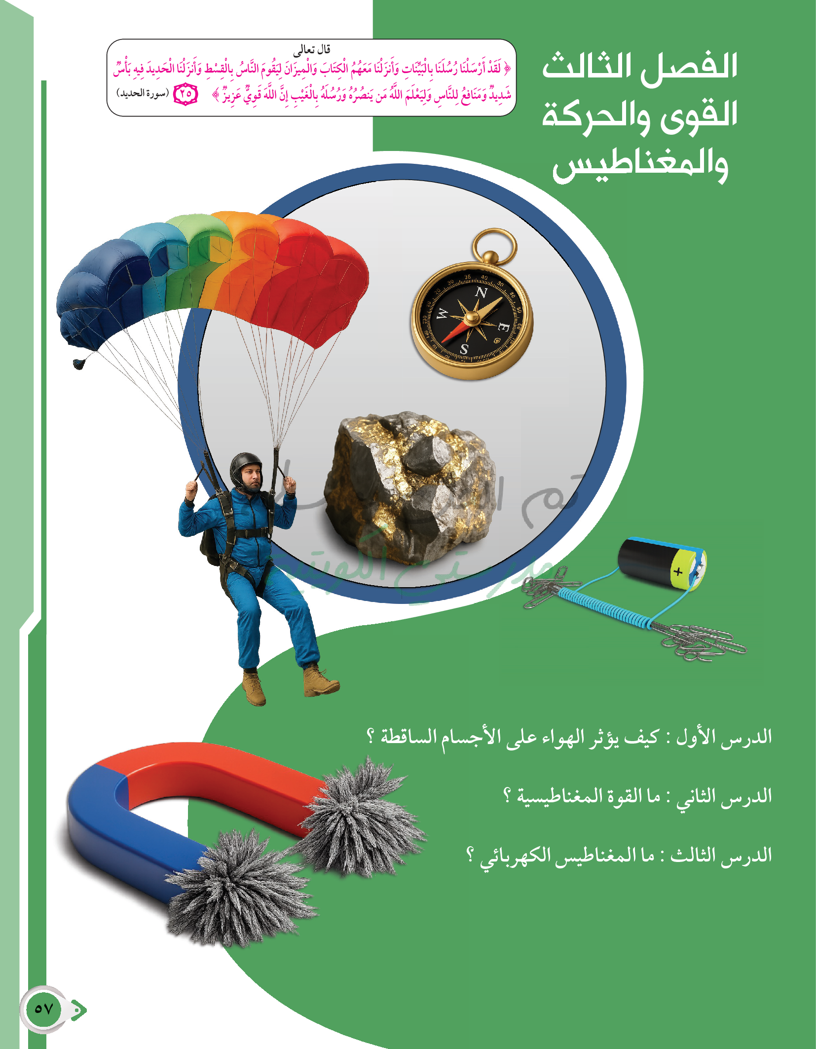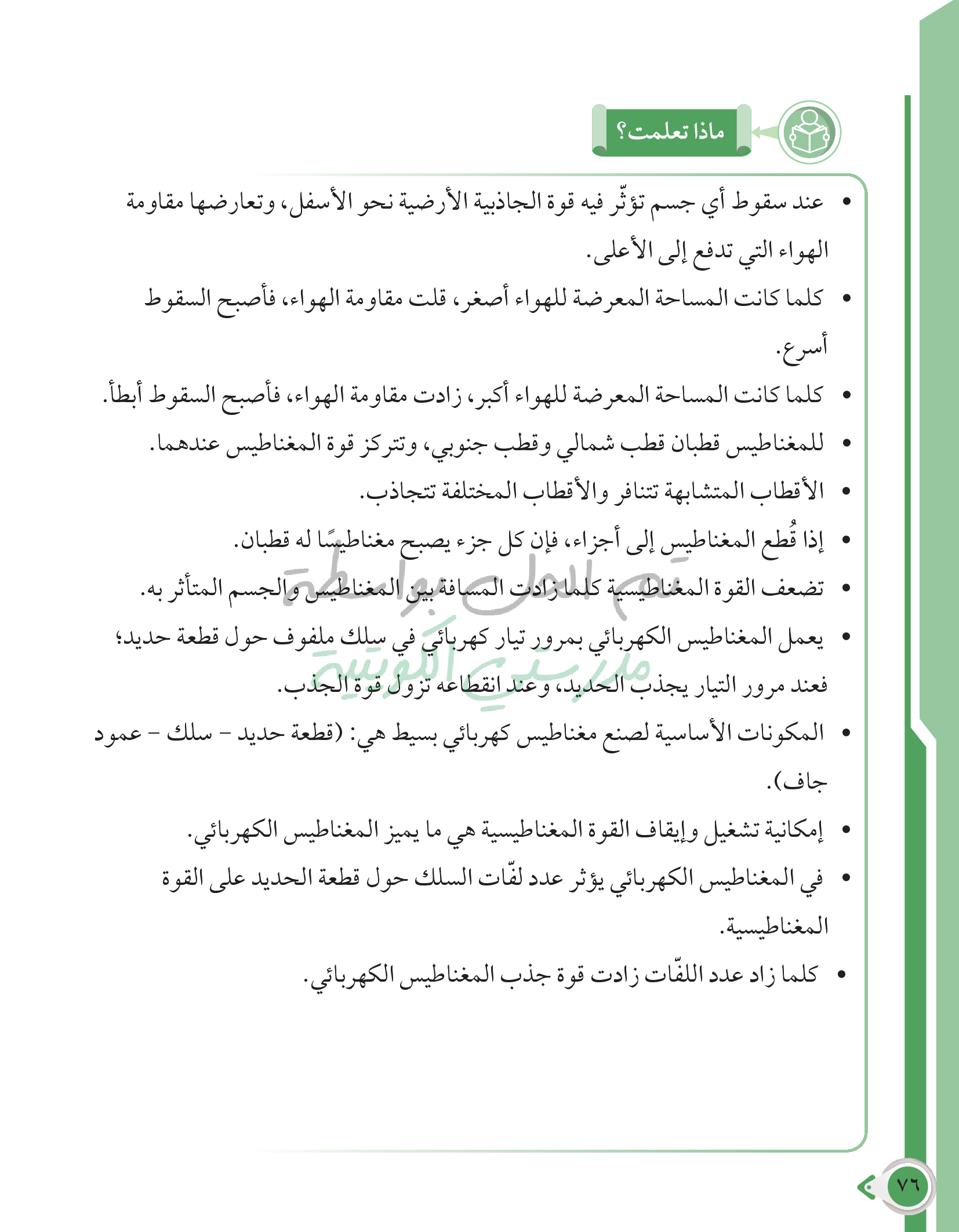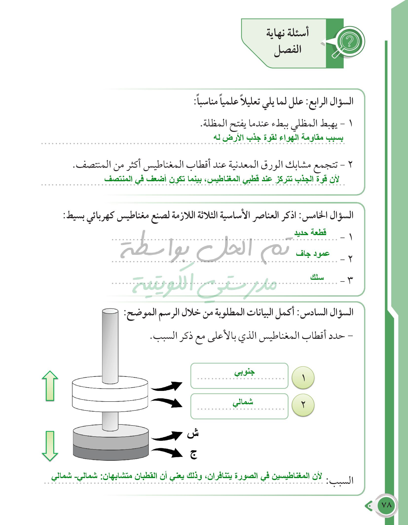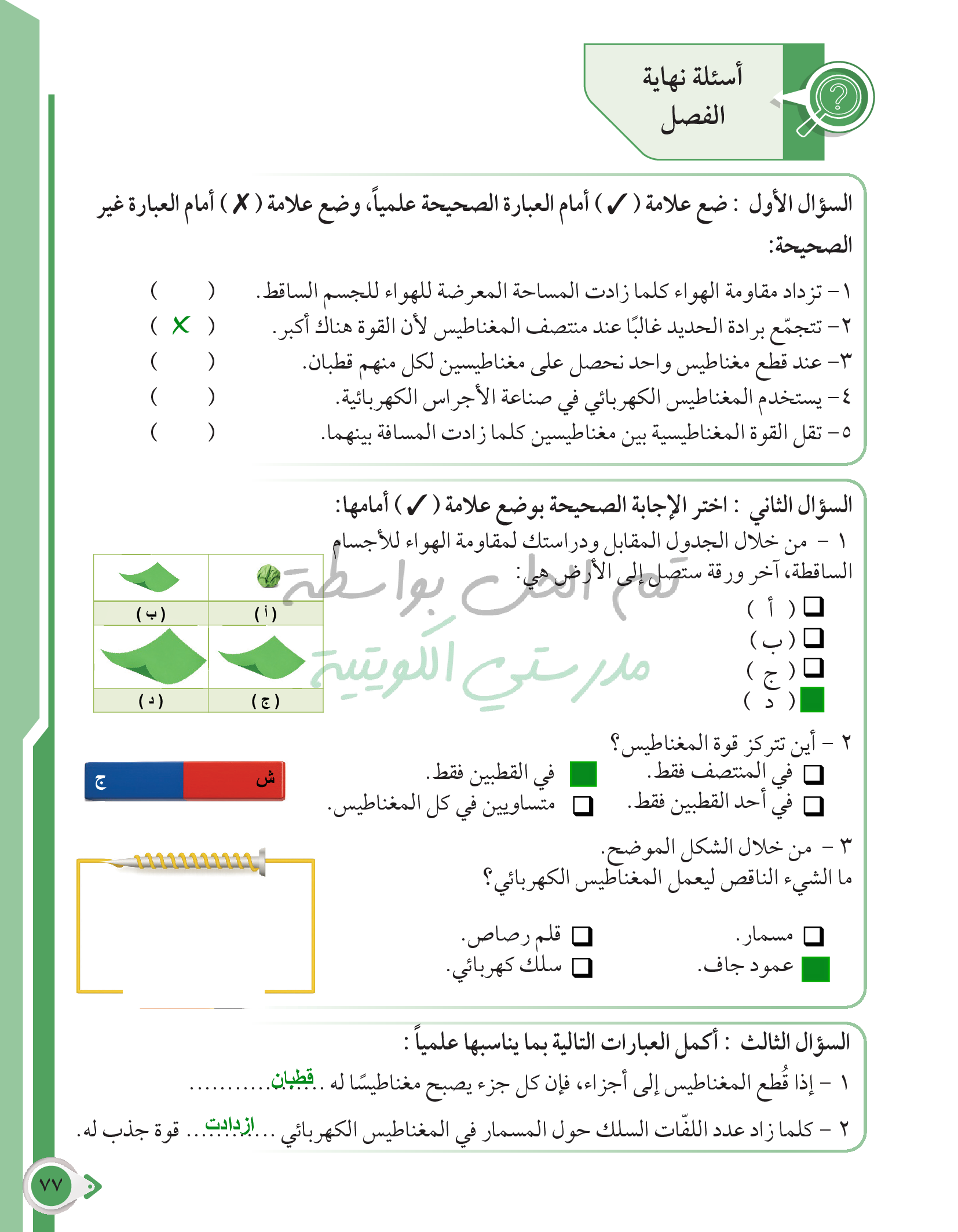 أسئلة نهاية فصل القوى والحركة والمغناطيس