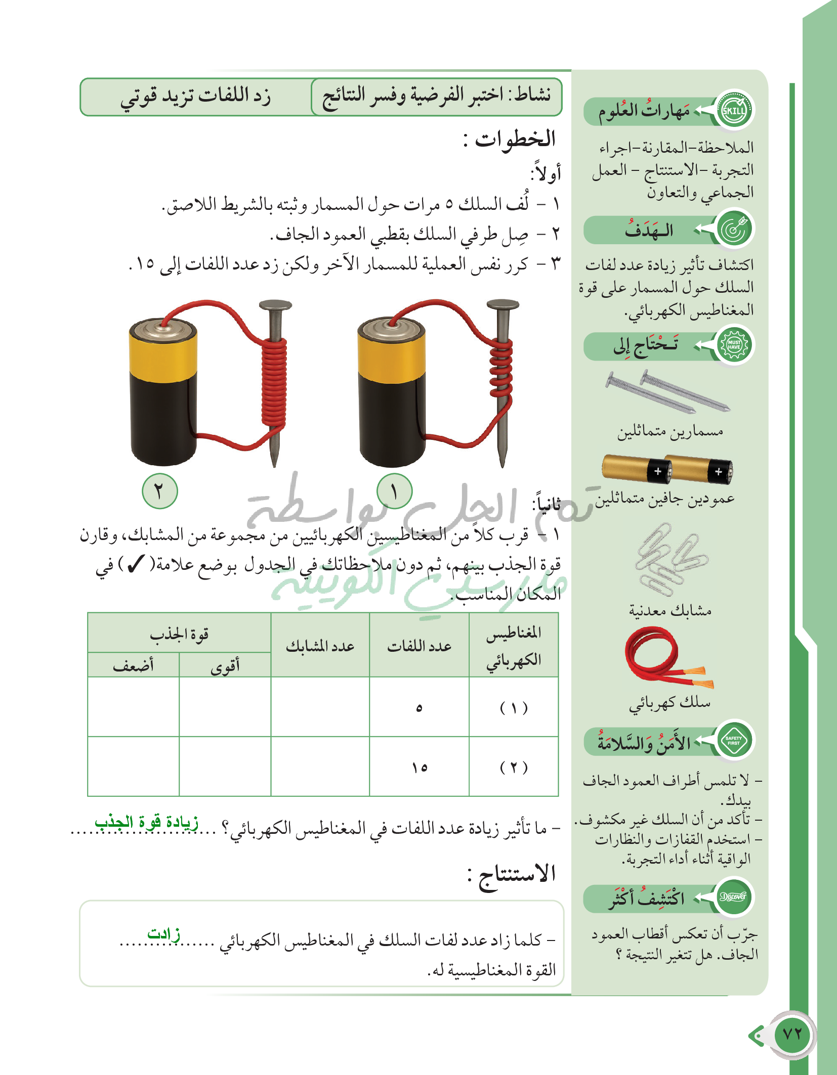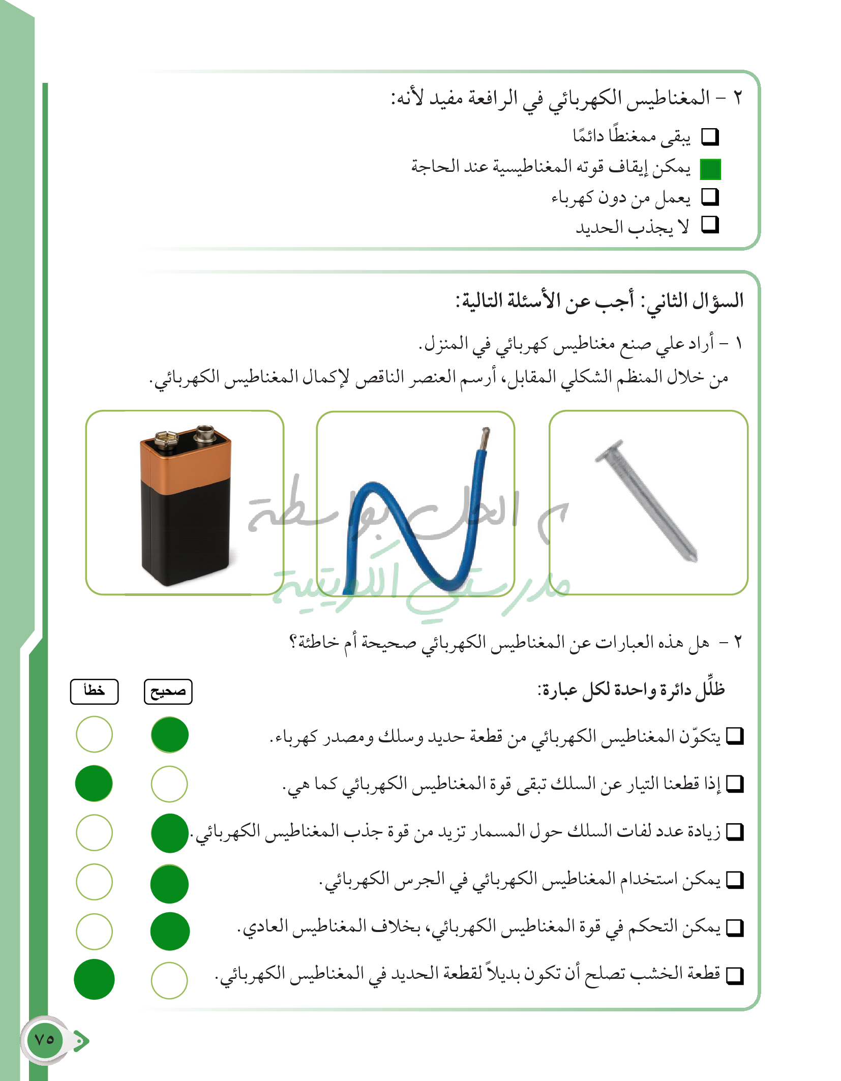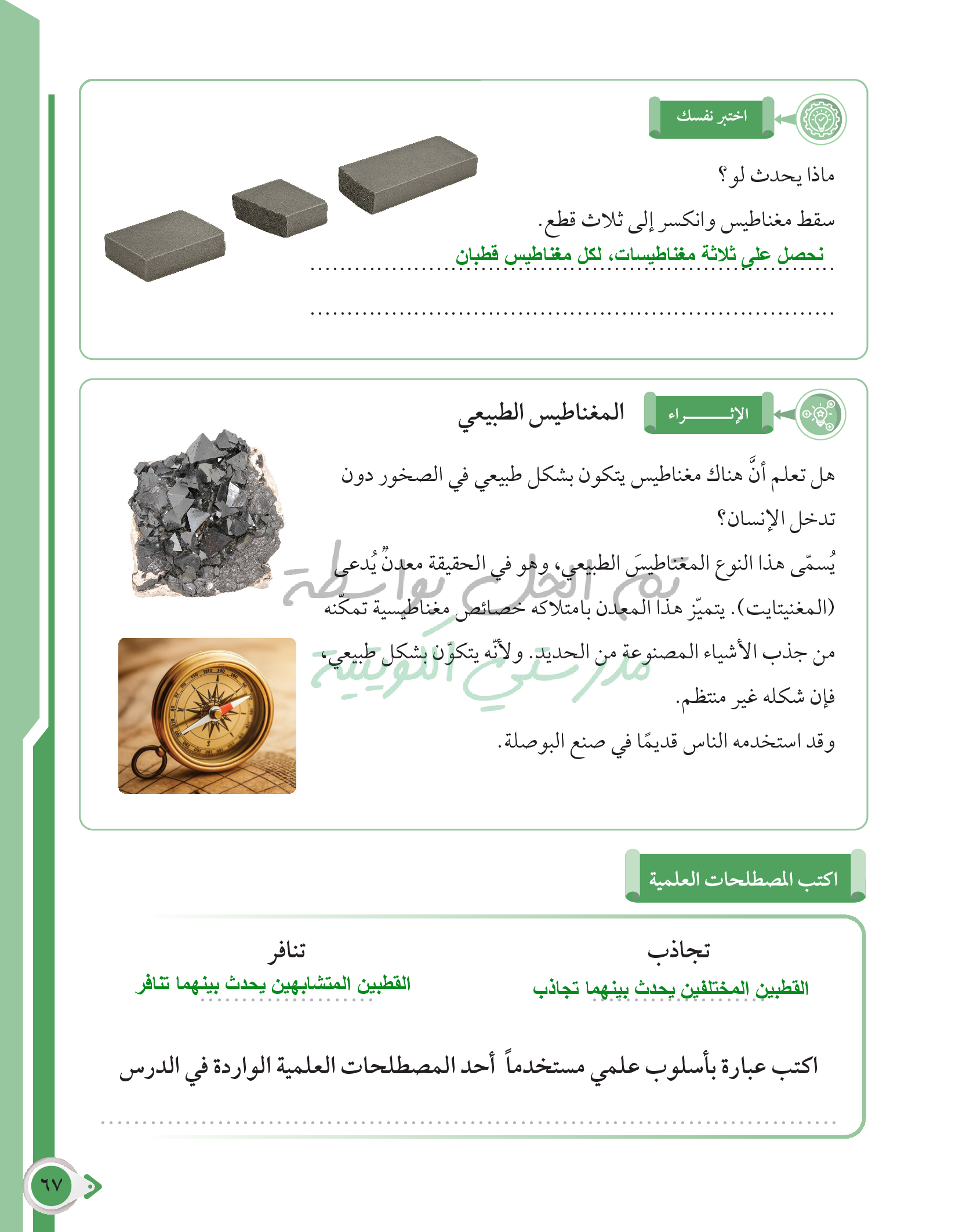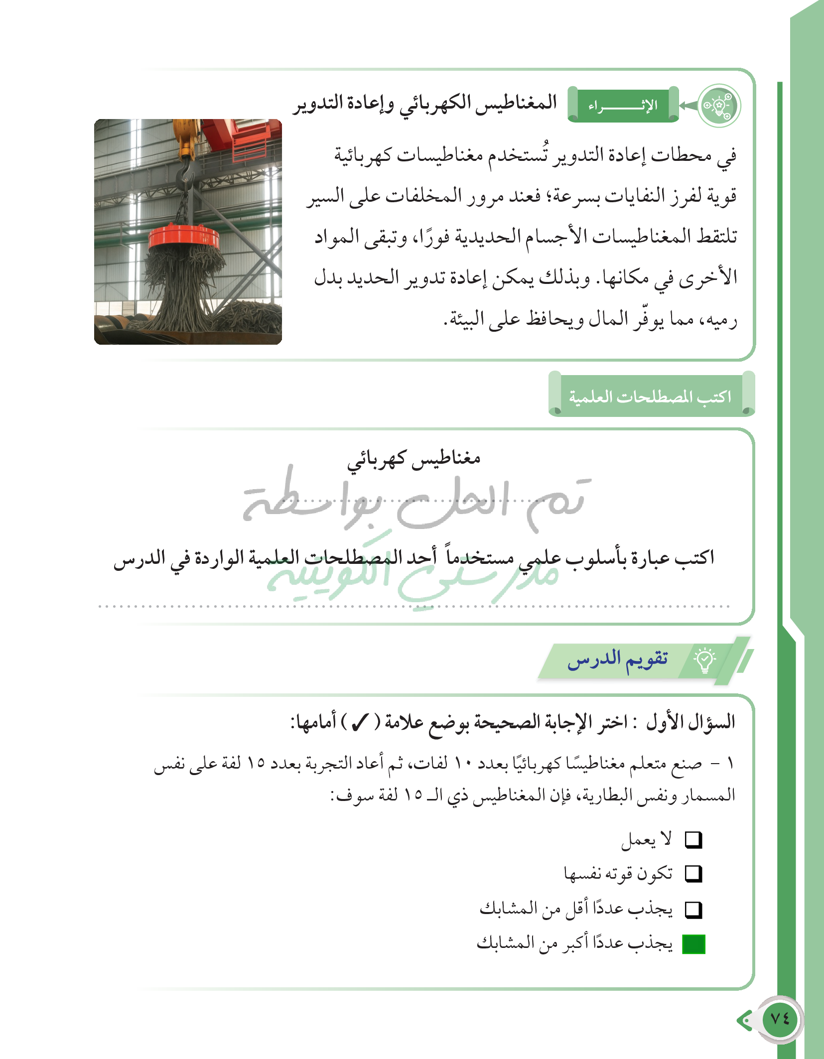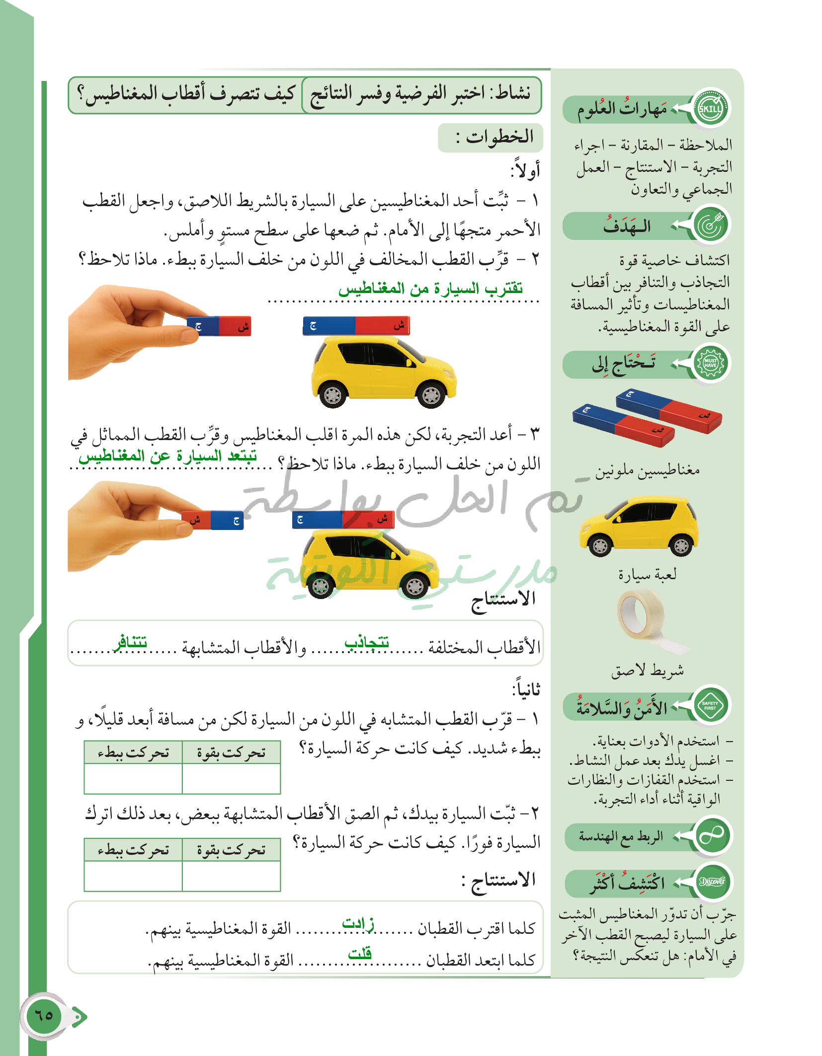 أسئلة نهاية فصل القوى والحركة والمغناطيس
