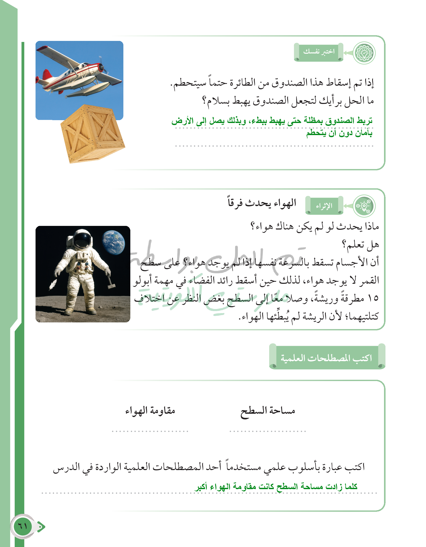 كيف يؤثر الهواء على الأجسام الساقطة؟