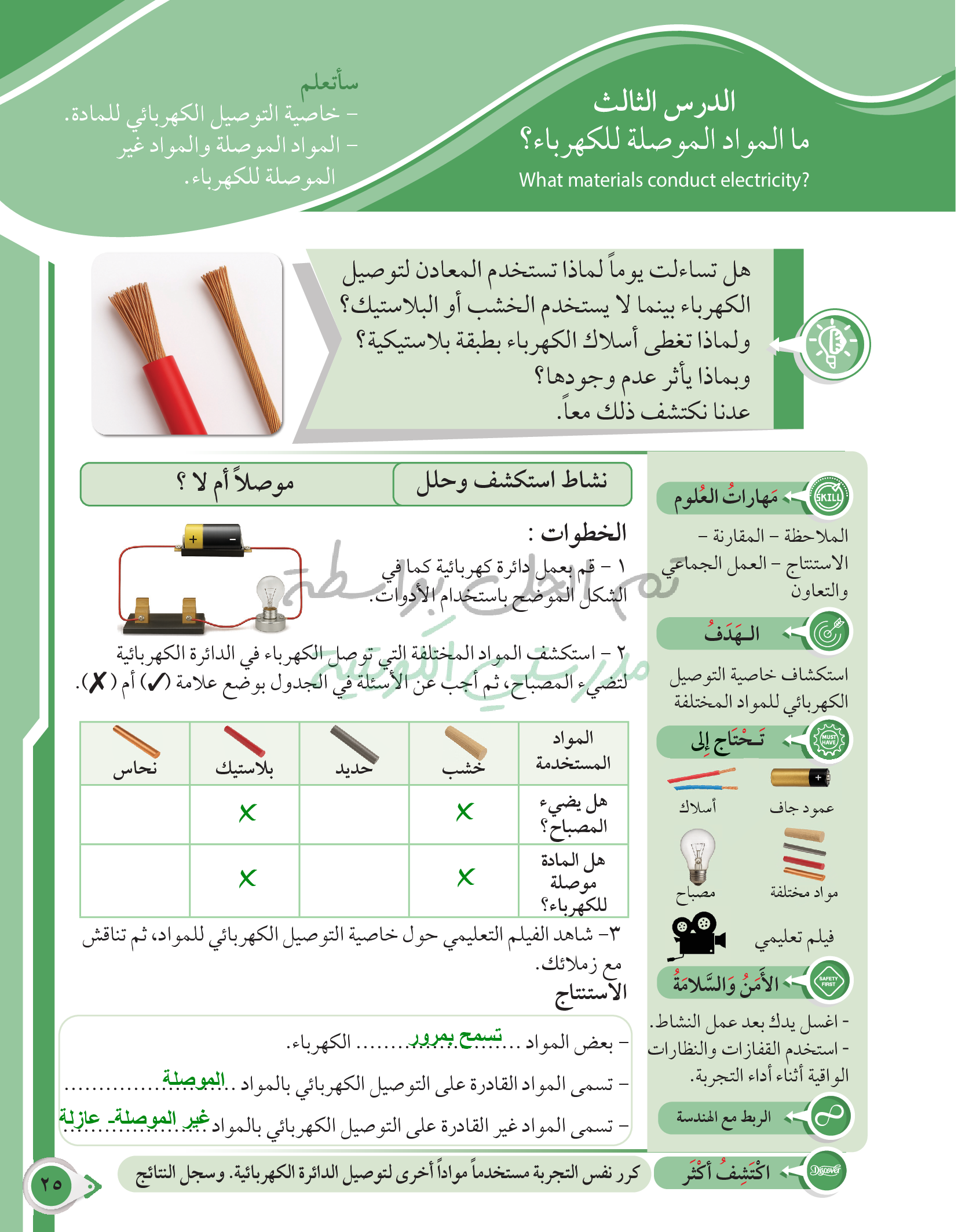 ما المواد الموصلة للكهرباء؟