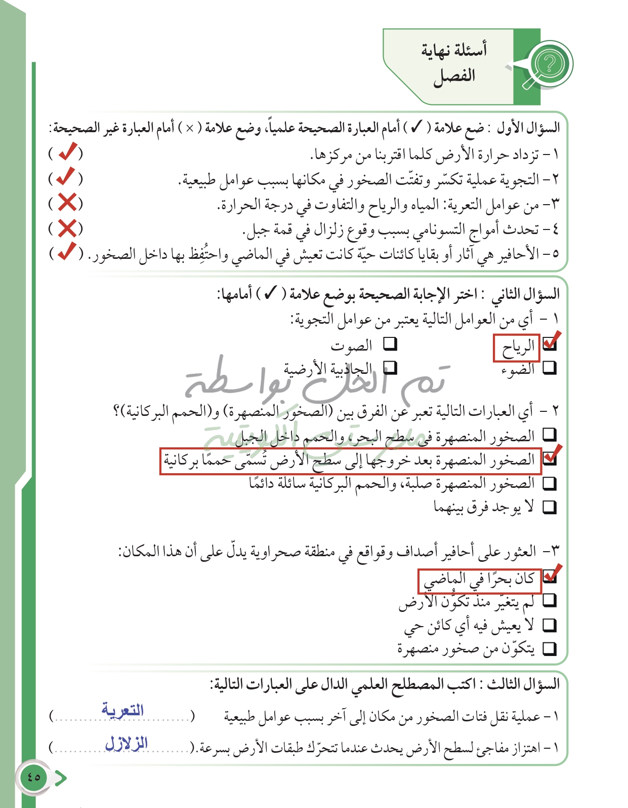 أسئلة نهاية الفصل