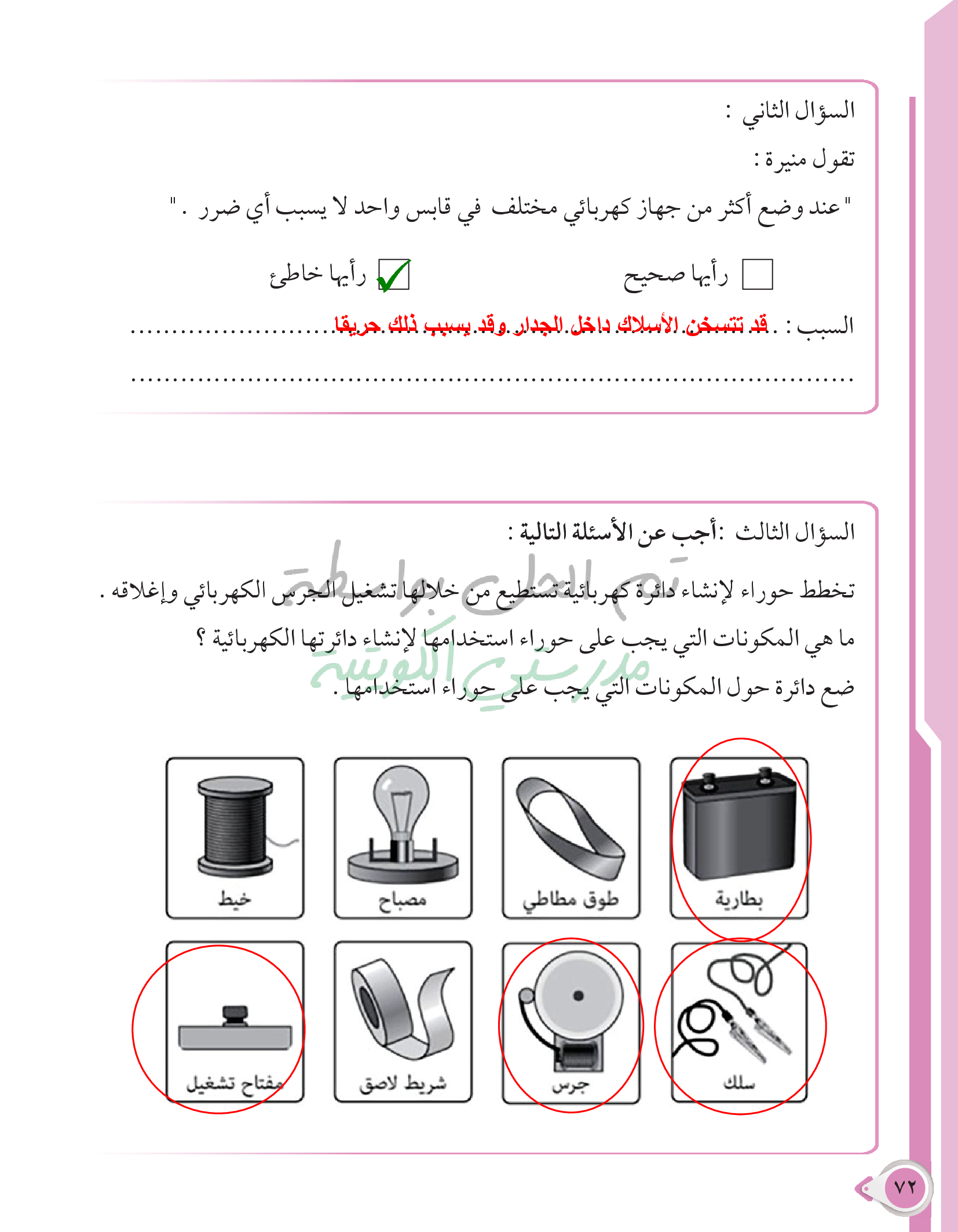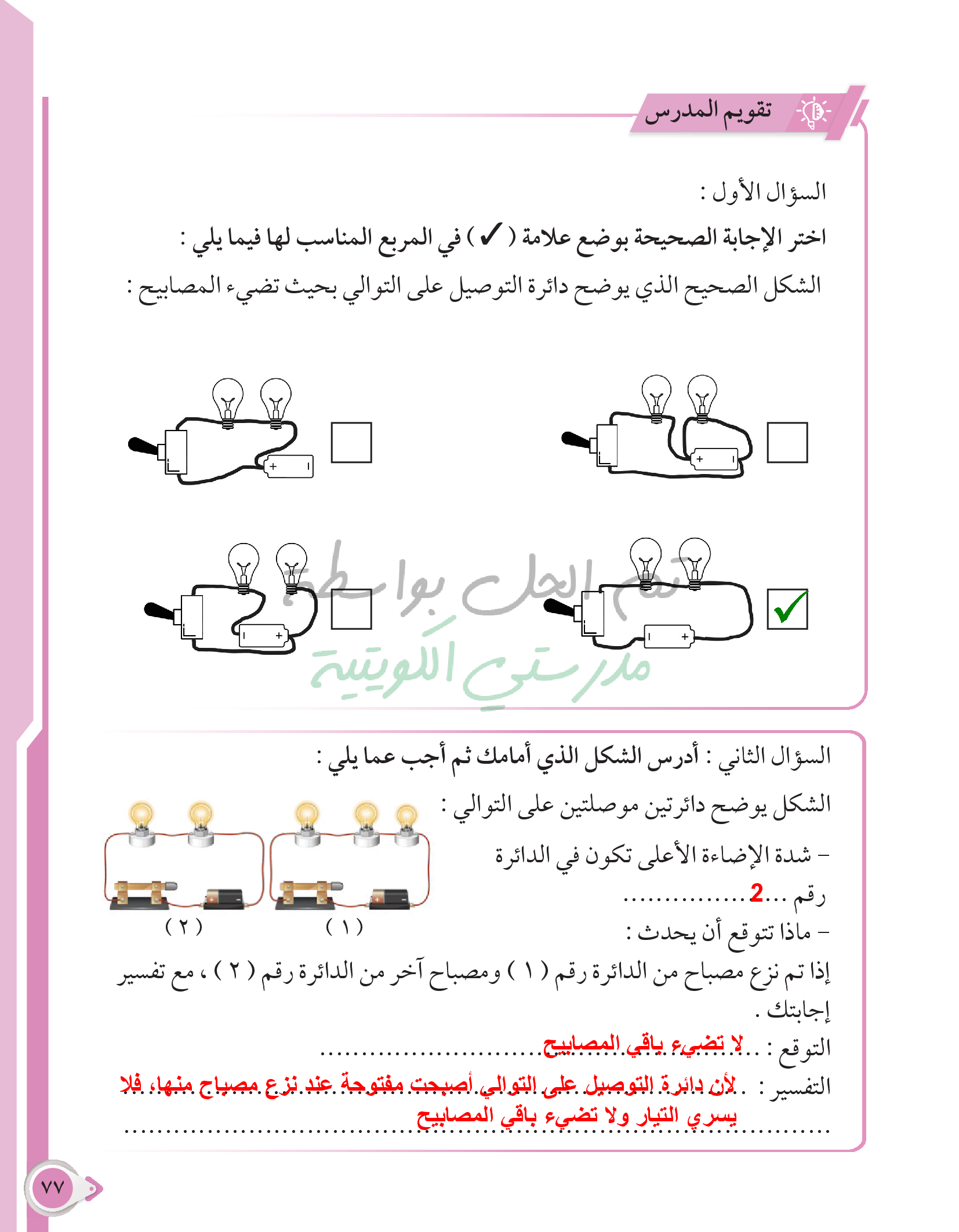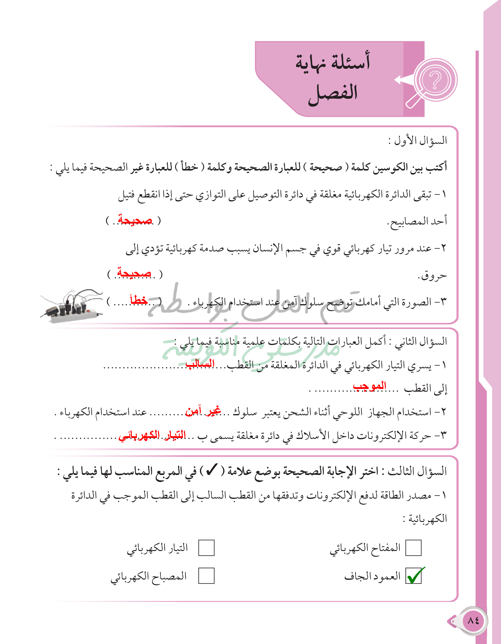 أسئلة نهاية فصل رحلة في عالم الطاقة الكهربائية