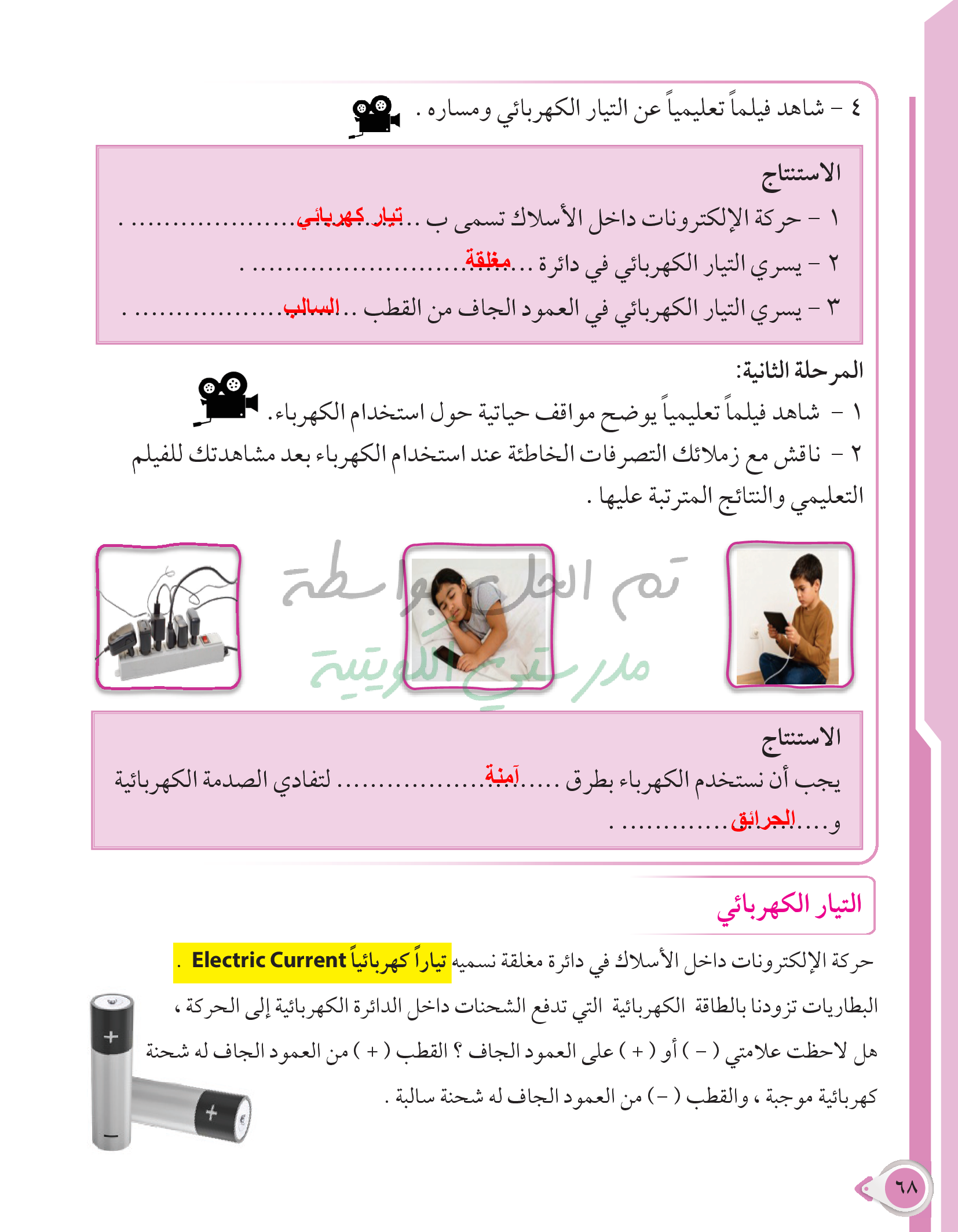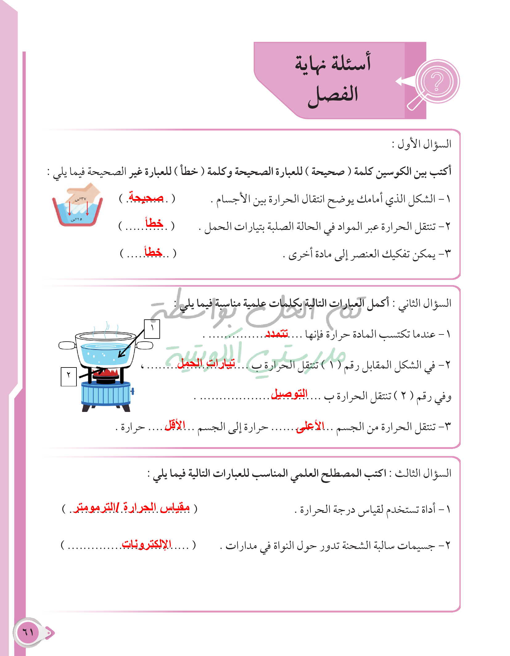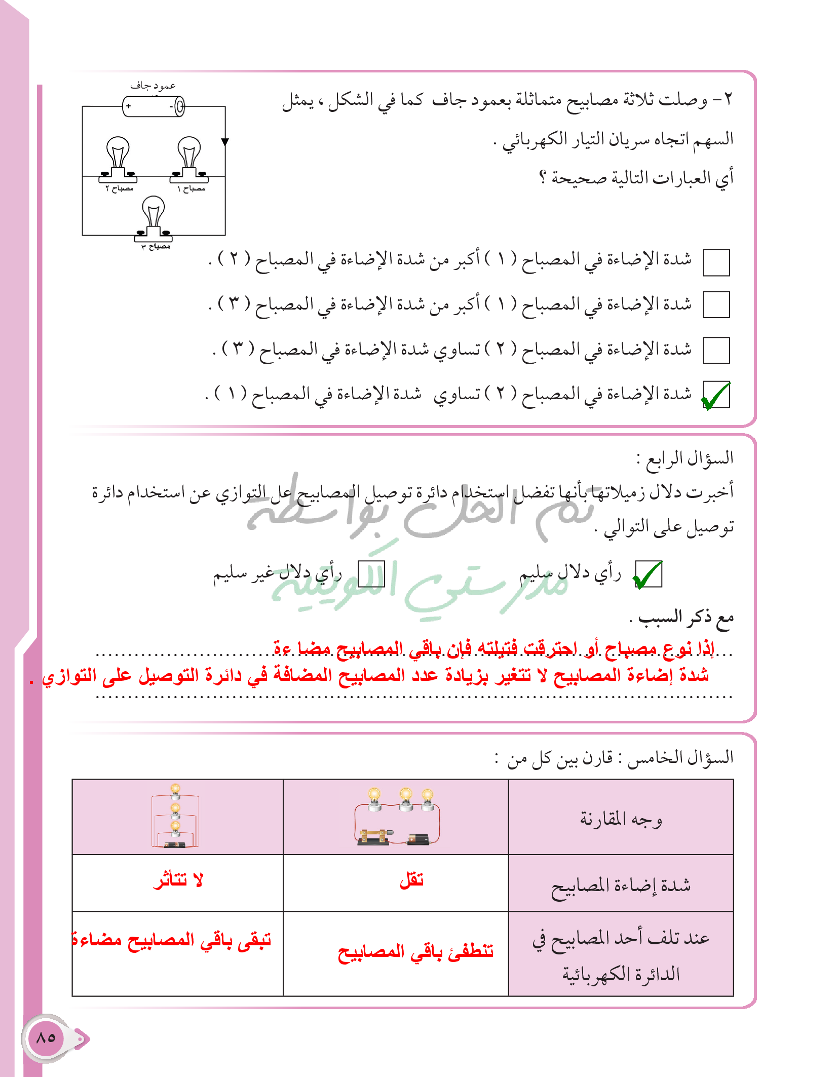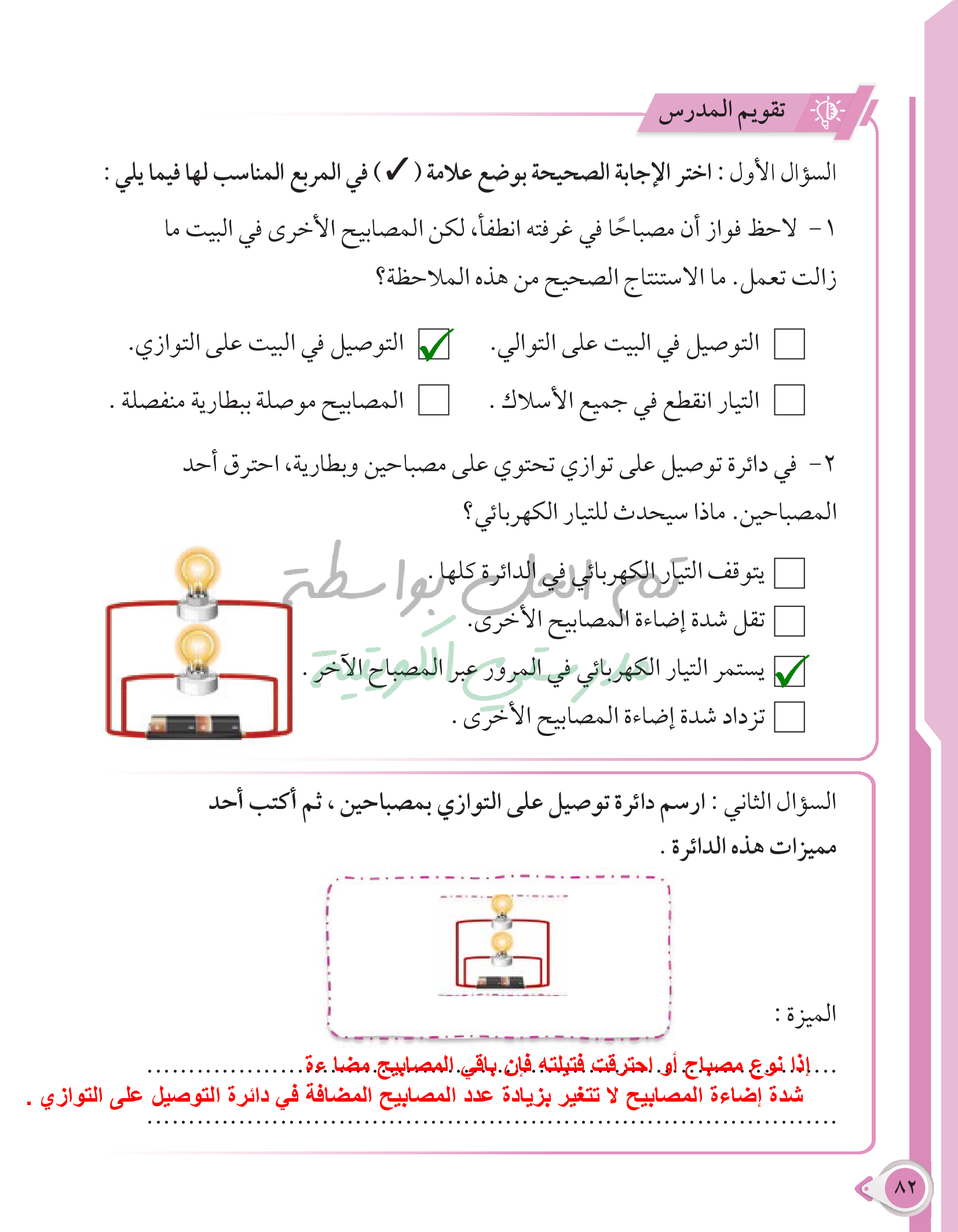 أسئلة نهاية فصل رحلة في عالم الطاقة الكهربائية