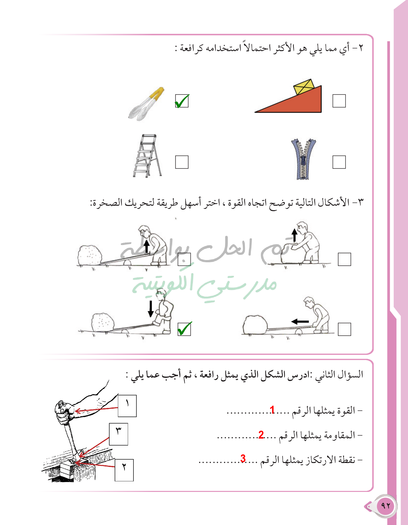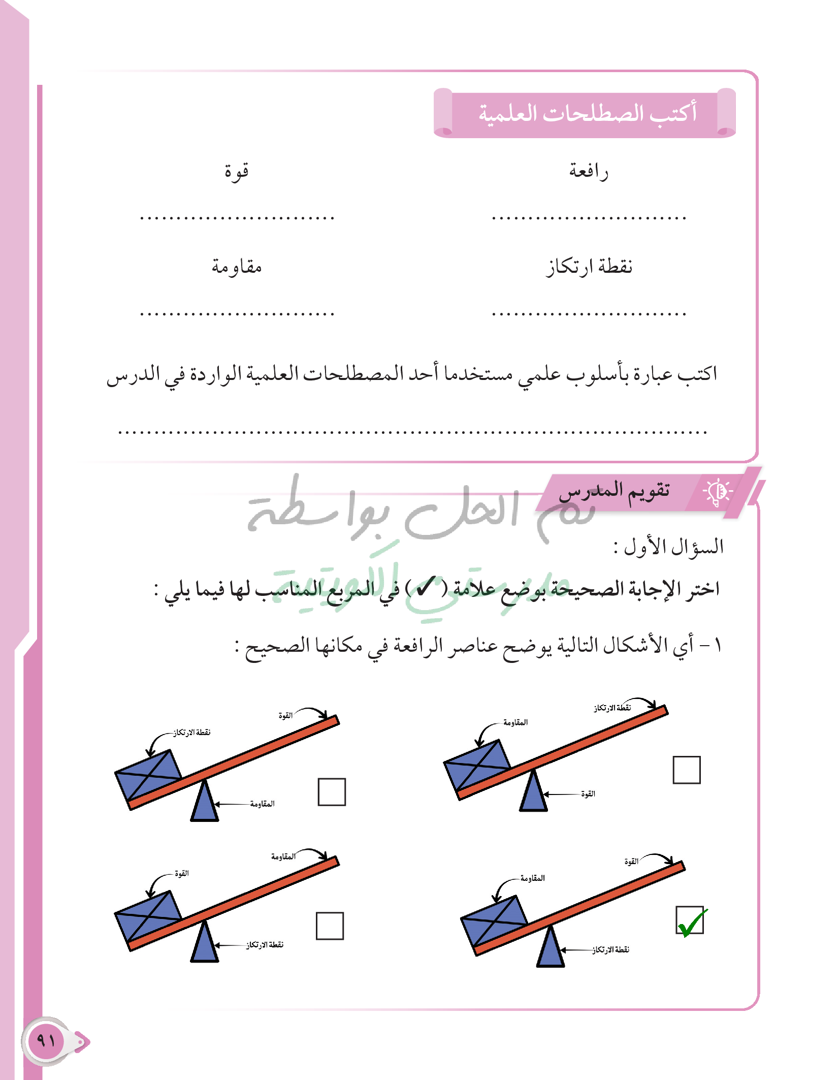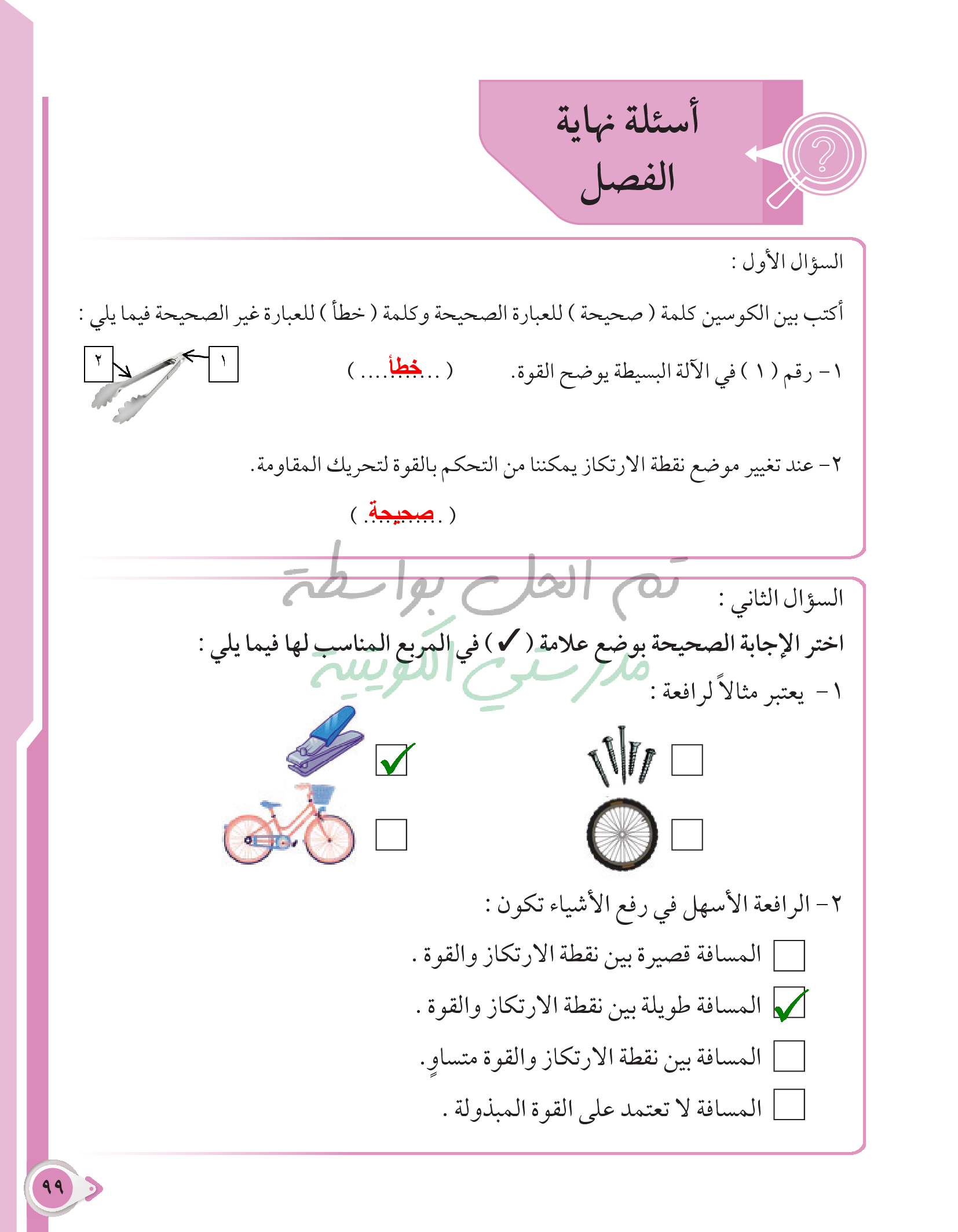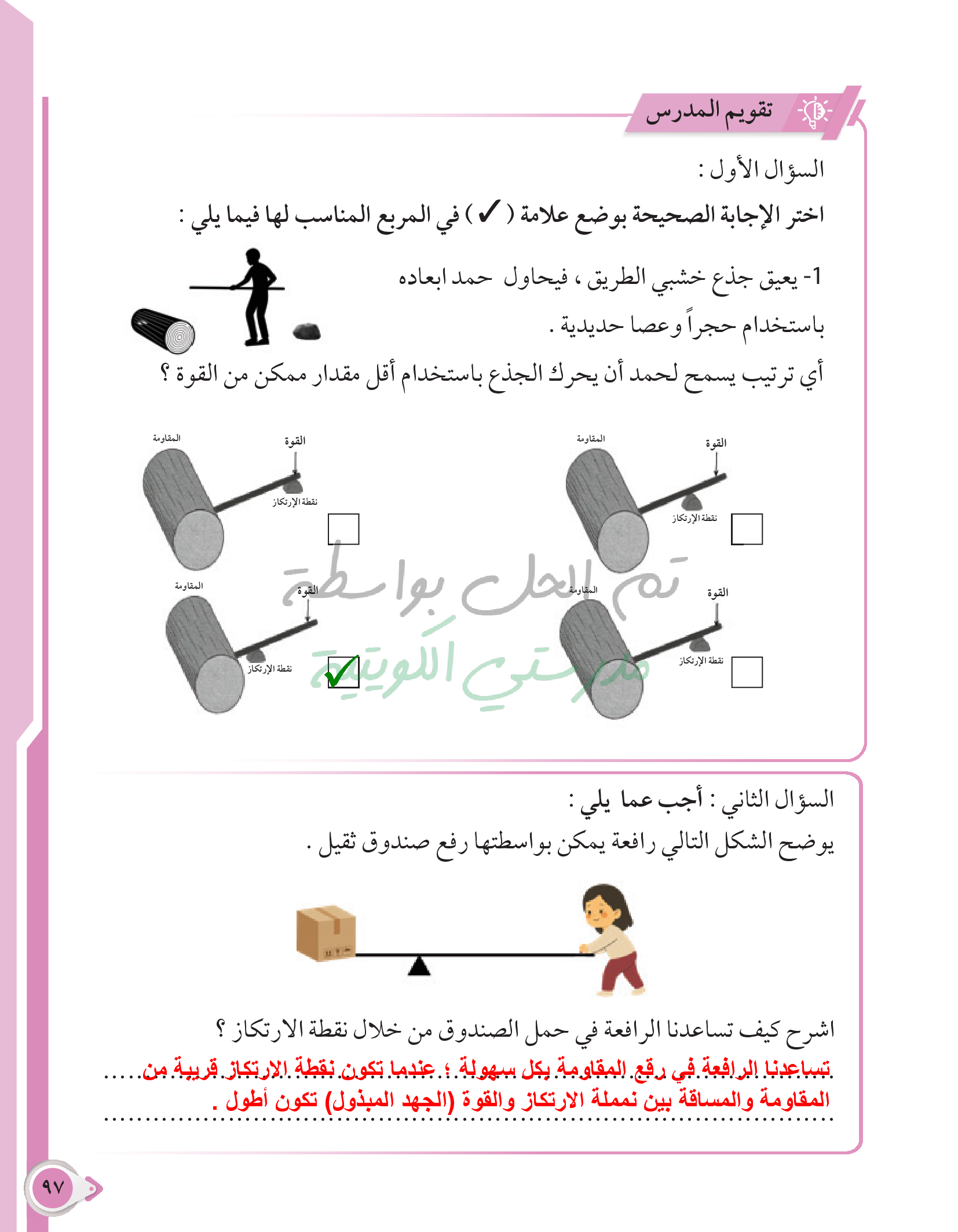 أسئلة نهاية فصل رحلة مع الرافعة في عالم القوى والحركة