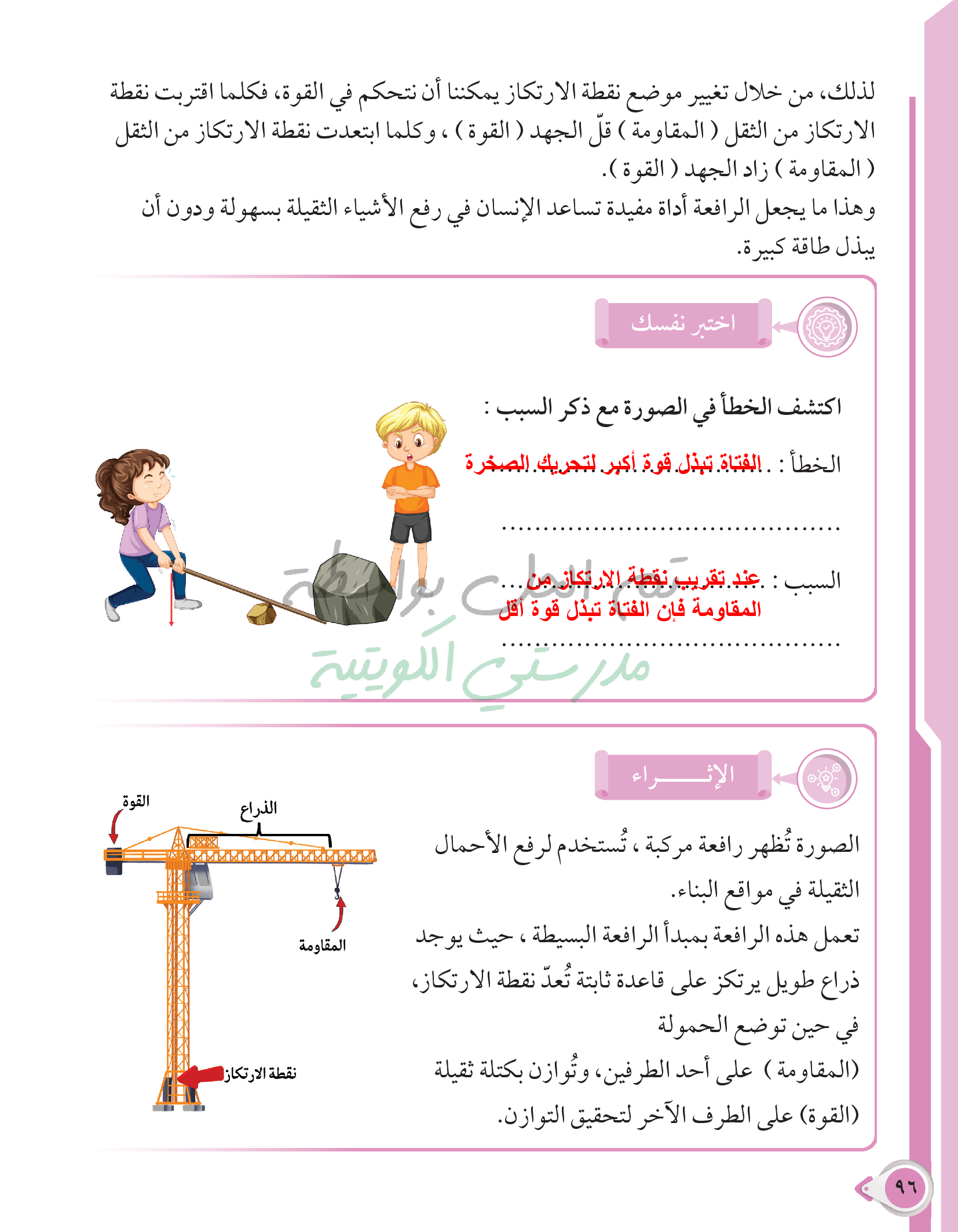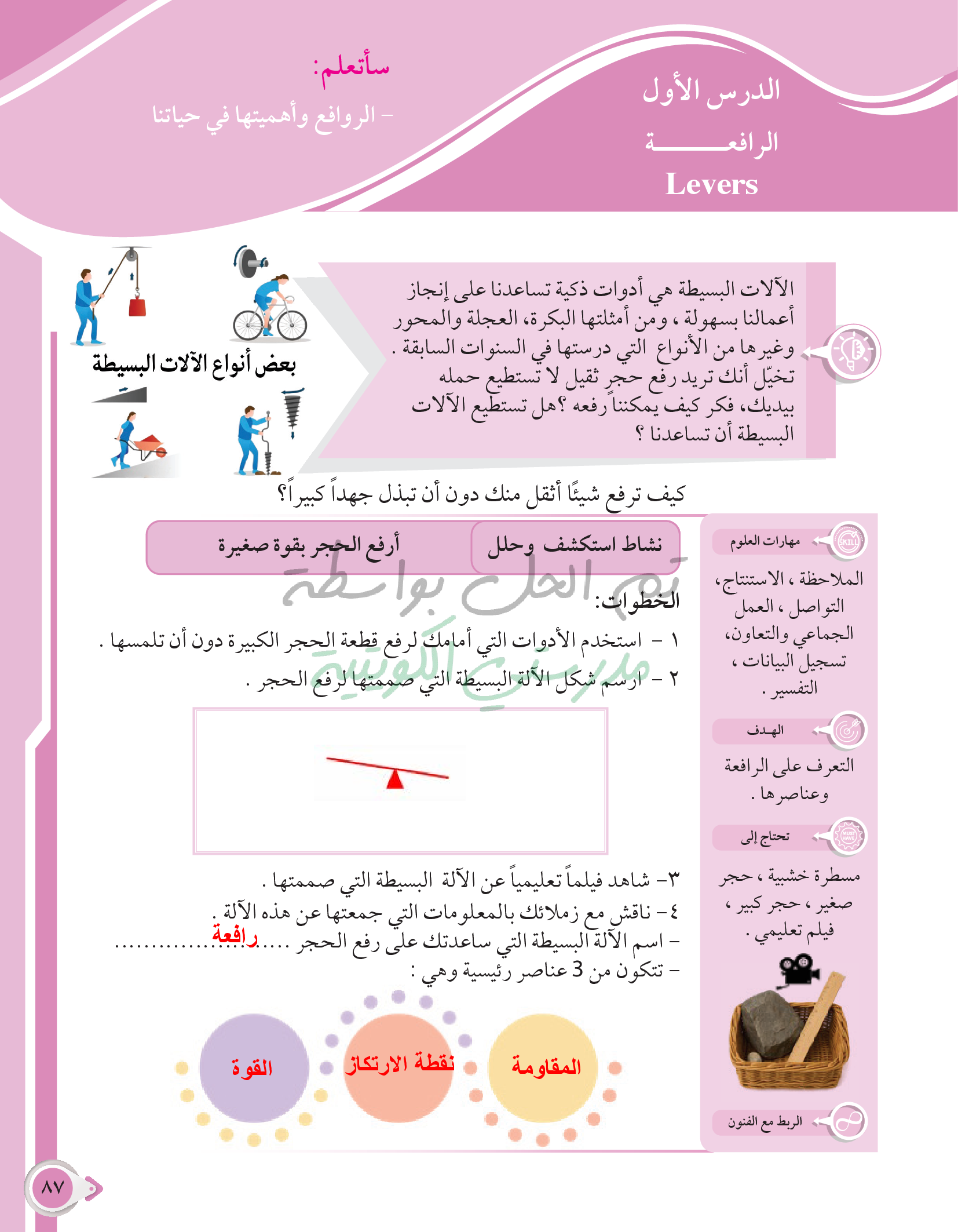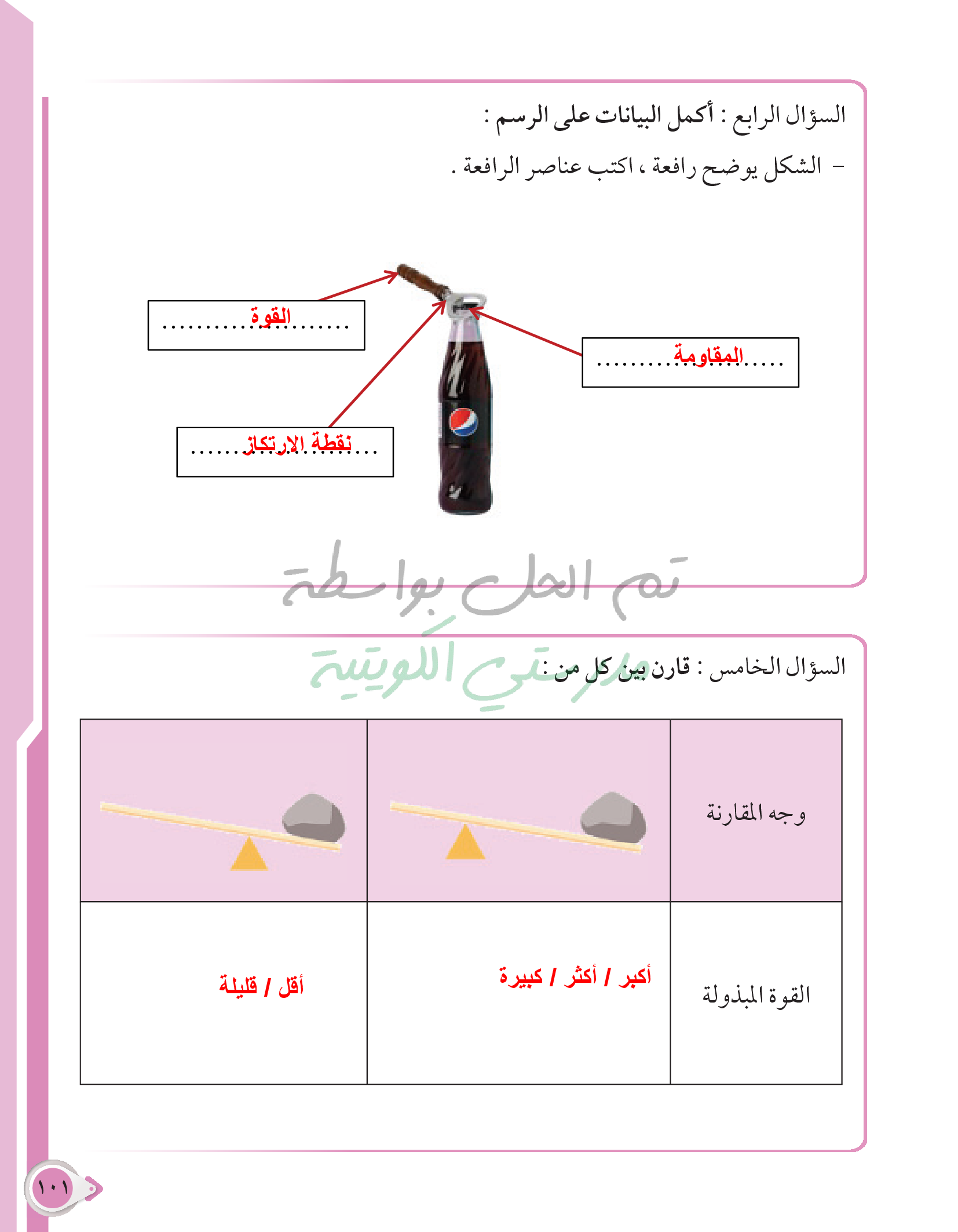 أسئلة نهاية فصل رحلة مع الرافعة في عالم القوى والحركة