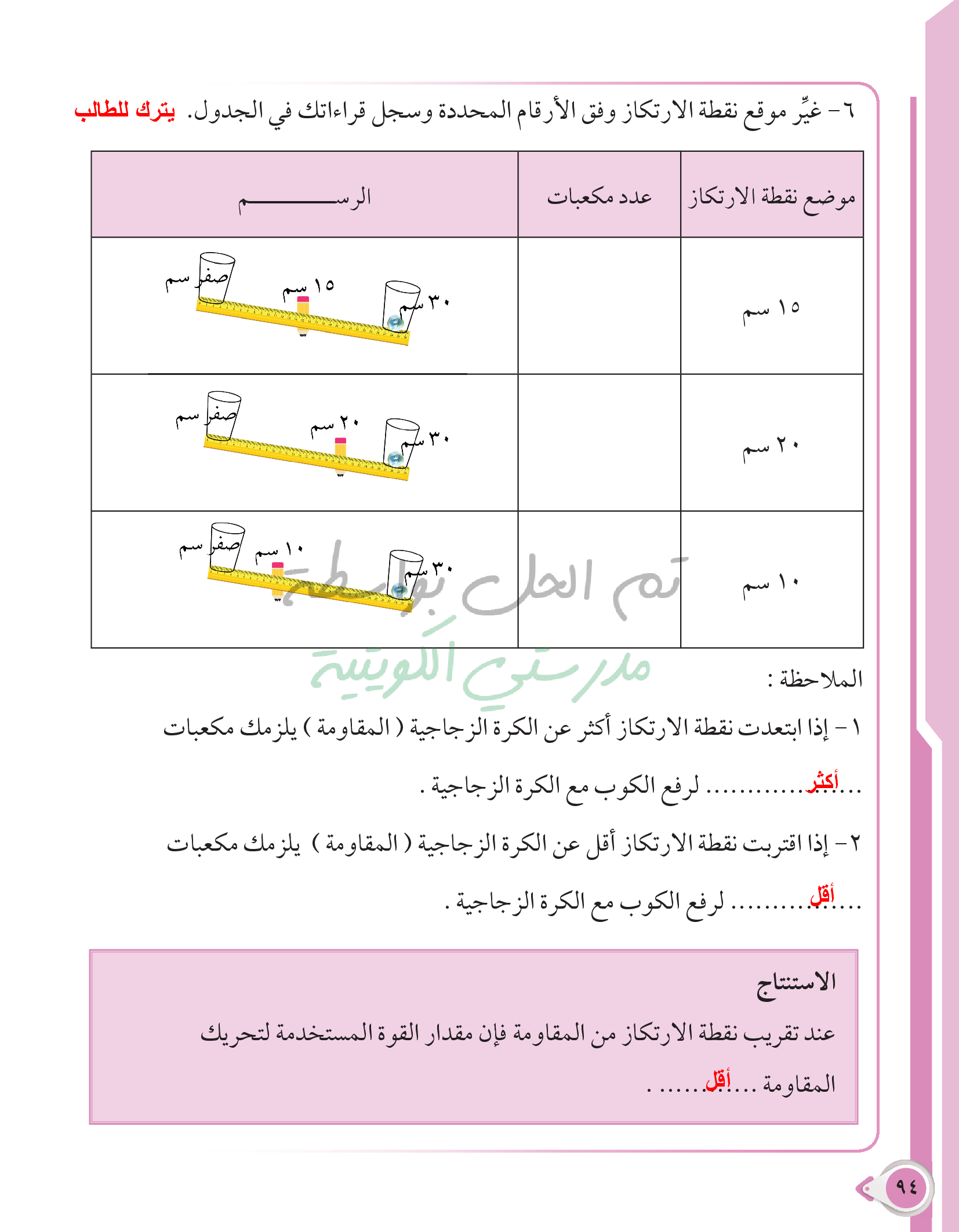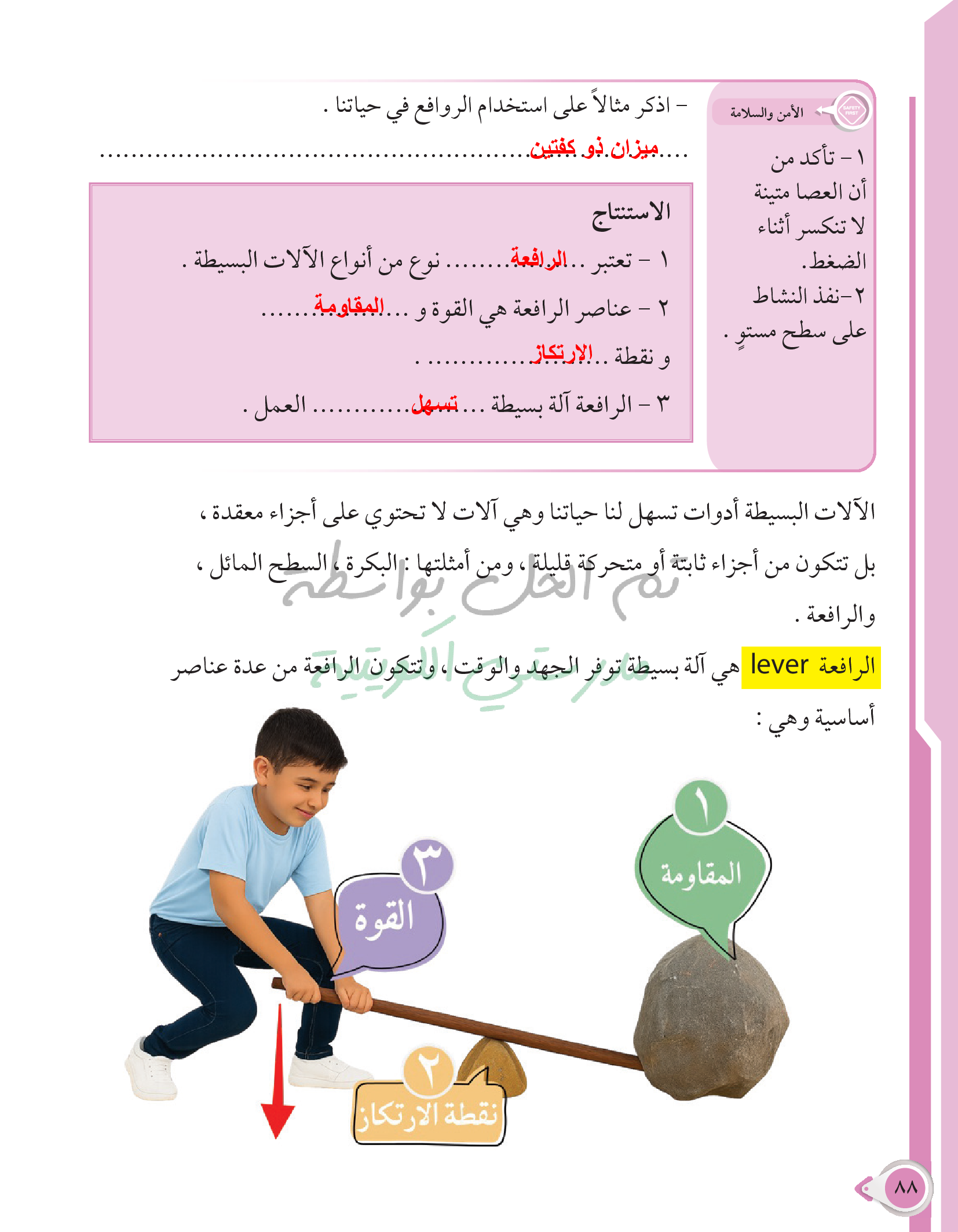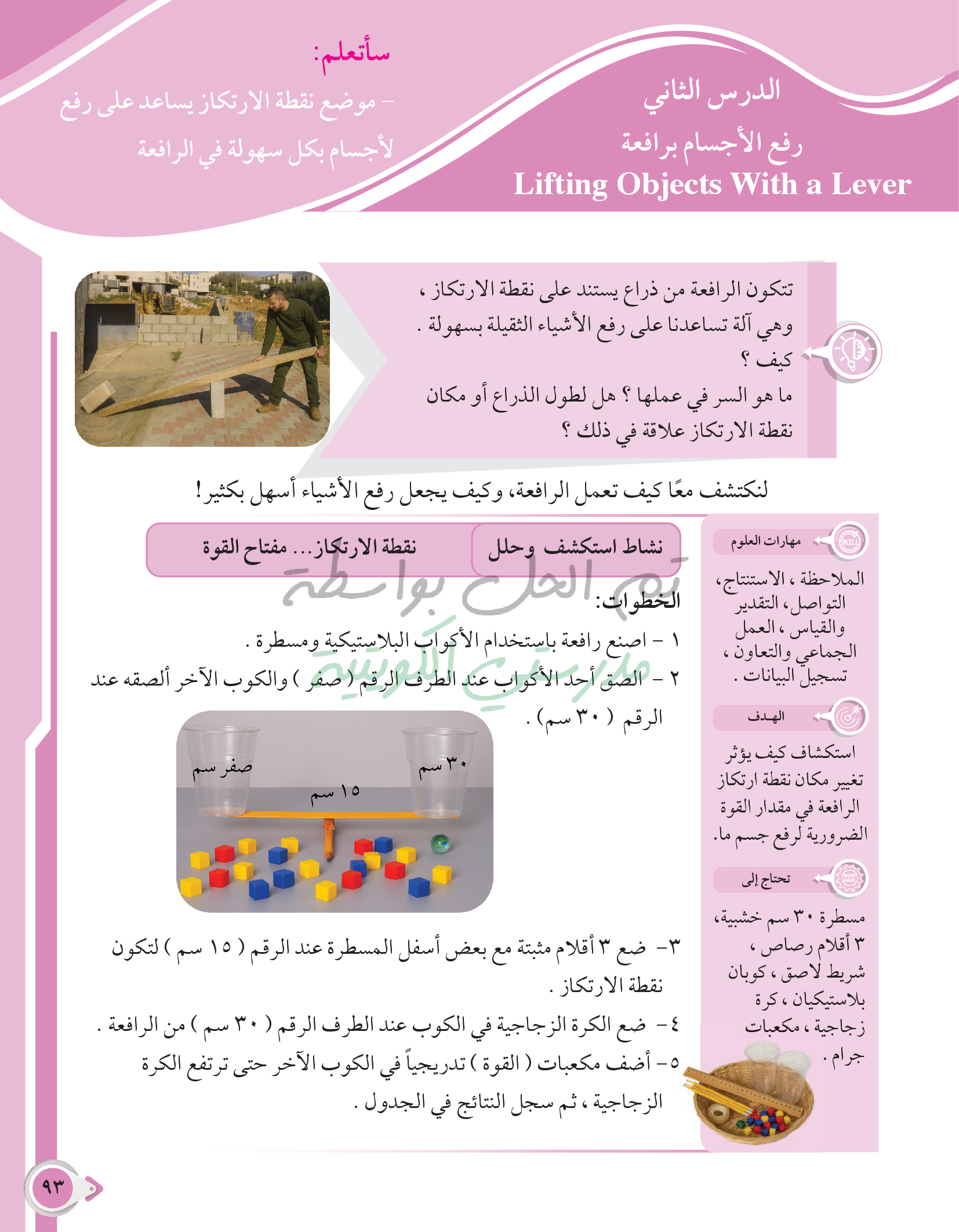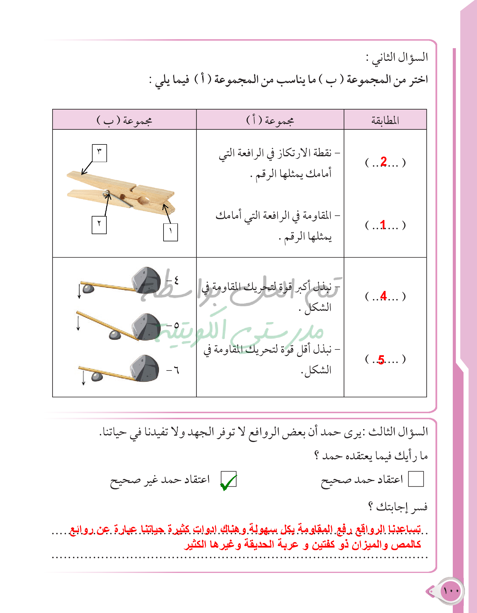 أسئلة نهاية فصل رحلة مع الرافعة في عالم القوى والحركة