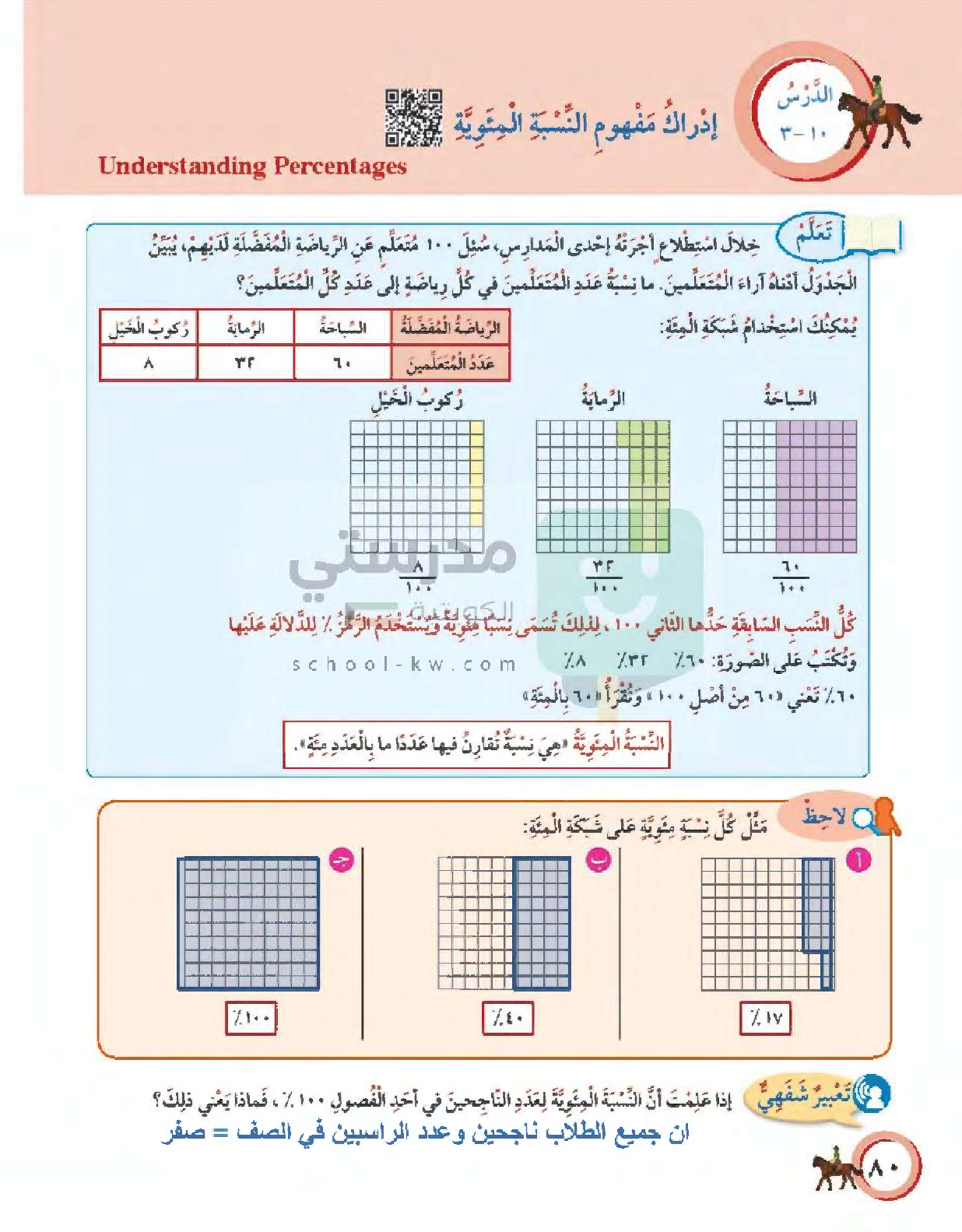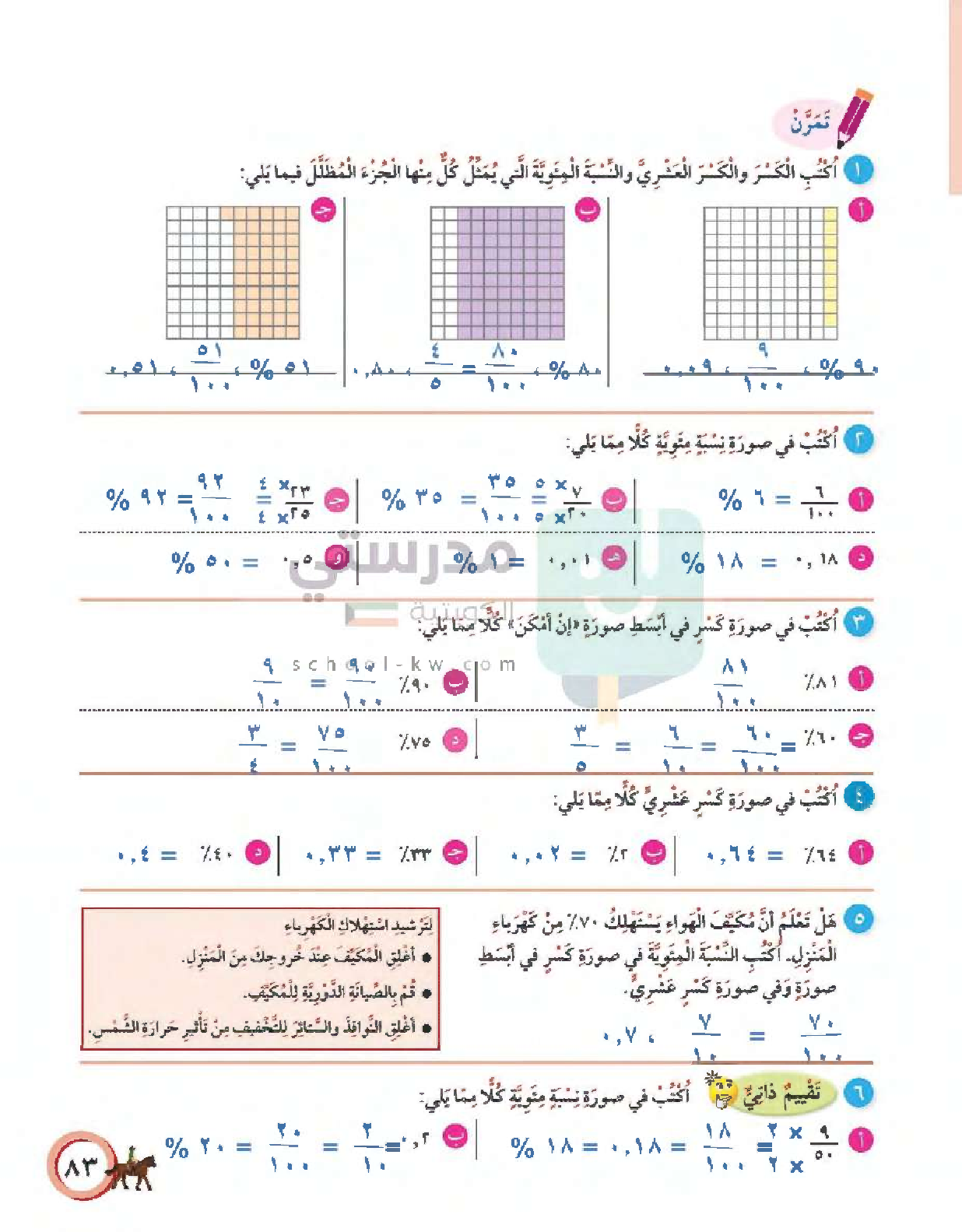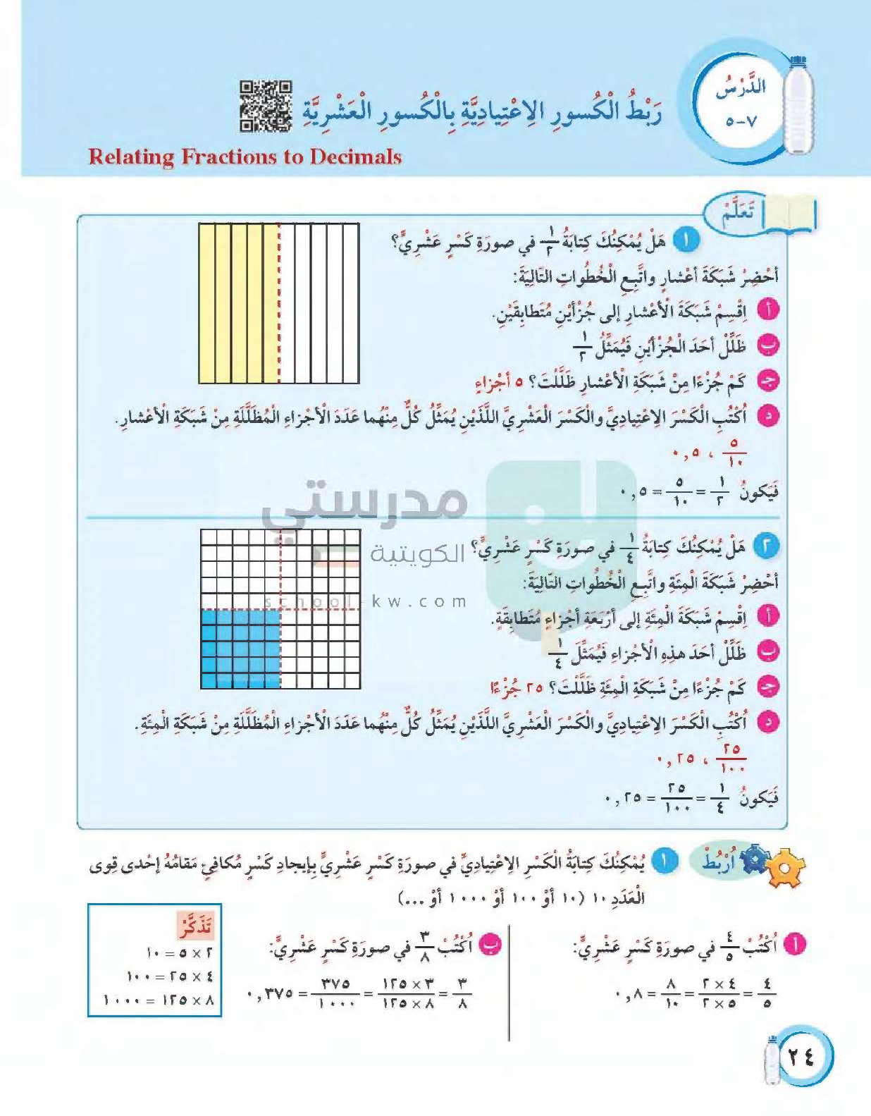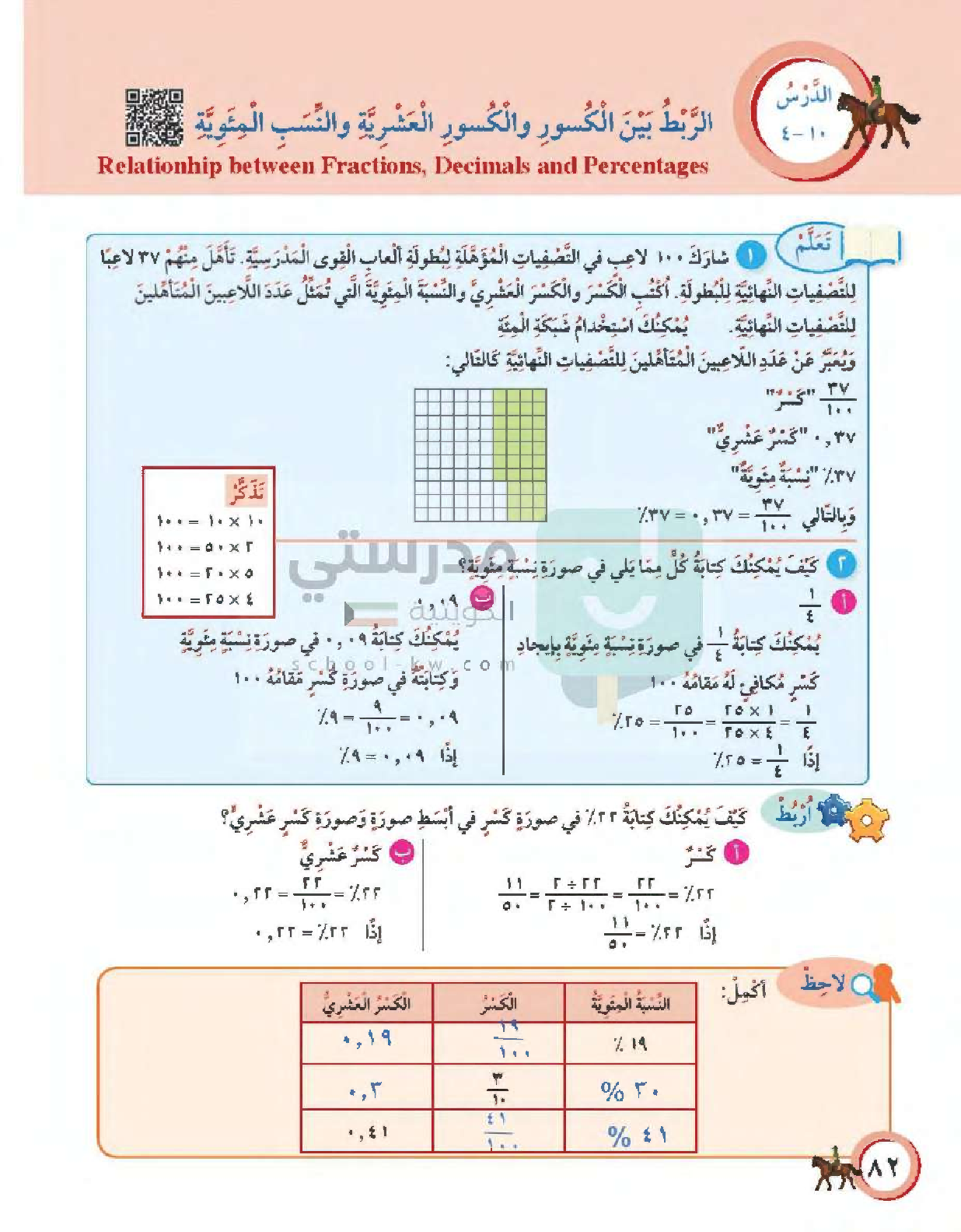 الربط بين الكسور والكسور العشرية والنسب المئوية