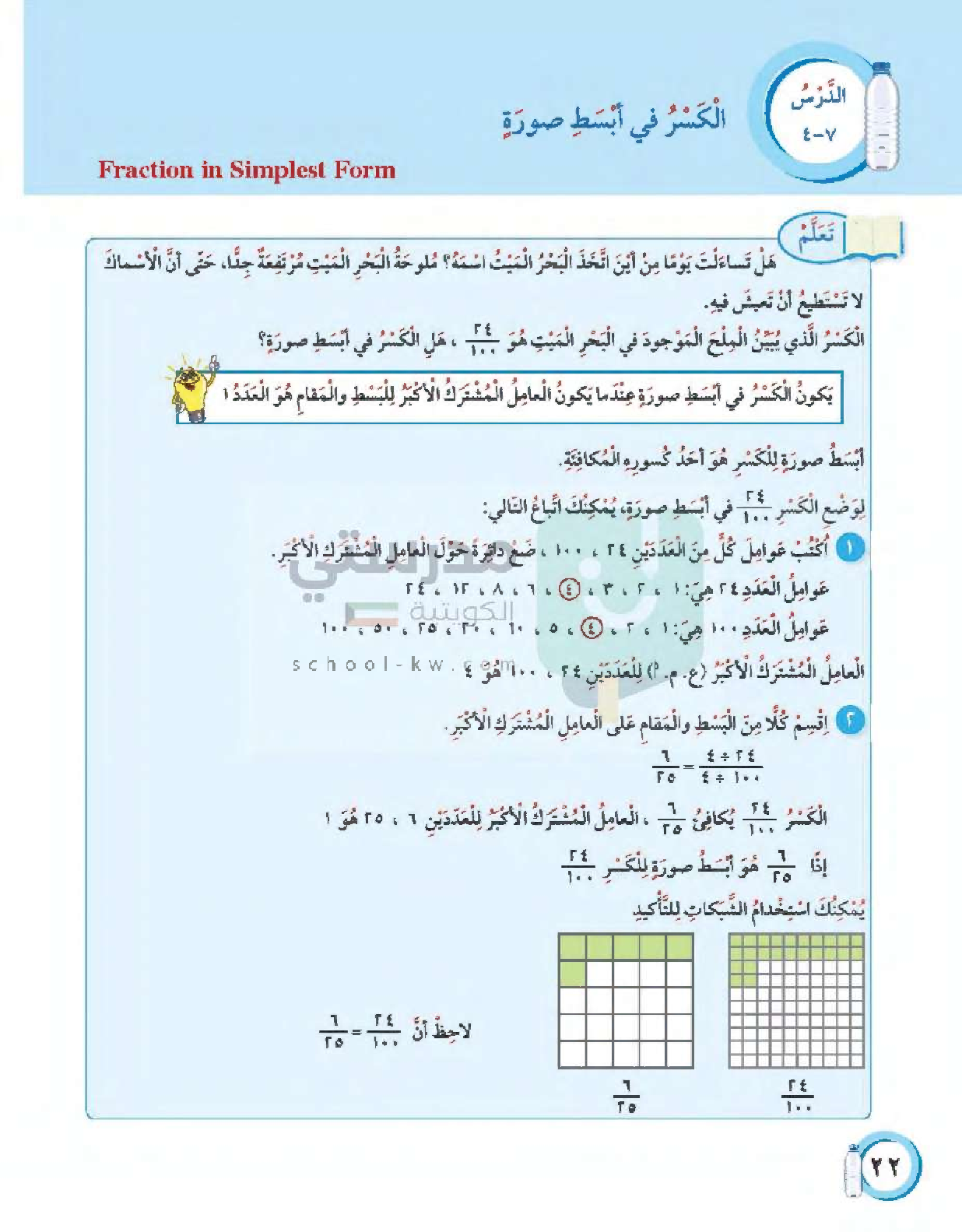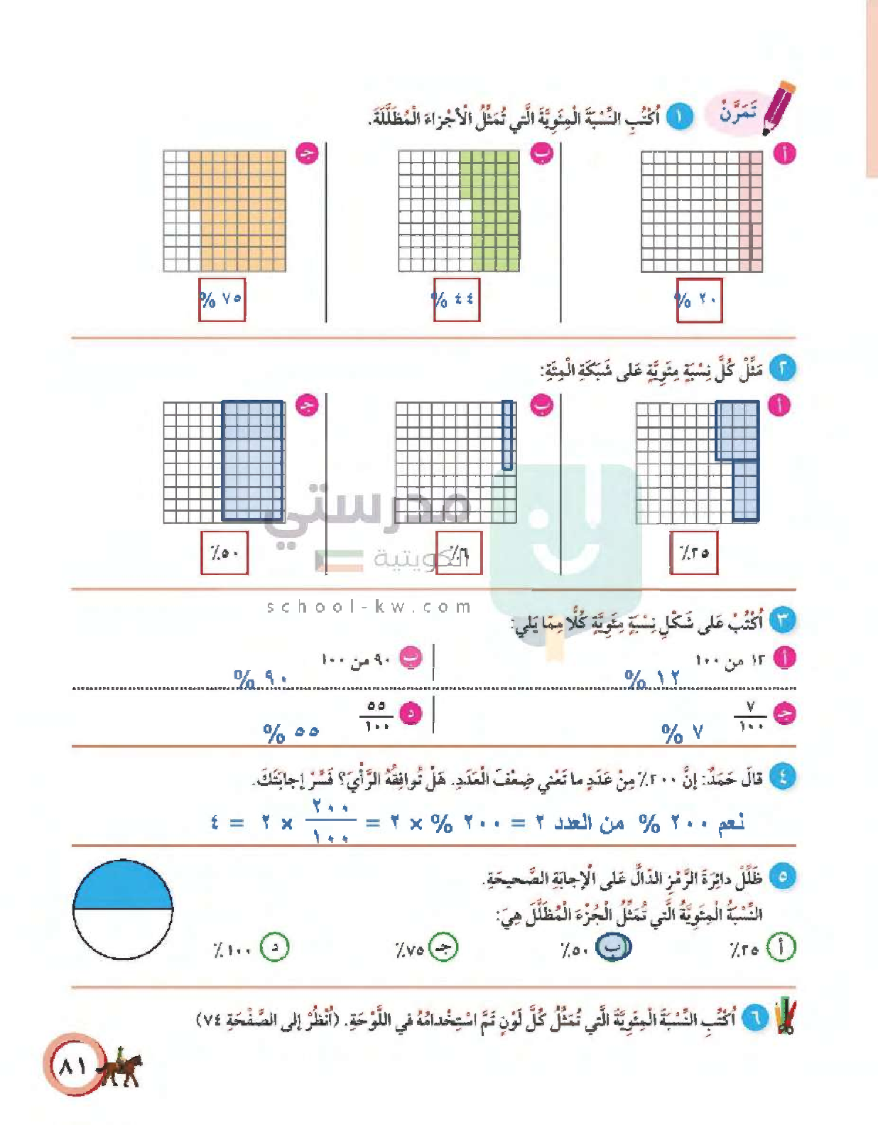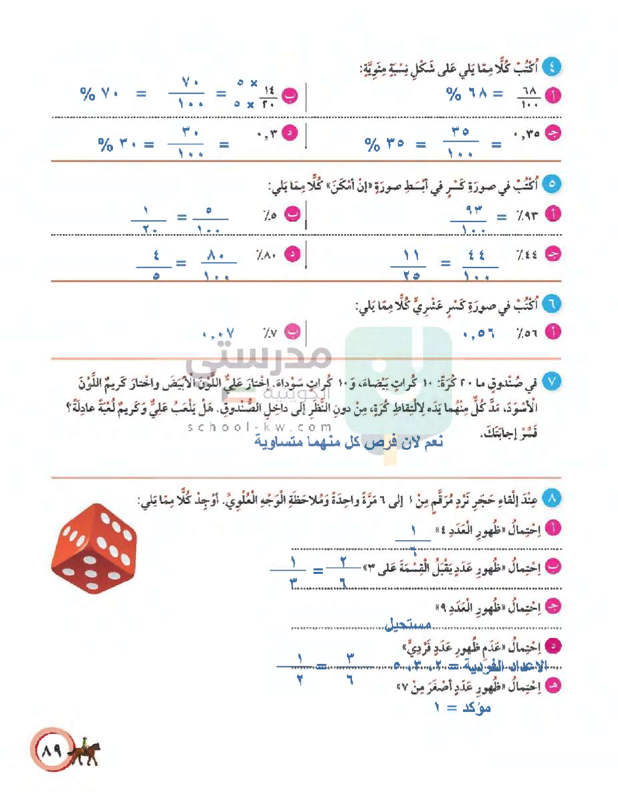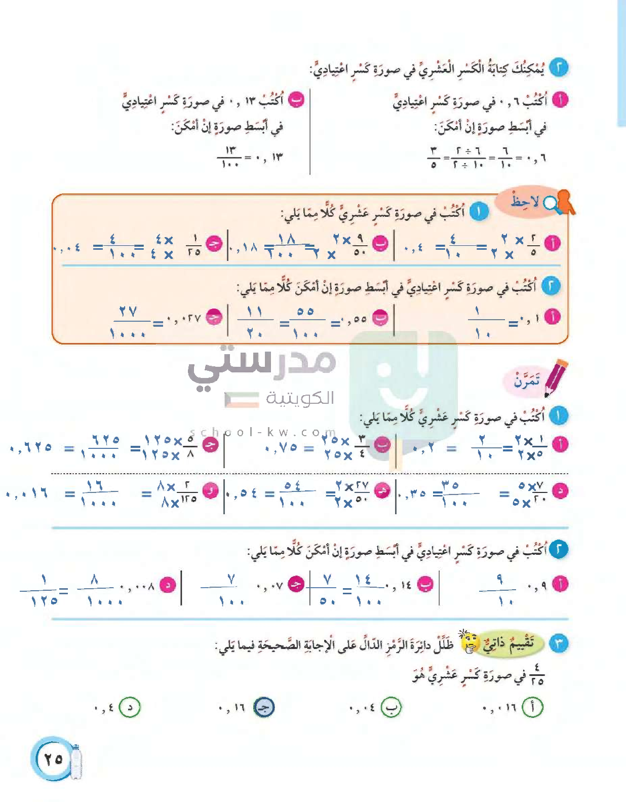 الربط بين الكسور والكسور العشرية والنسب المئوية