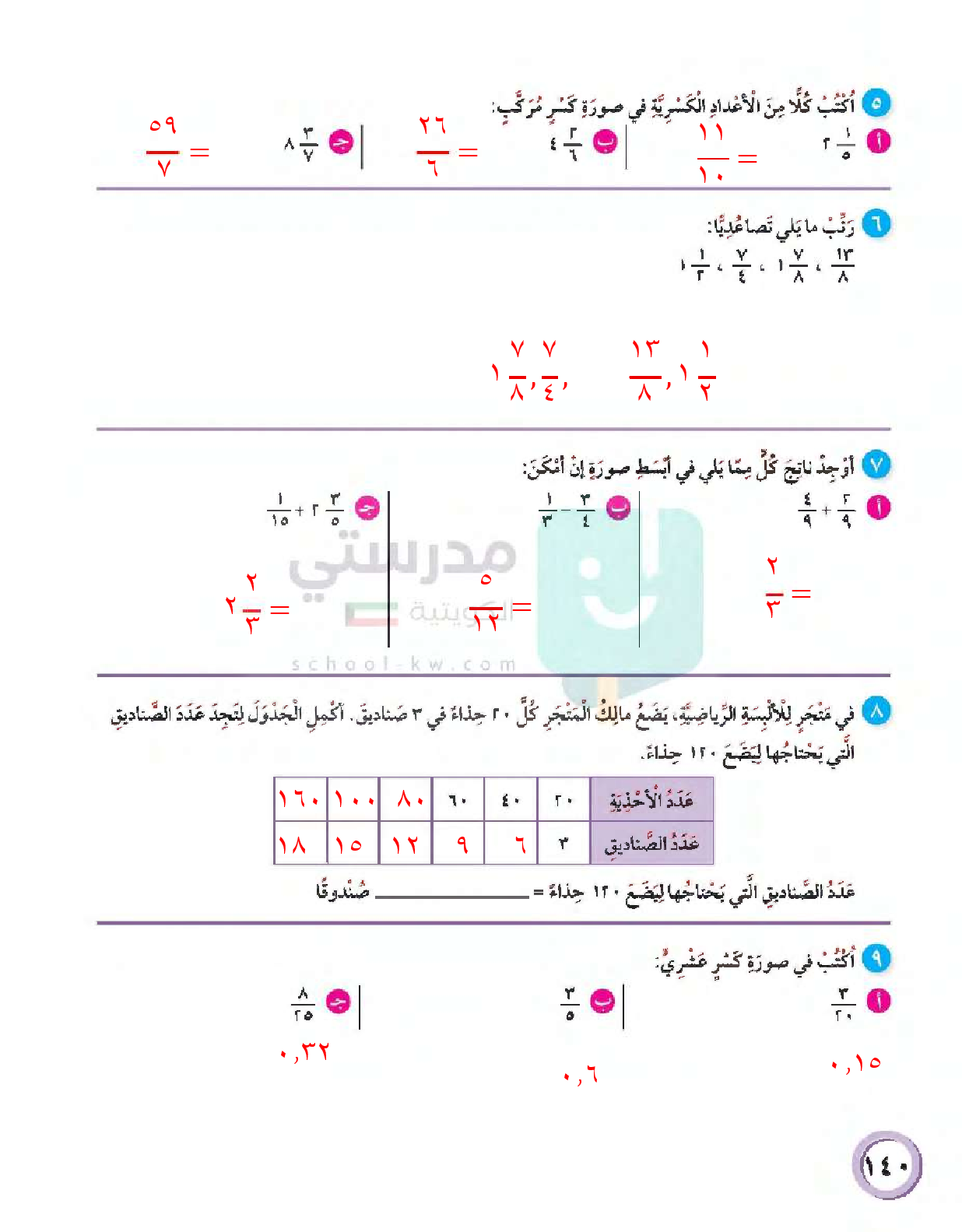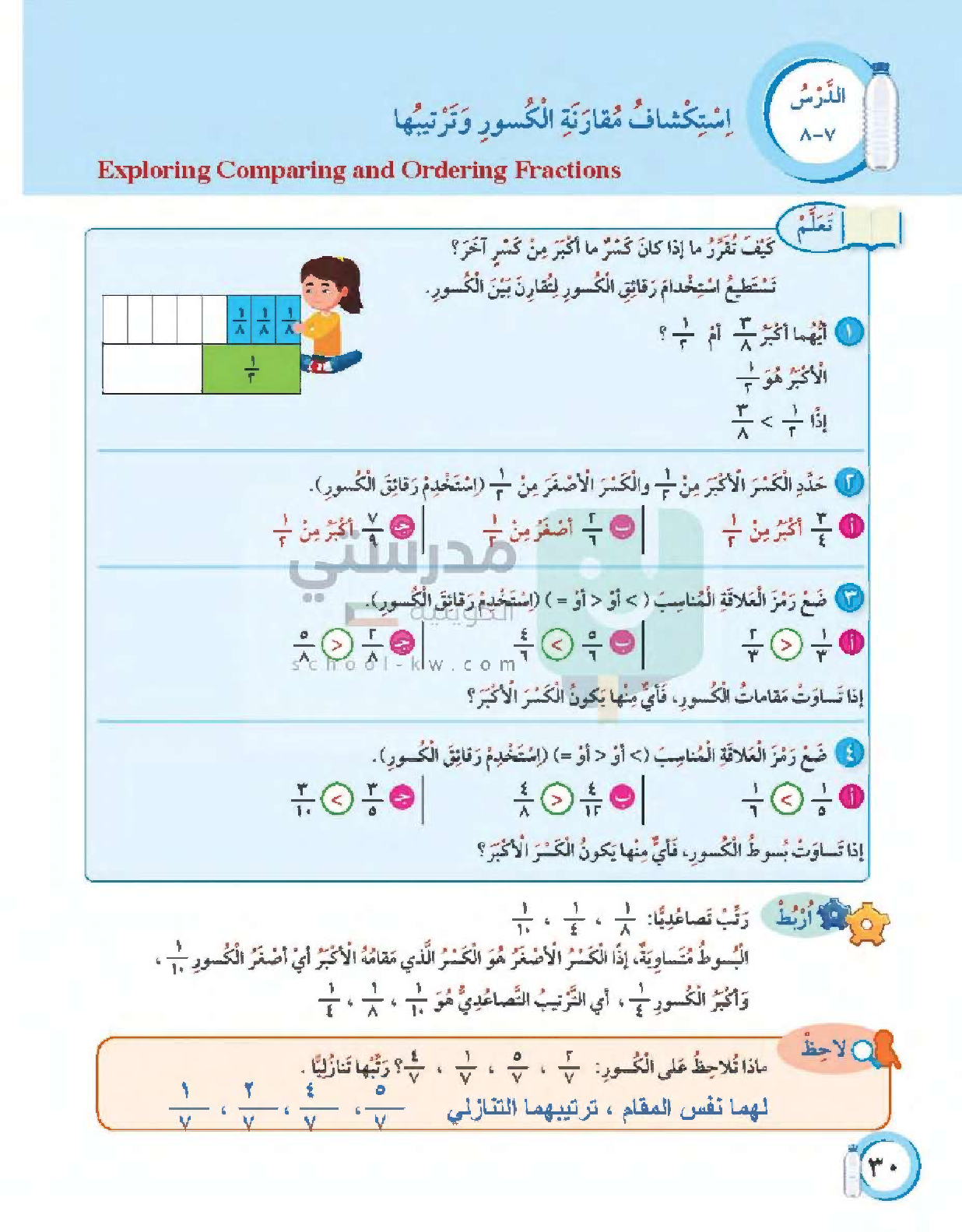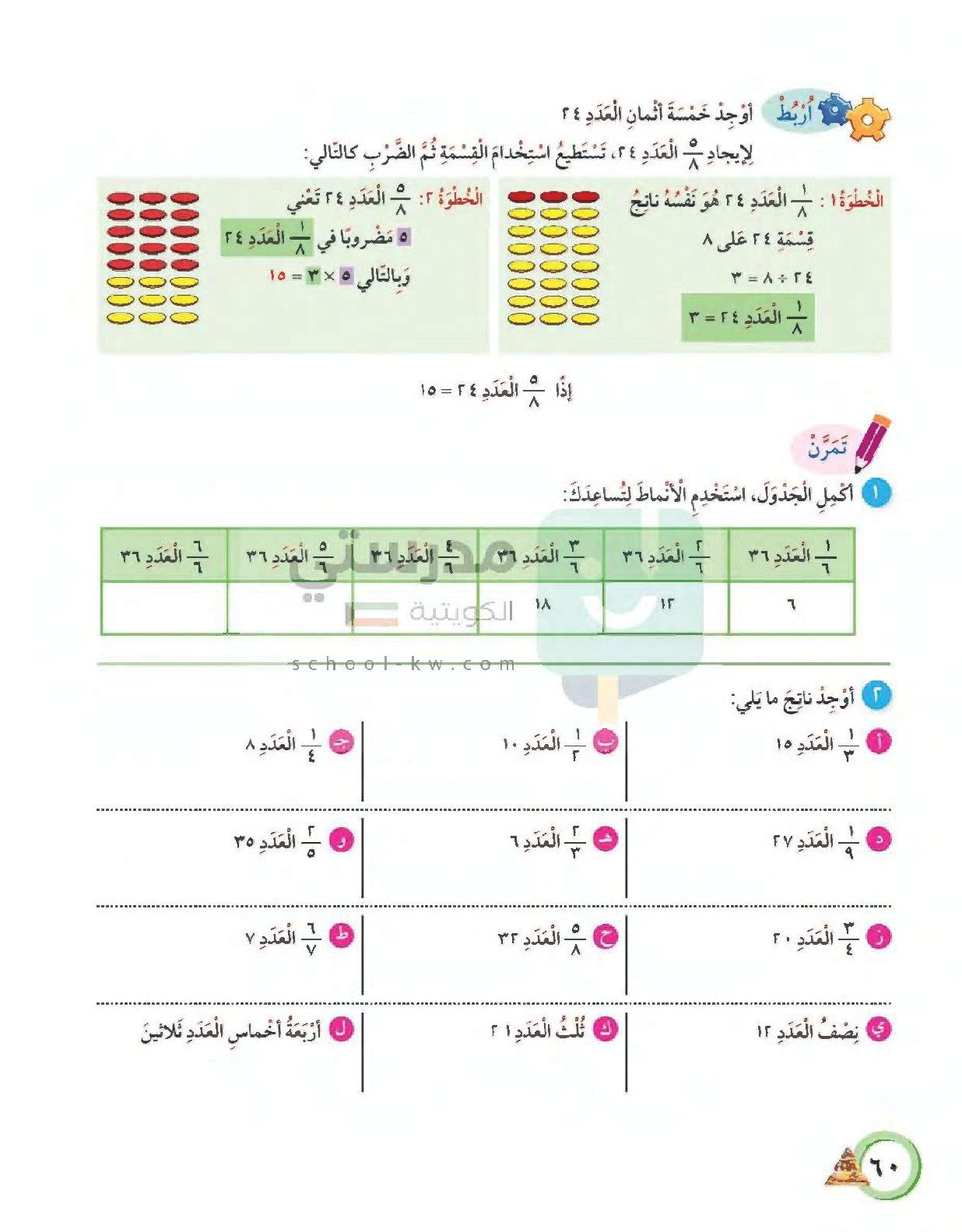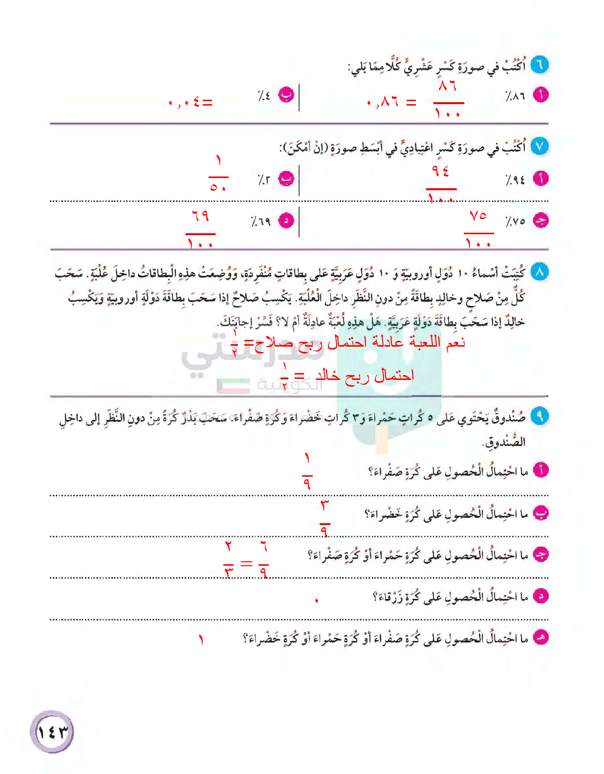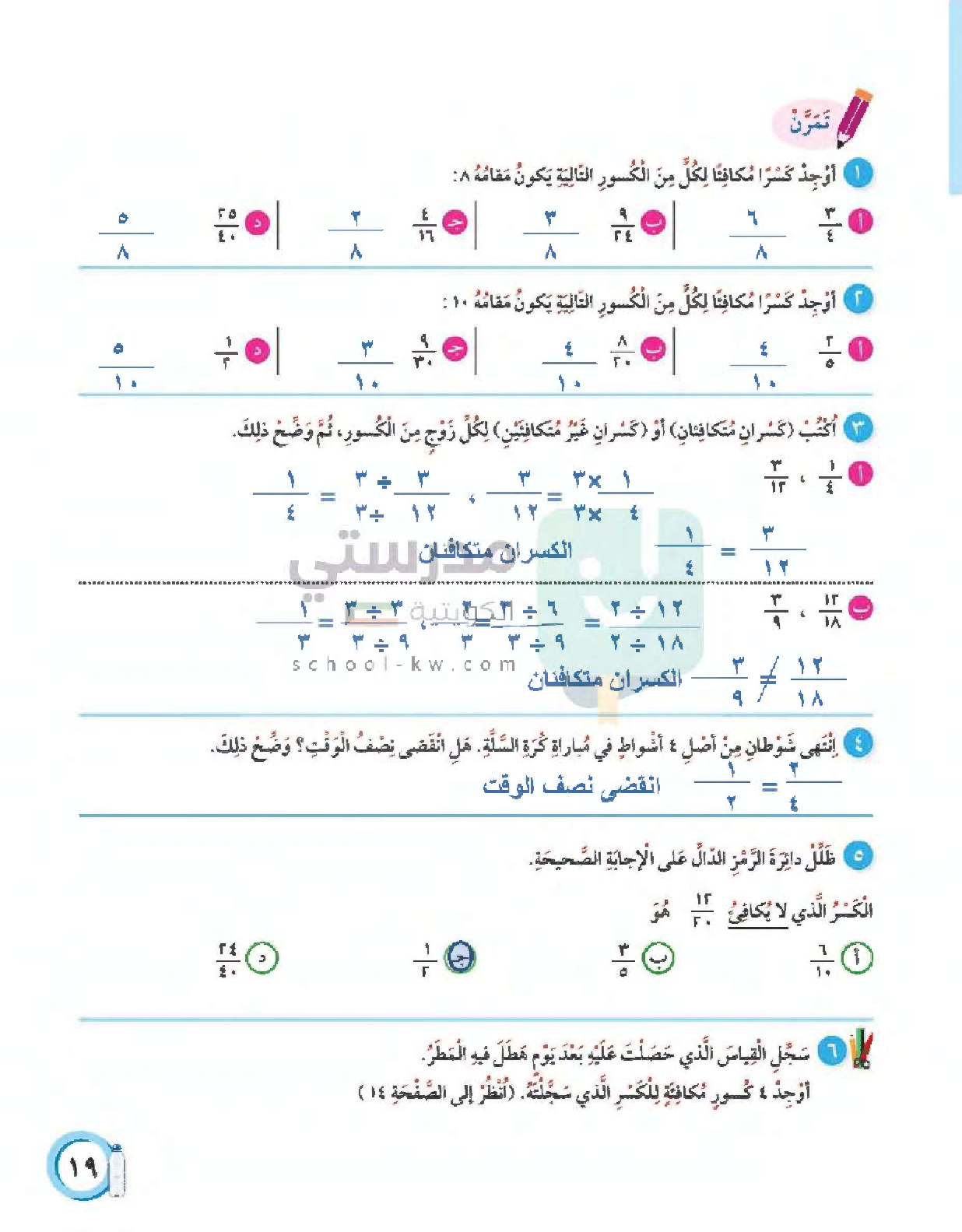 الربط بين الكسور والكسور العشرية والنسب المئوية