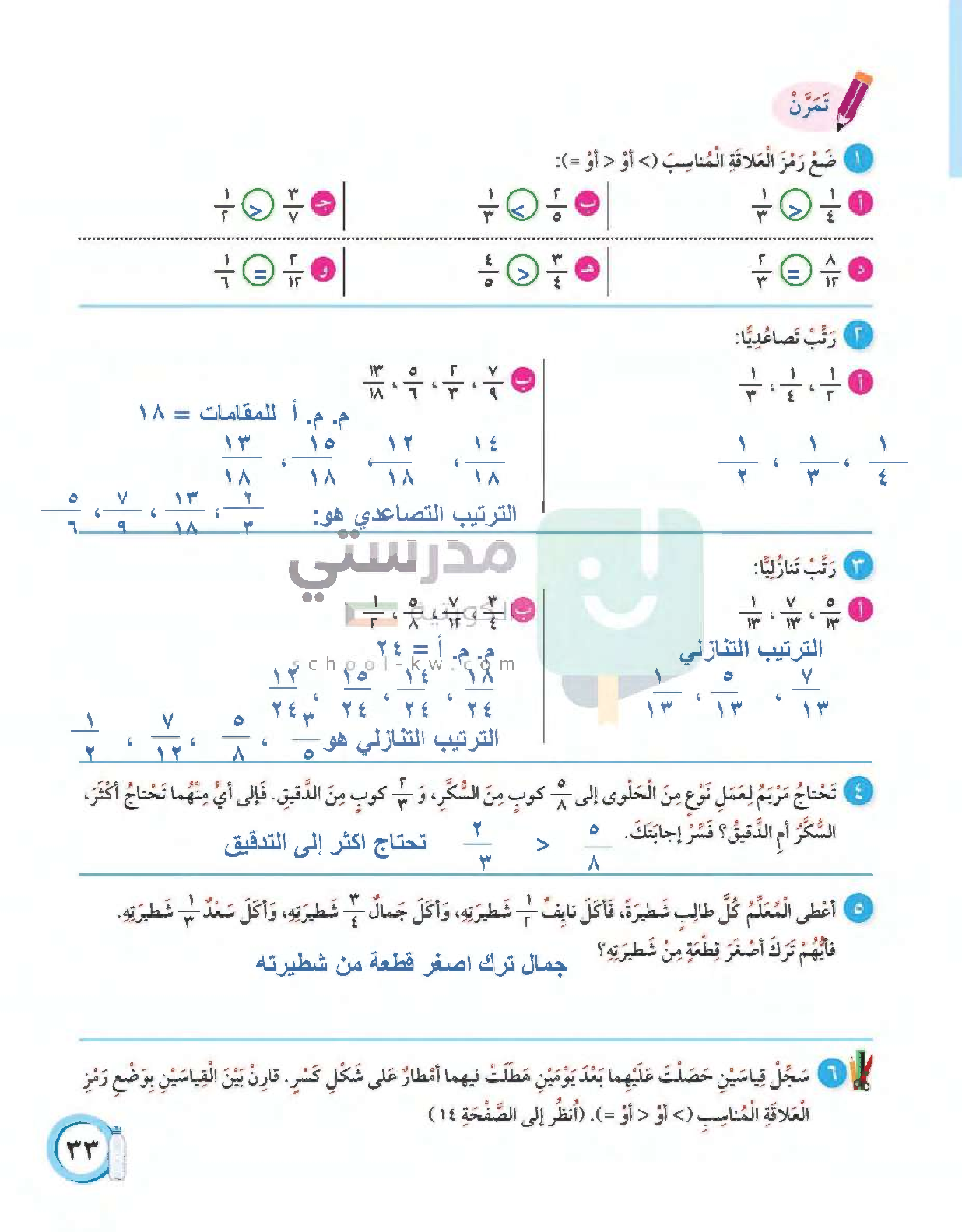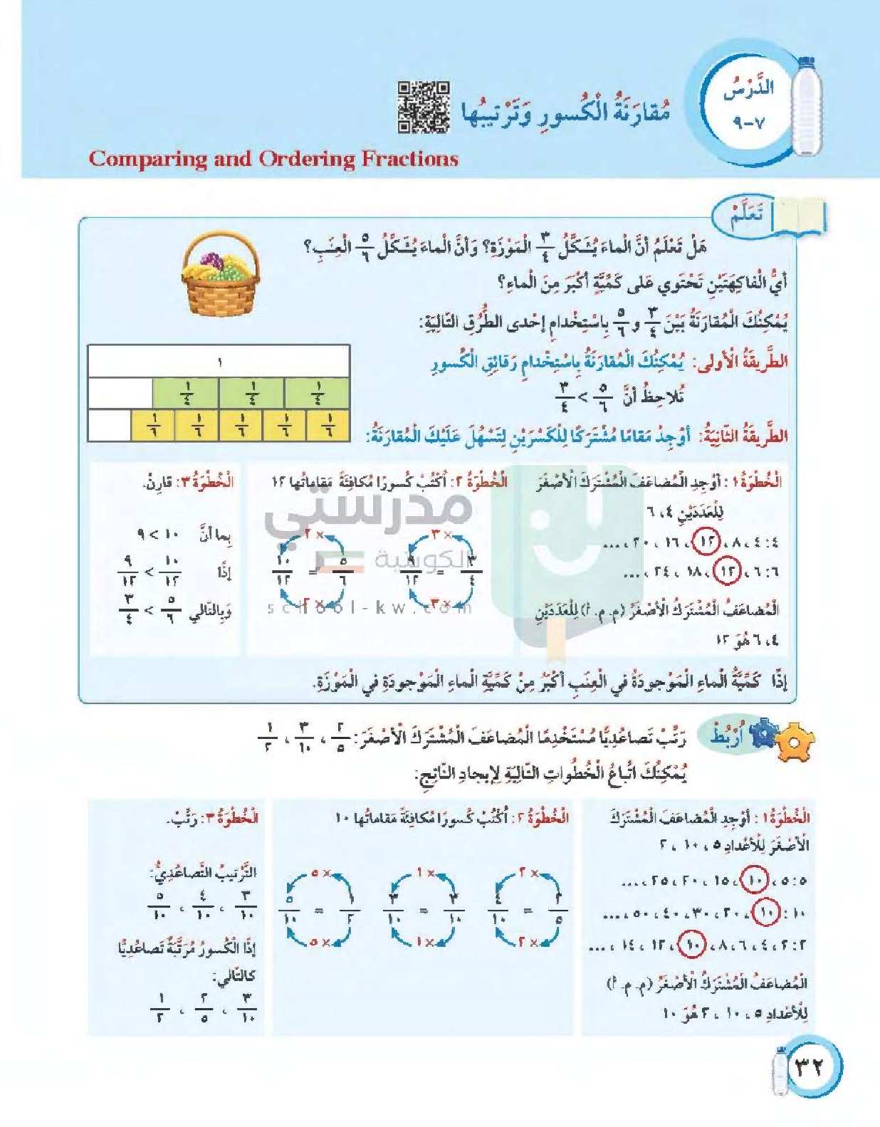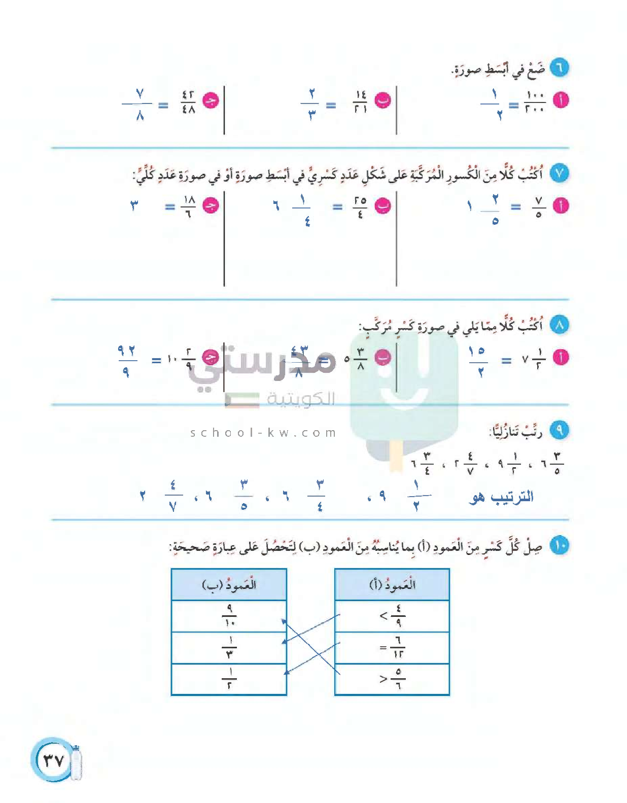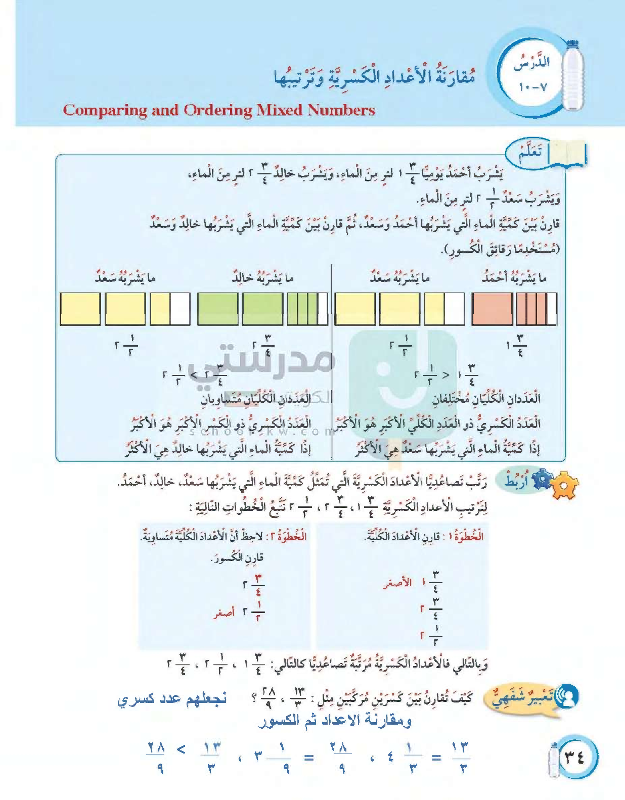 الربط بين الكسور والكسور العشرية والنسب المئوية