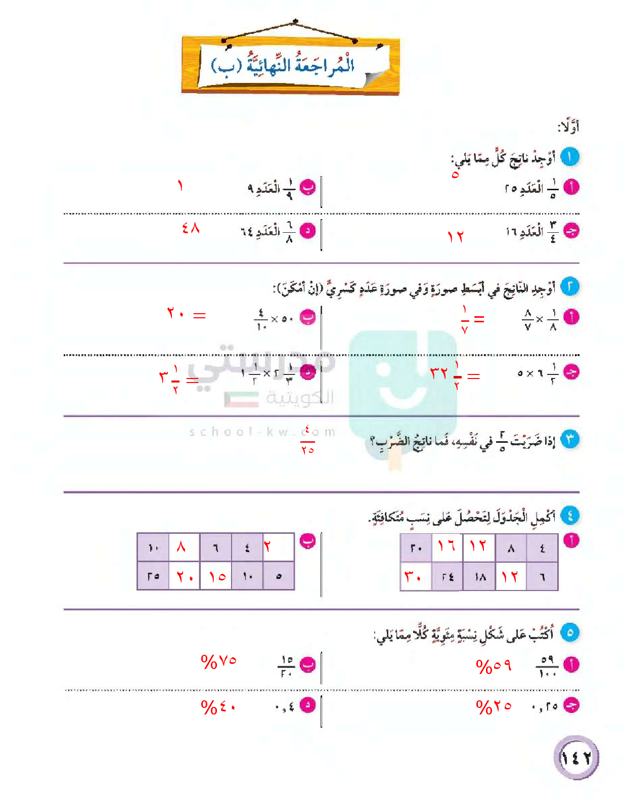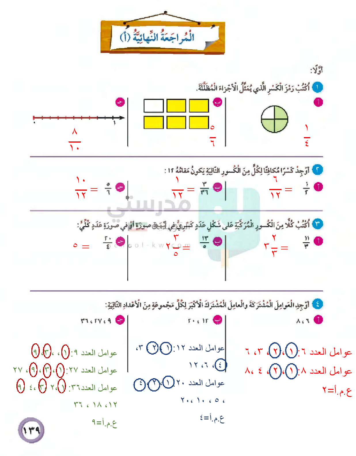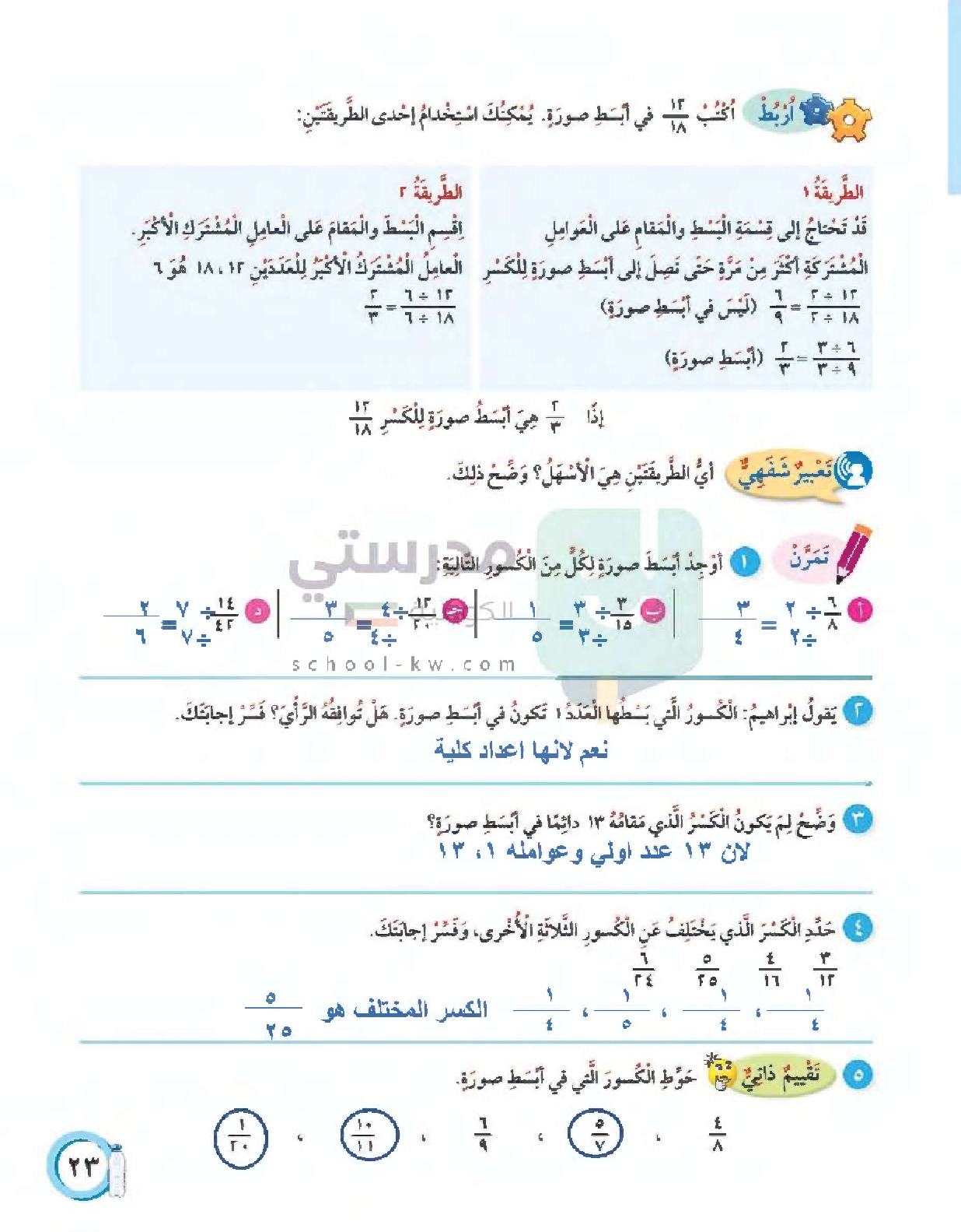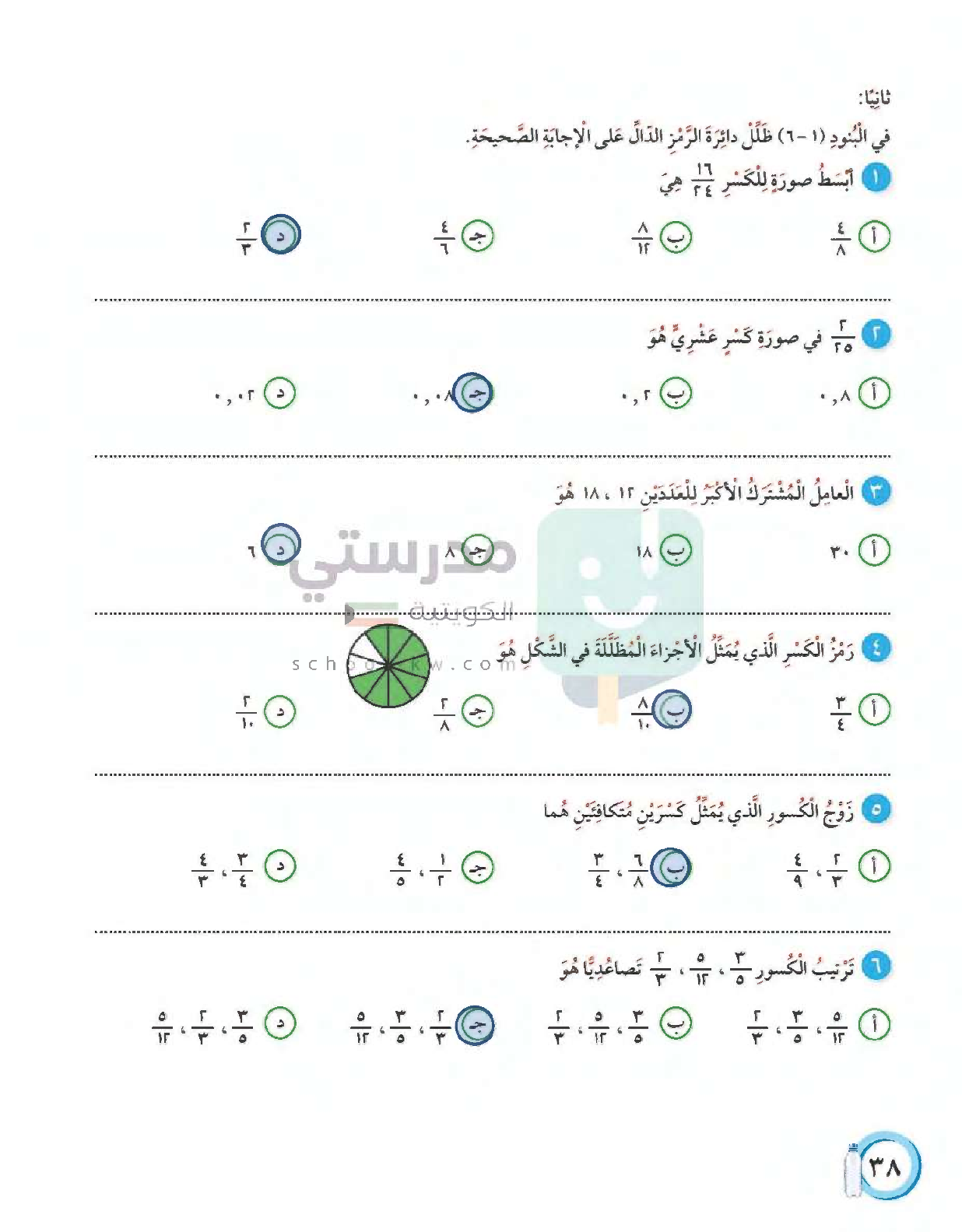 الربط بين الكسور والكسور العشرية والنسب المئوية