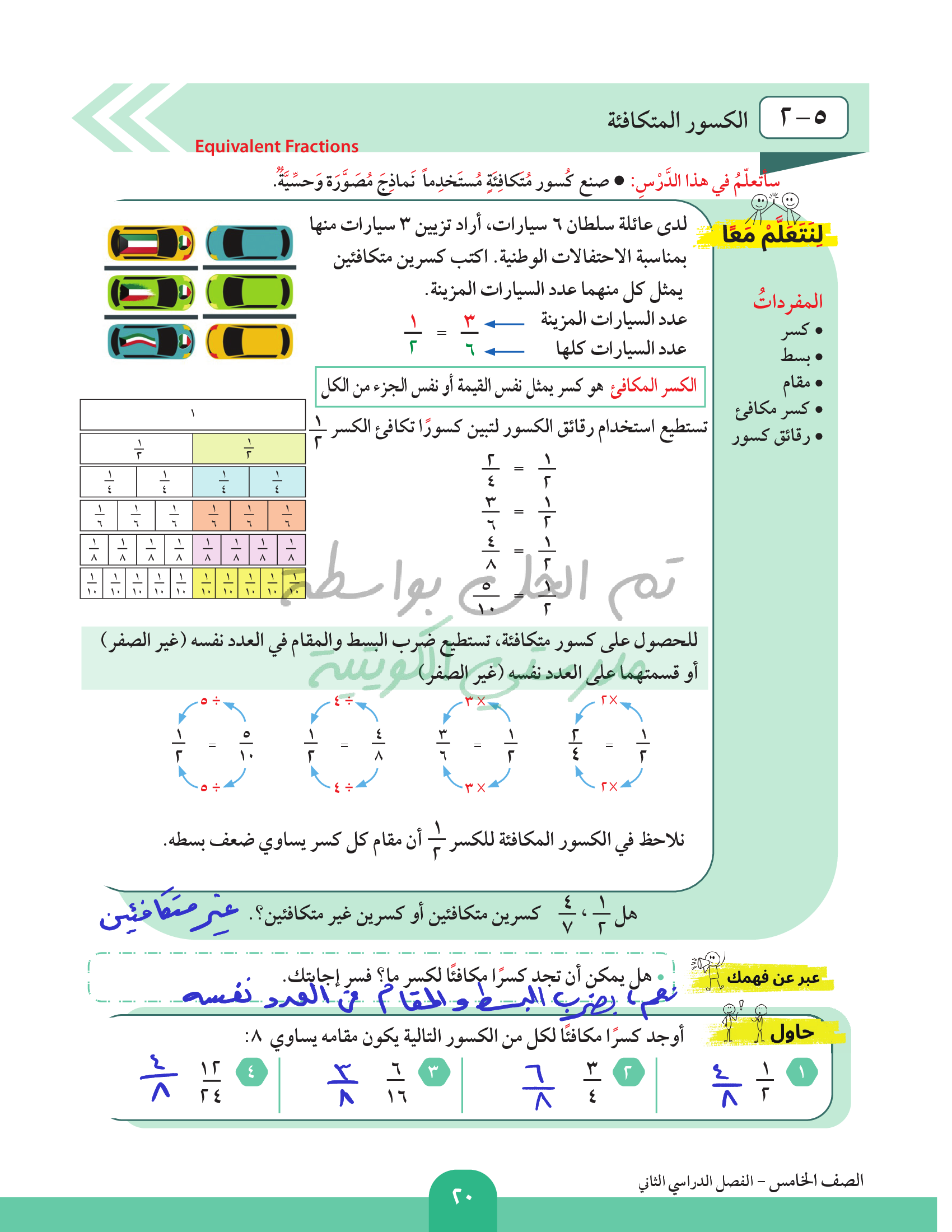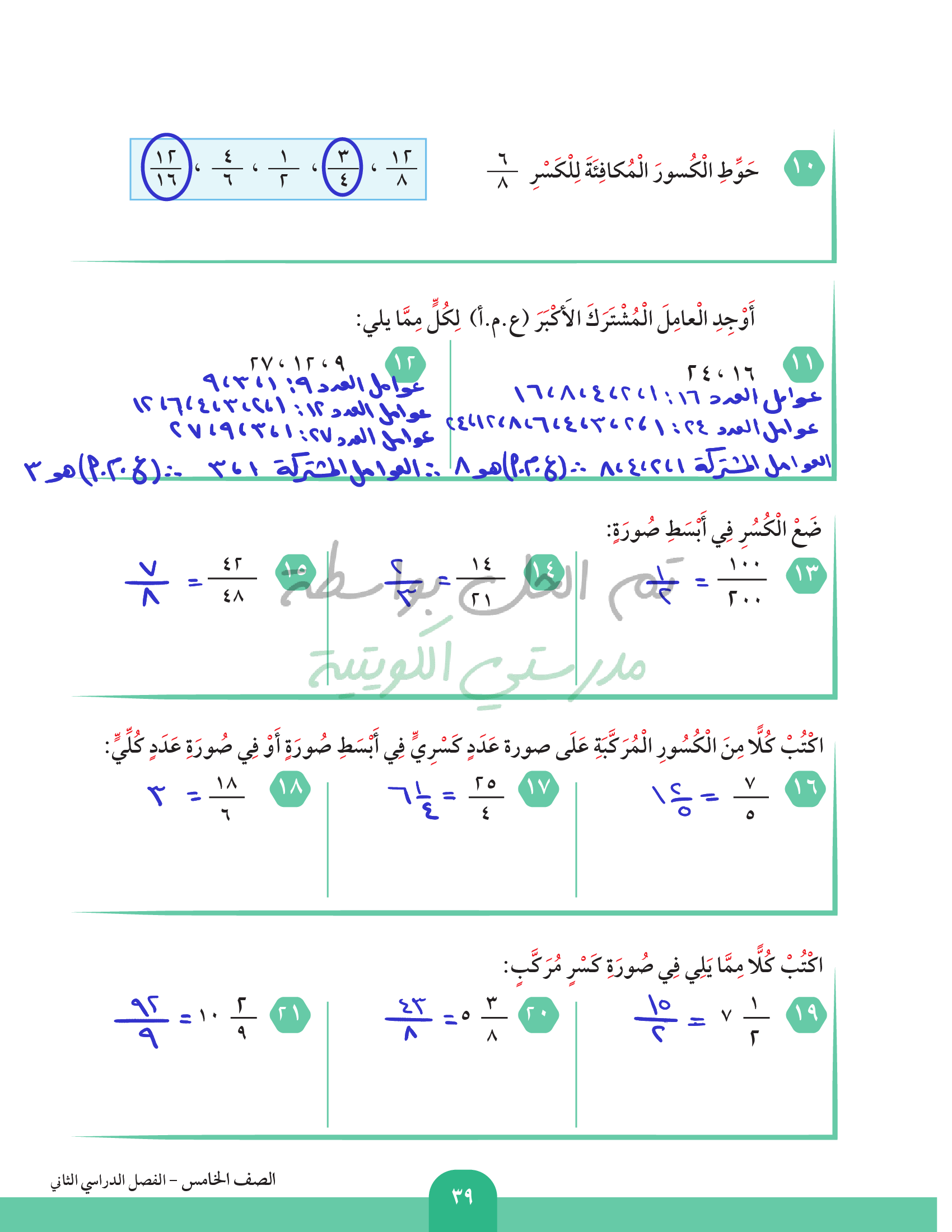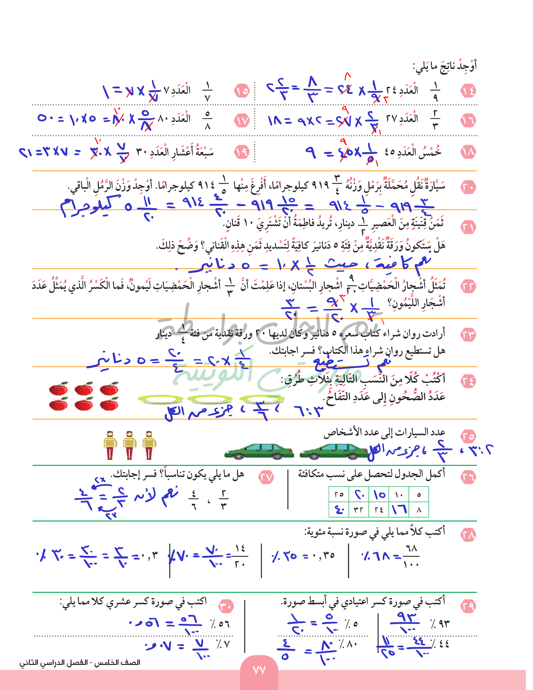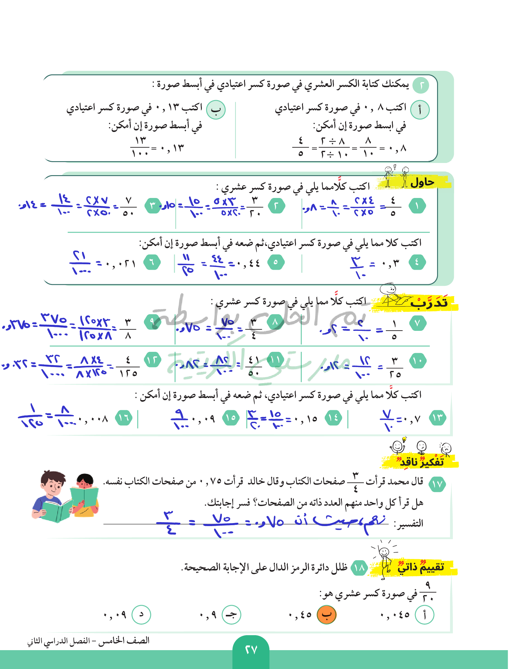 الربط بين الكسور الاعتيادية والكسور العشرية والنسب المئوية