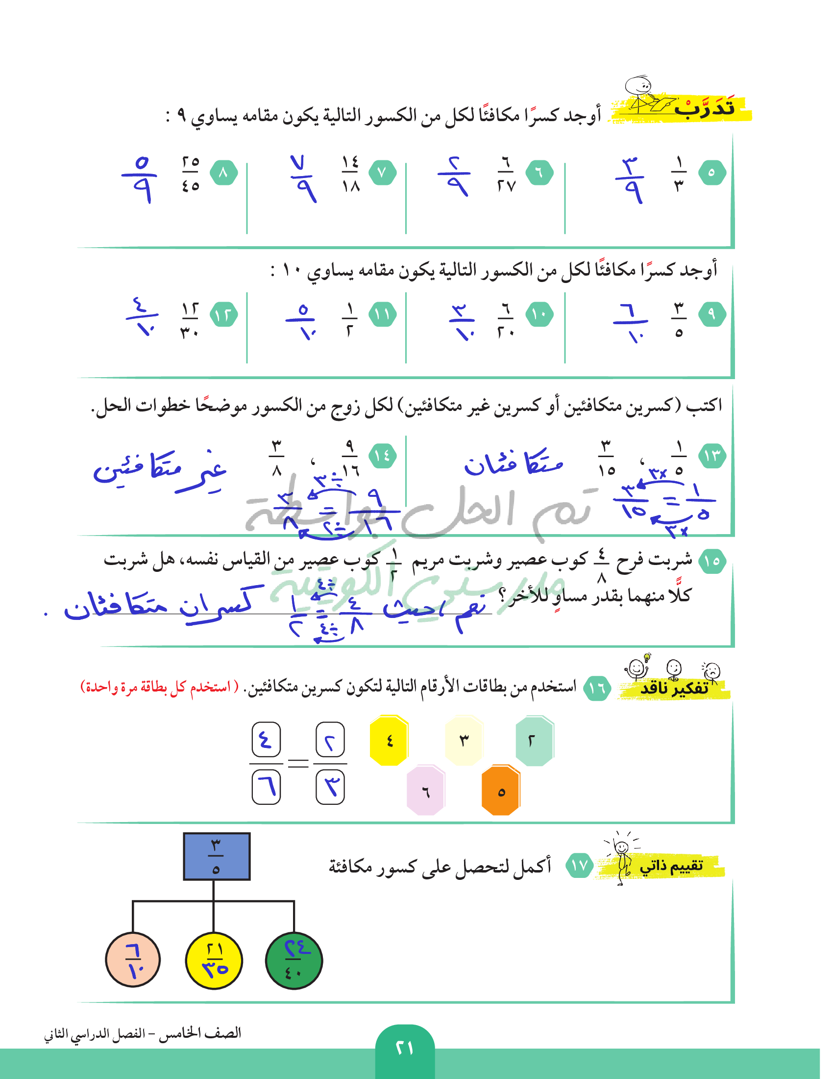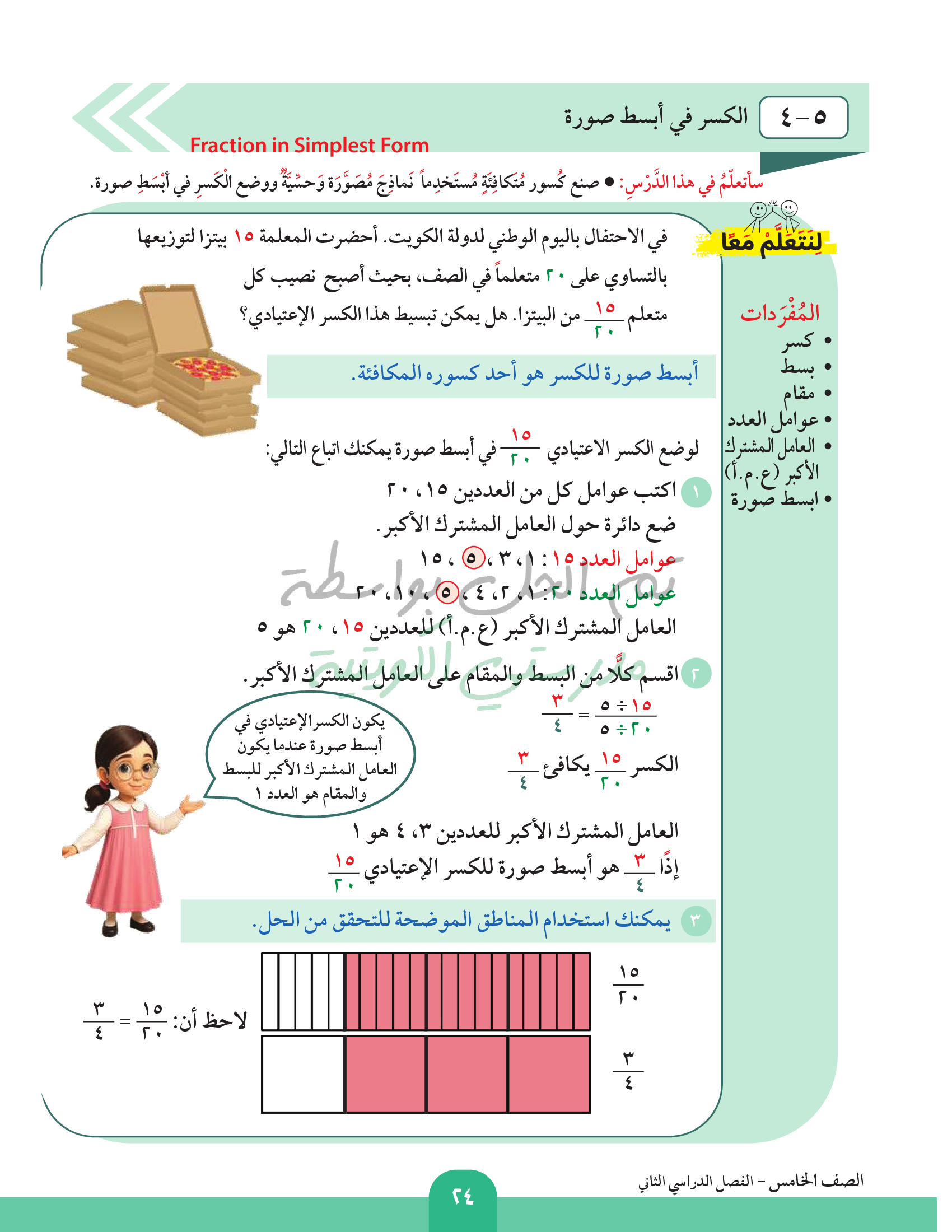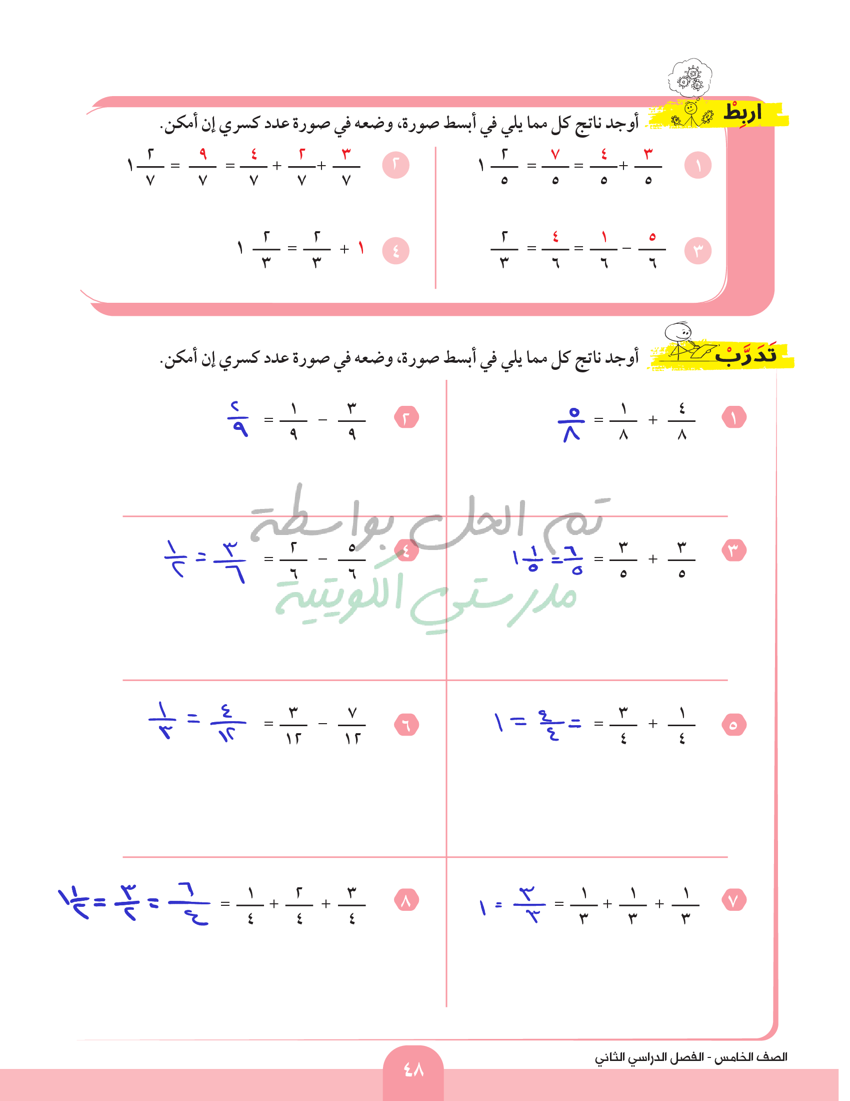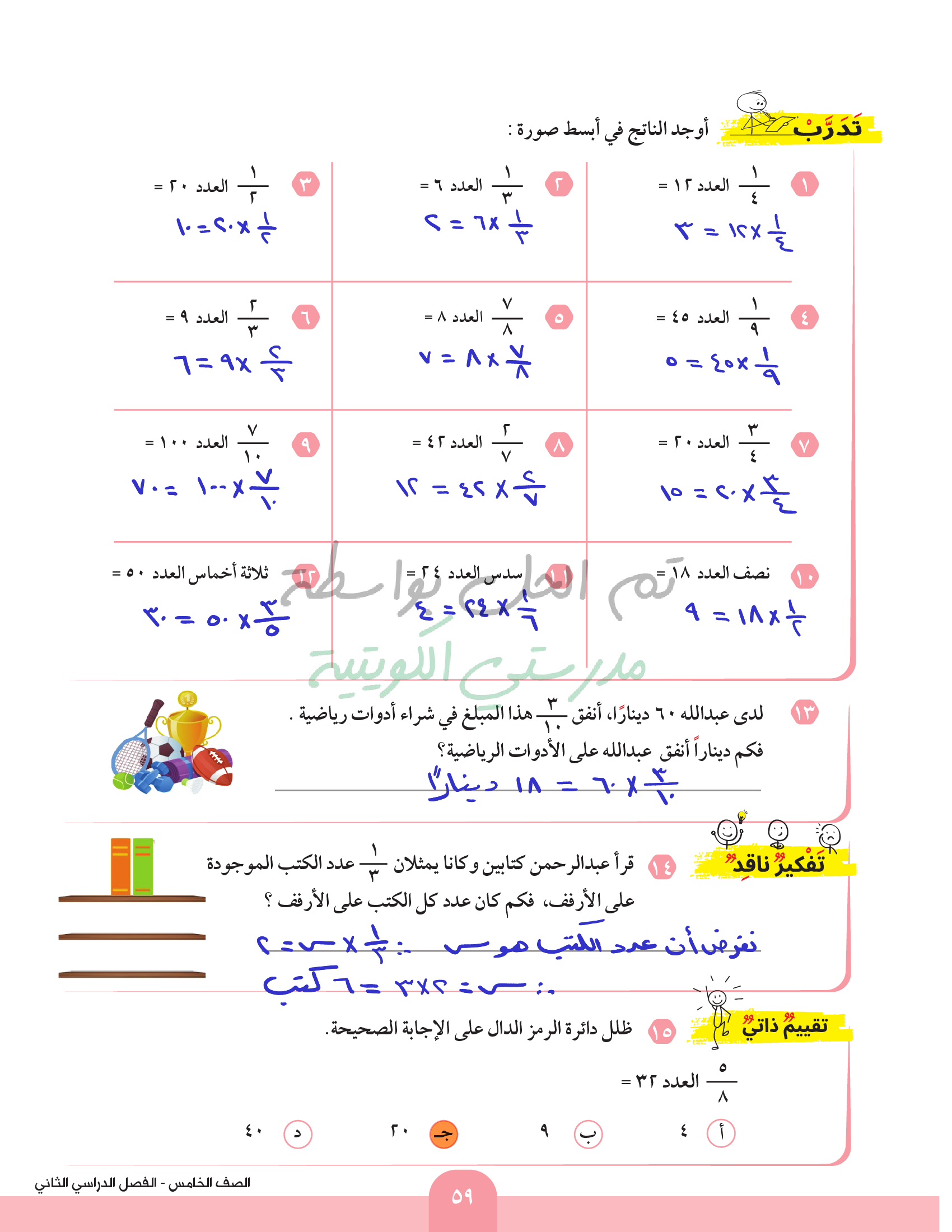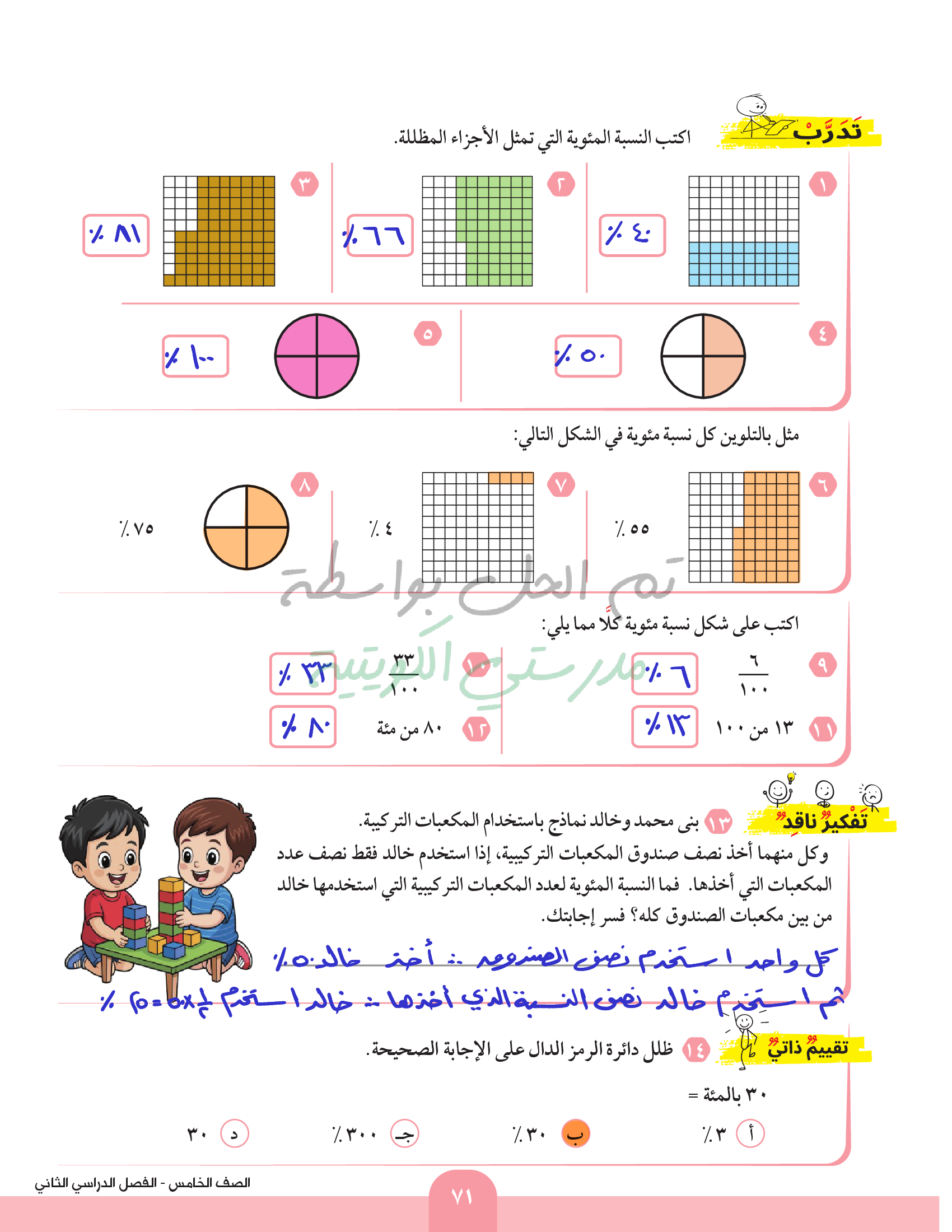 الربط بين الكسور الاعتيادية والكسور العشرية والنسب المئوية