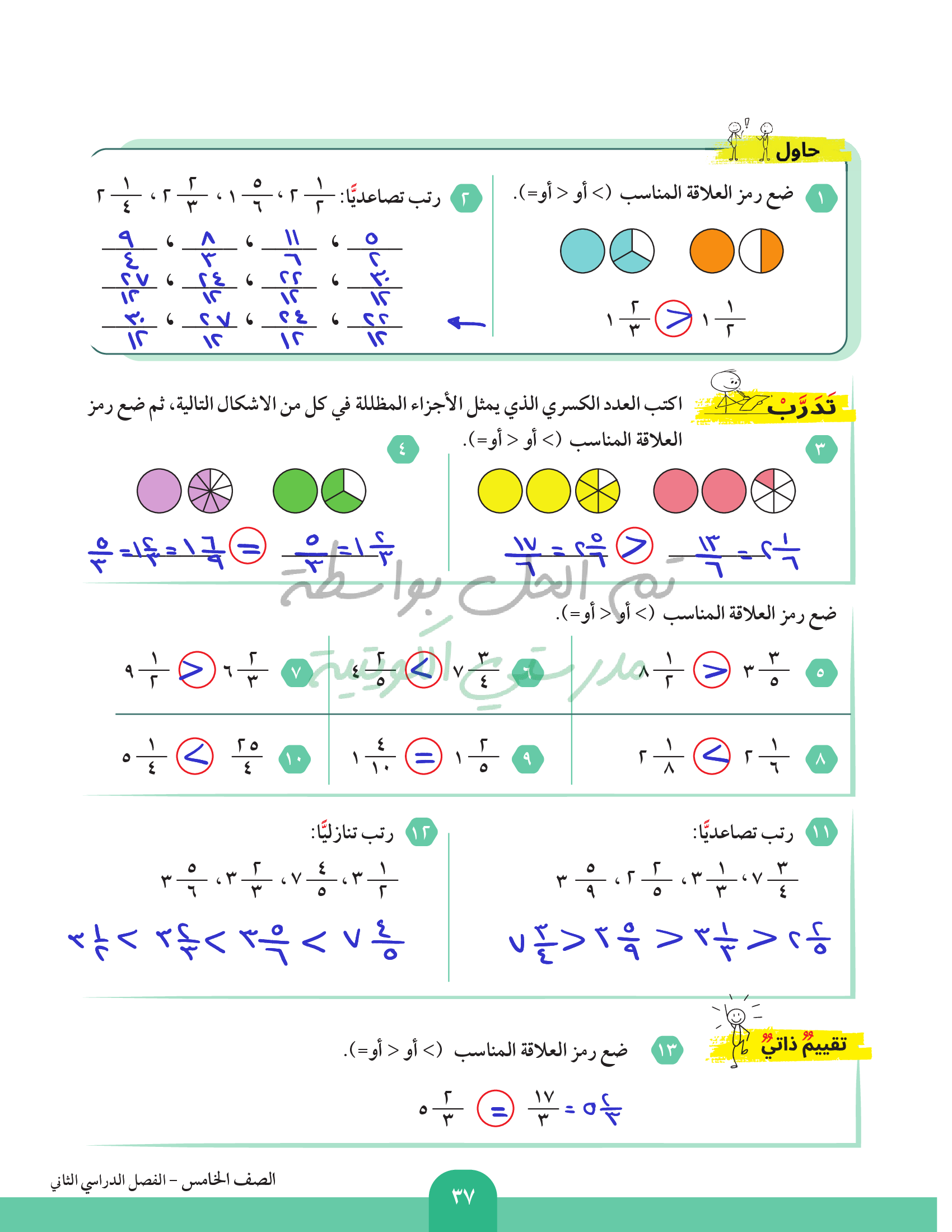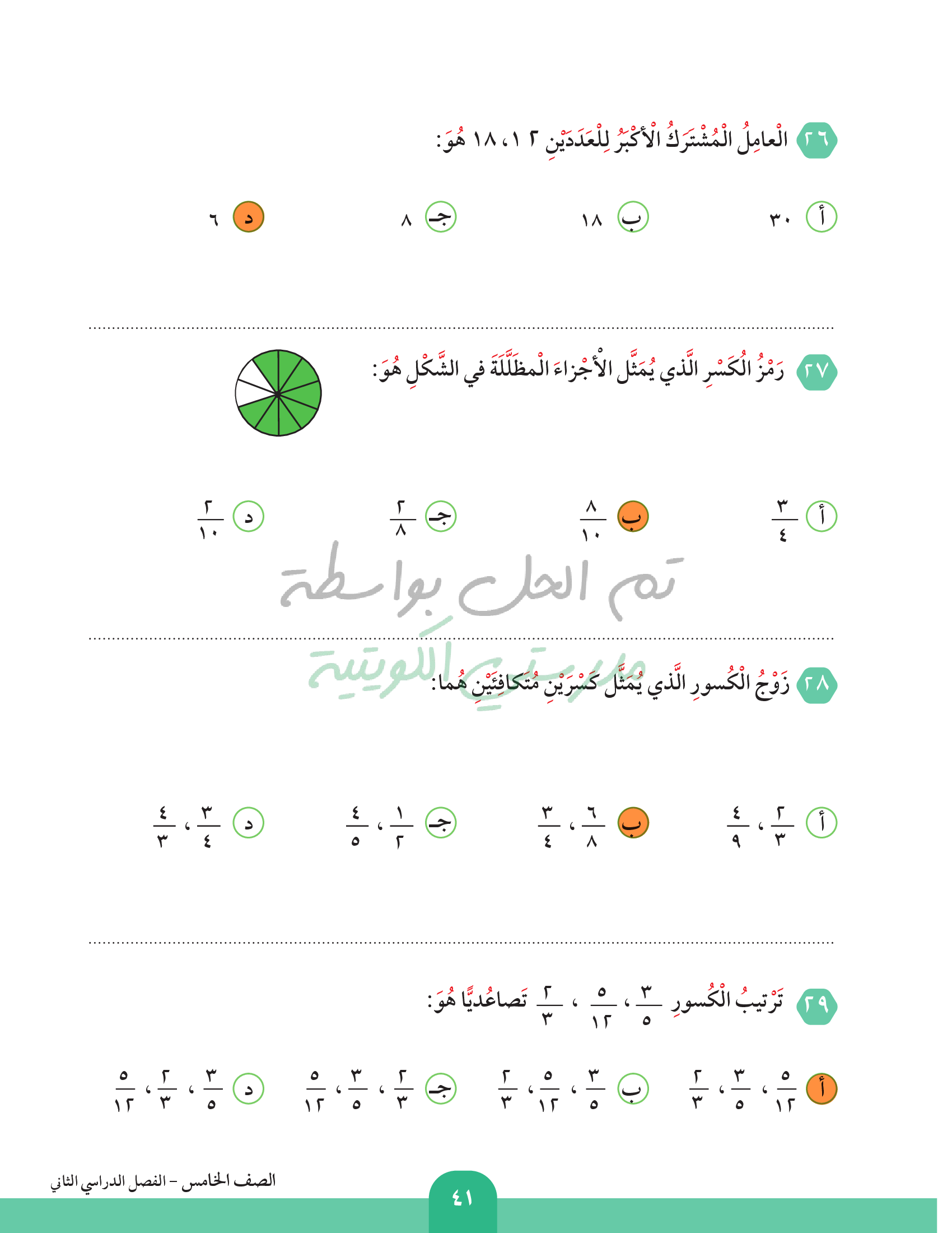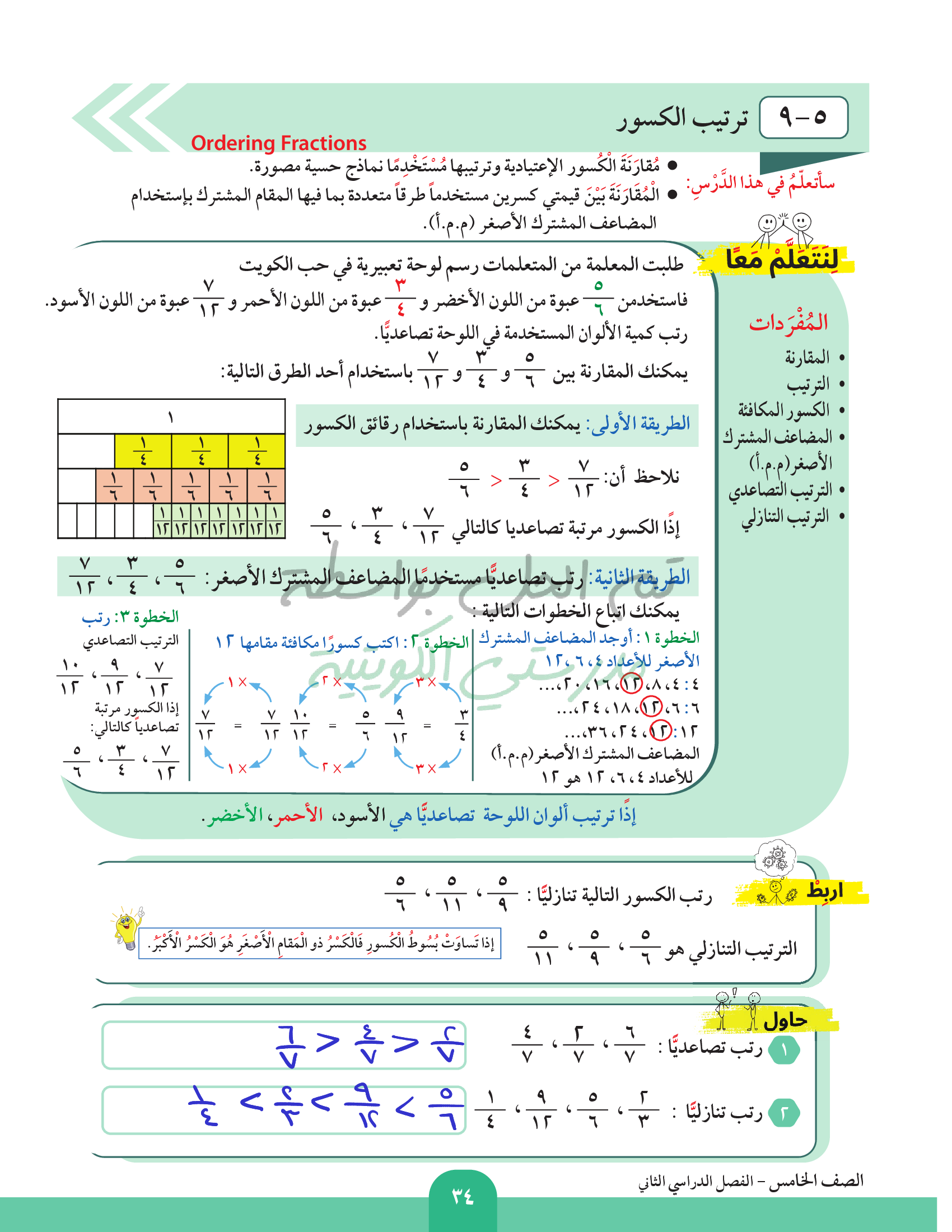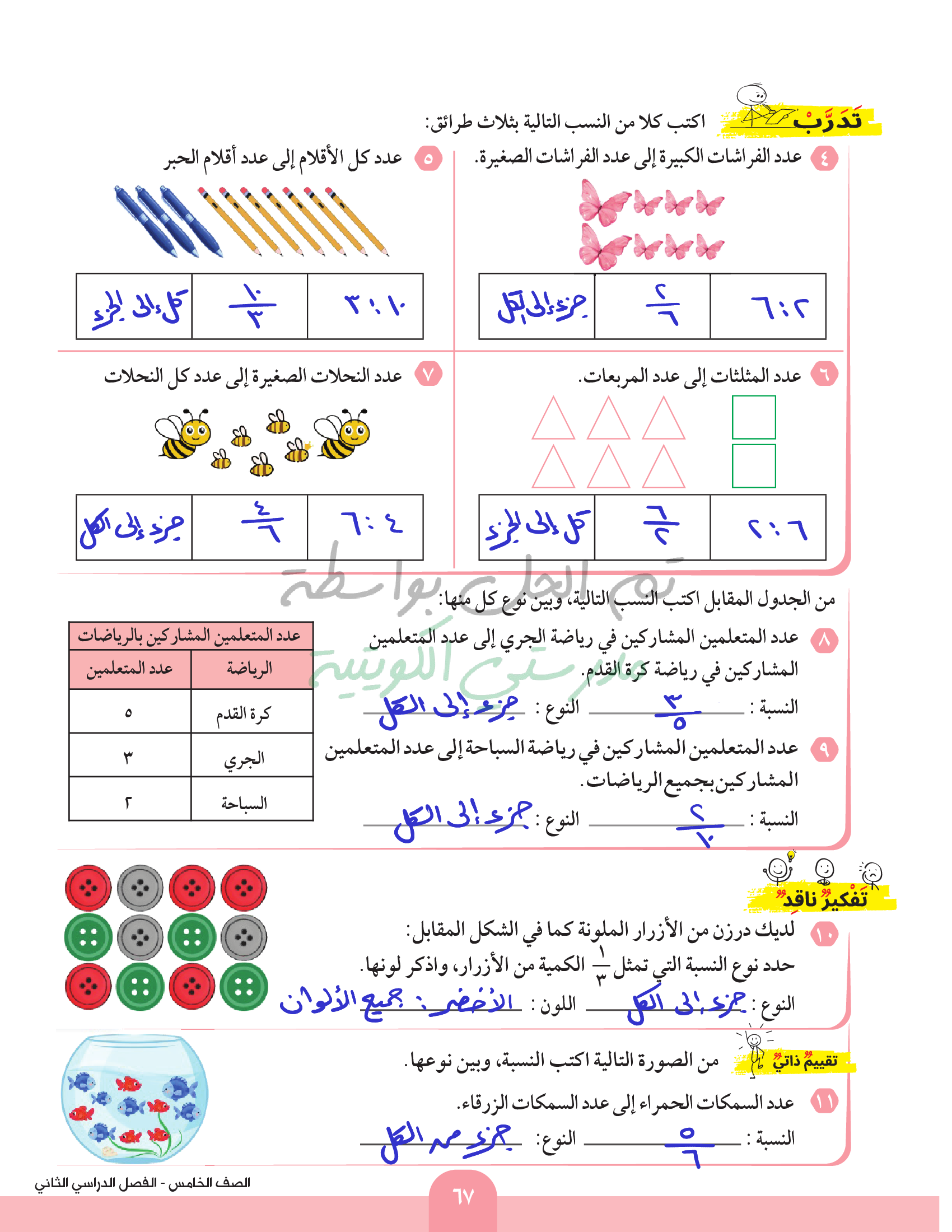 الربط بين الكسور الاعتيادية والكسور العشرية والنسب المئوية
