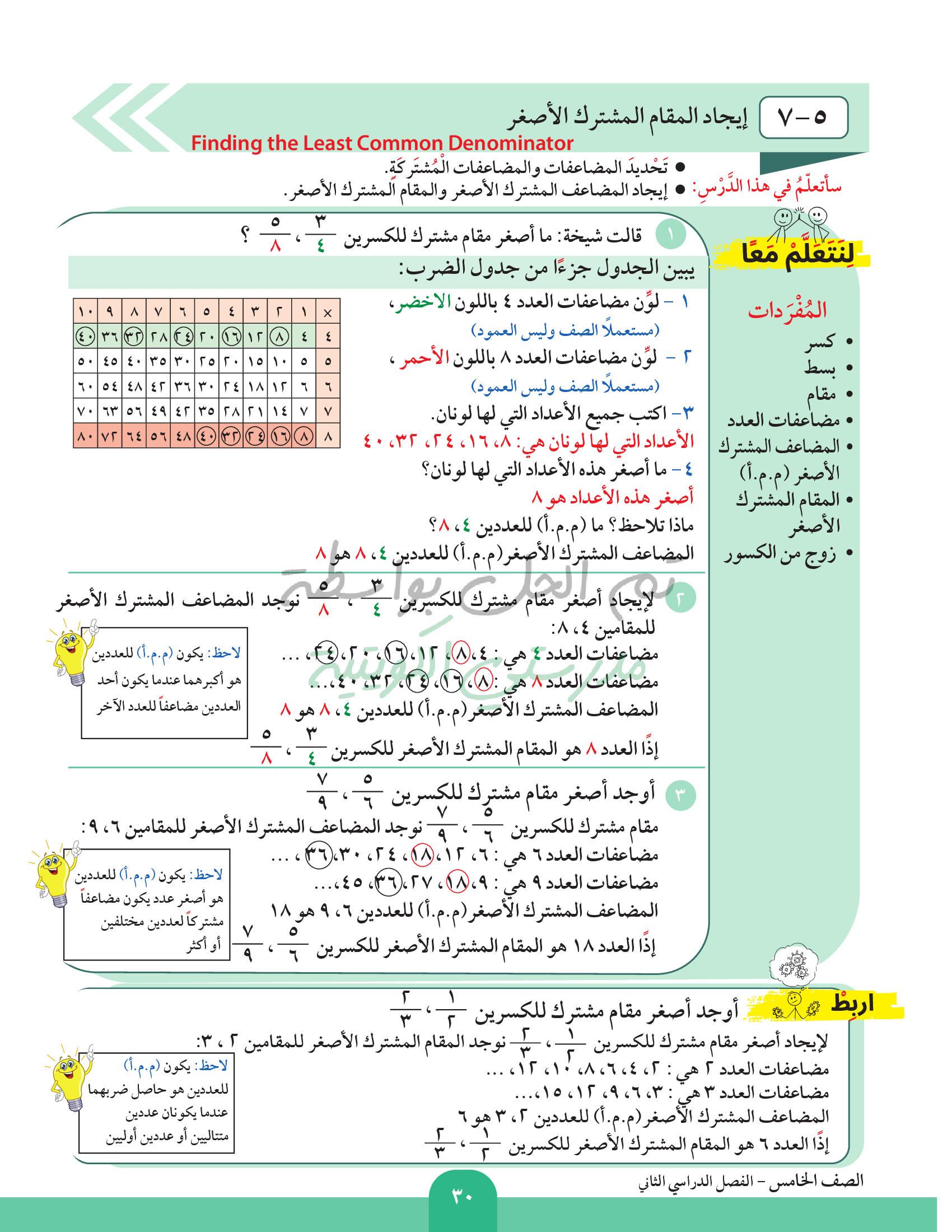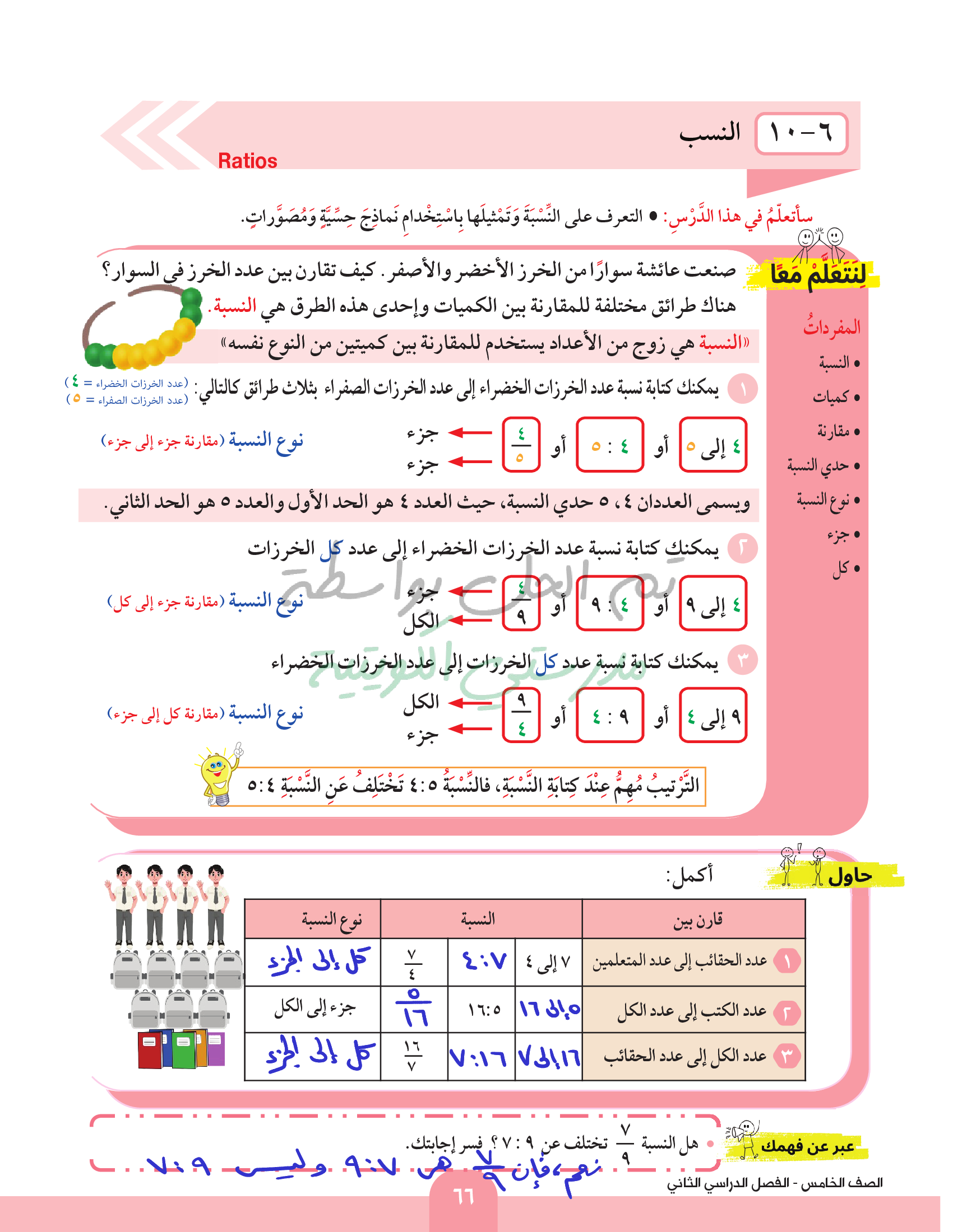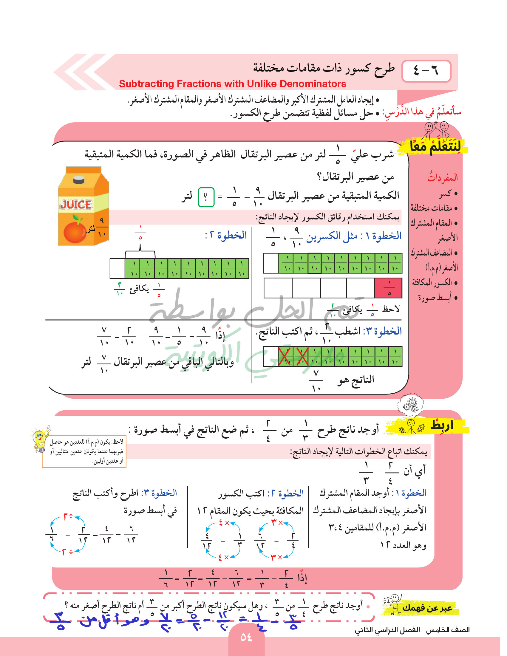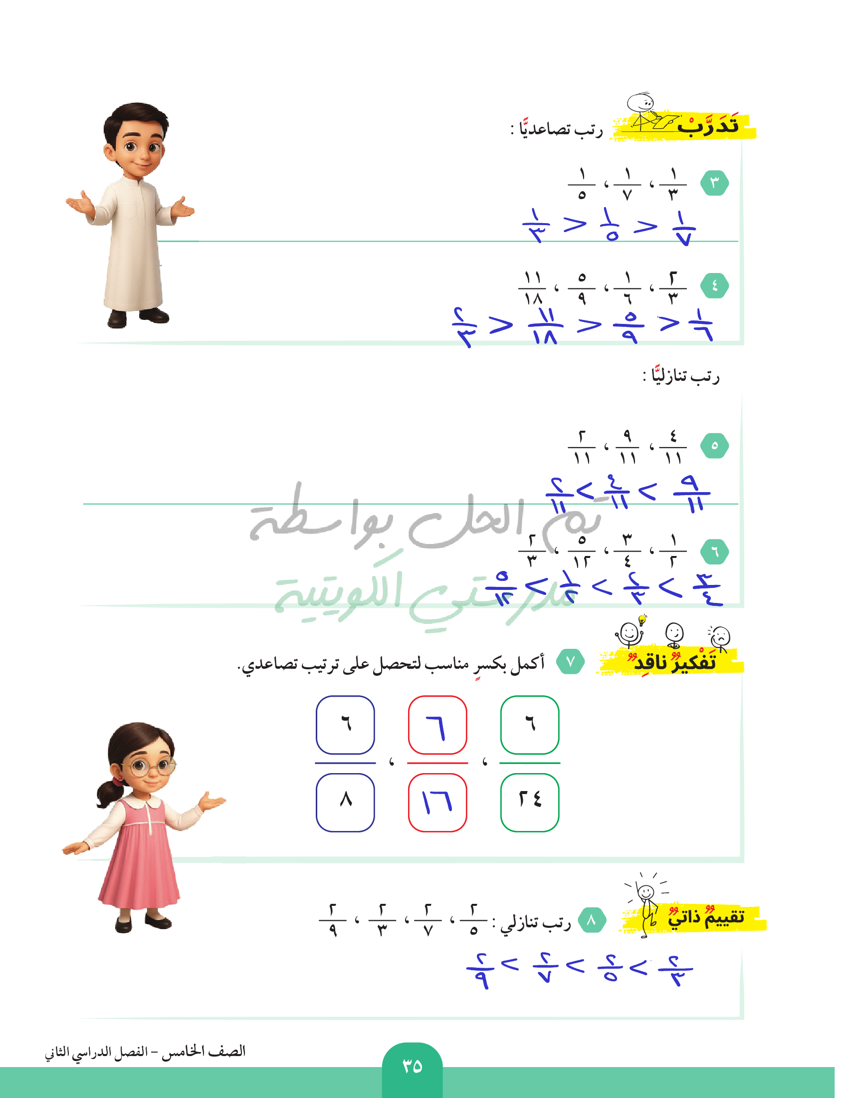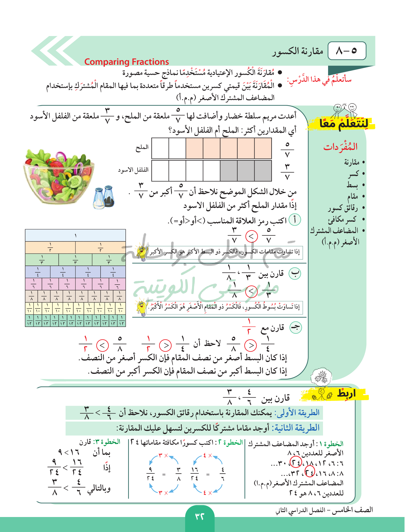 الربط بين الكسور الاعتيادية والكسور العشرية والنسب المئوية