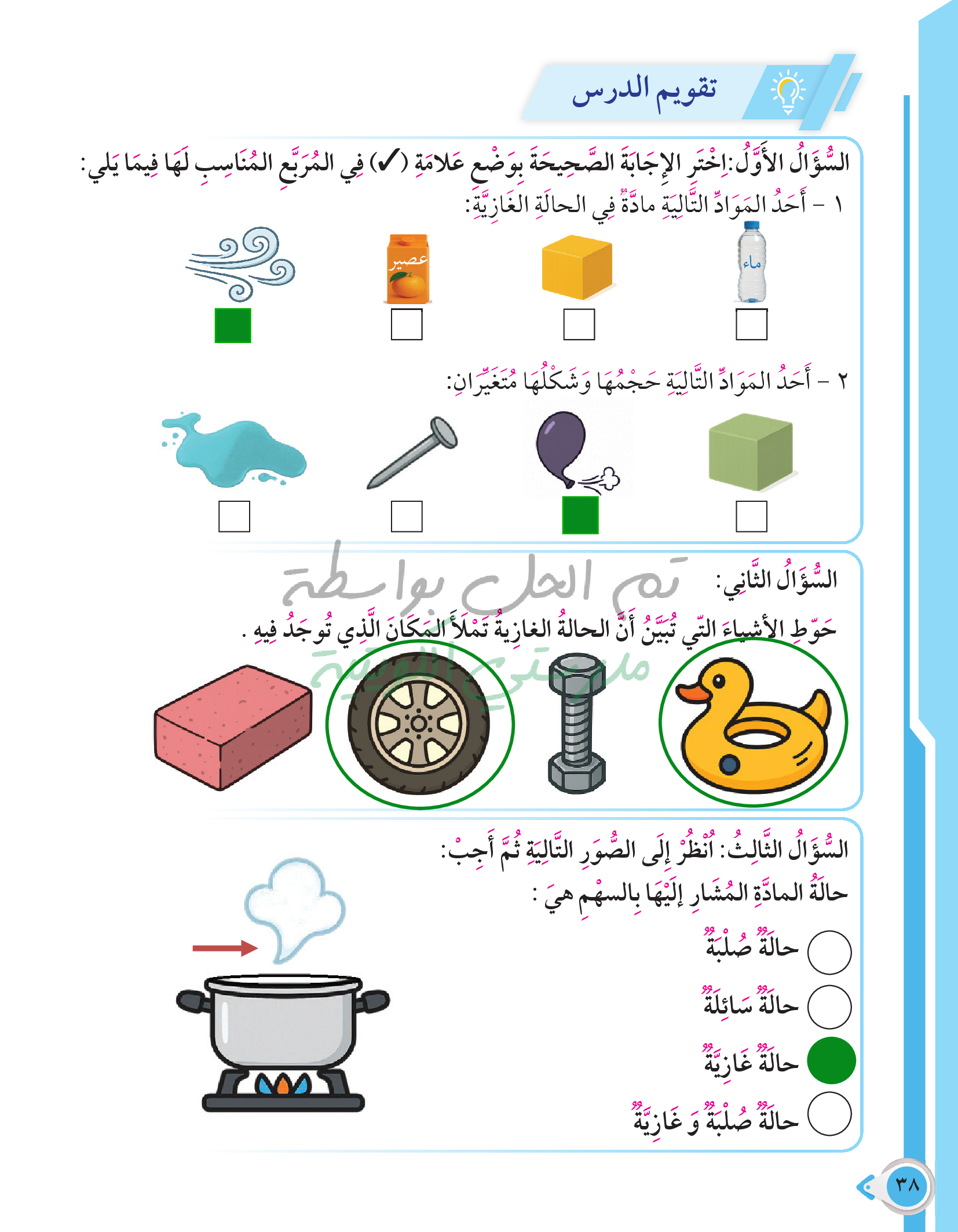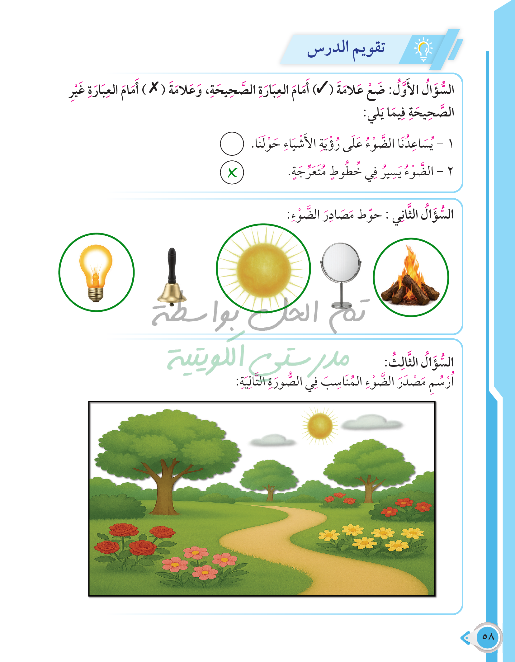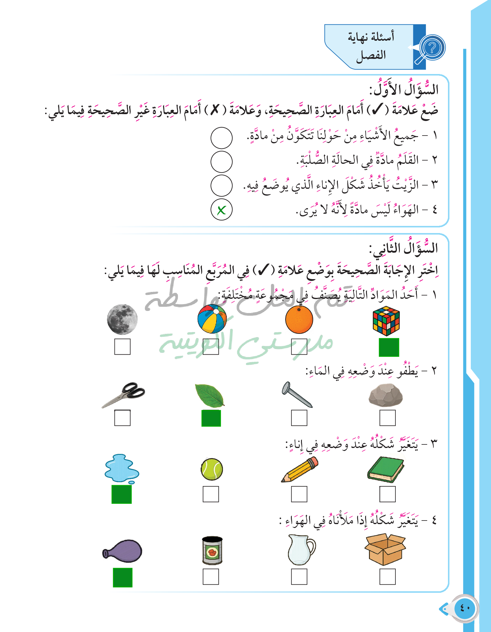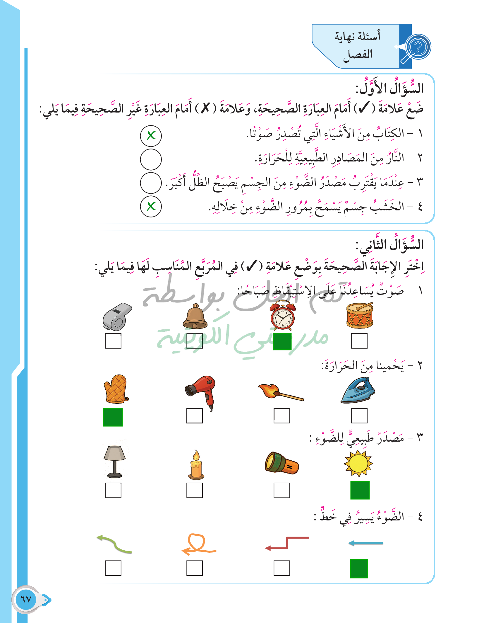 أسئلة نهاية فصل الطاقة من حولنا