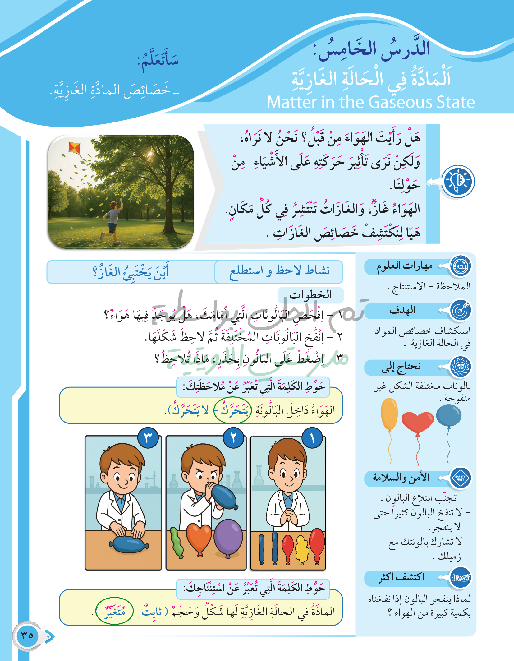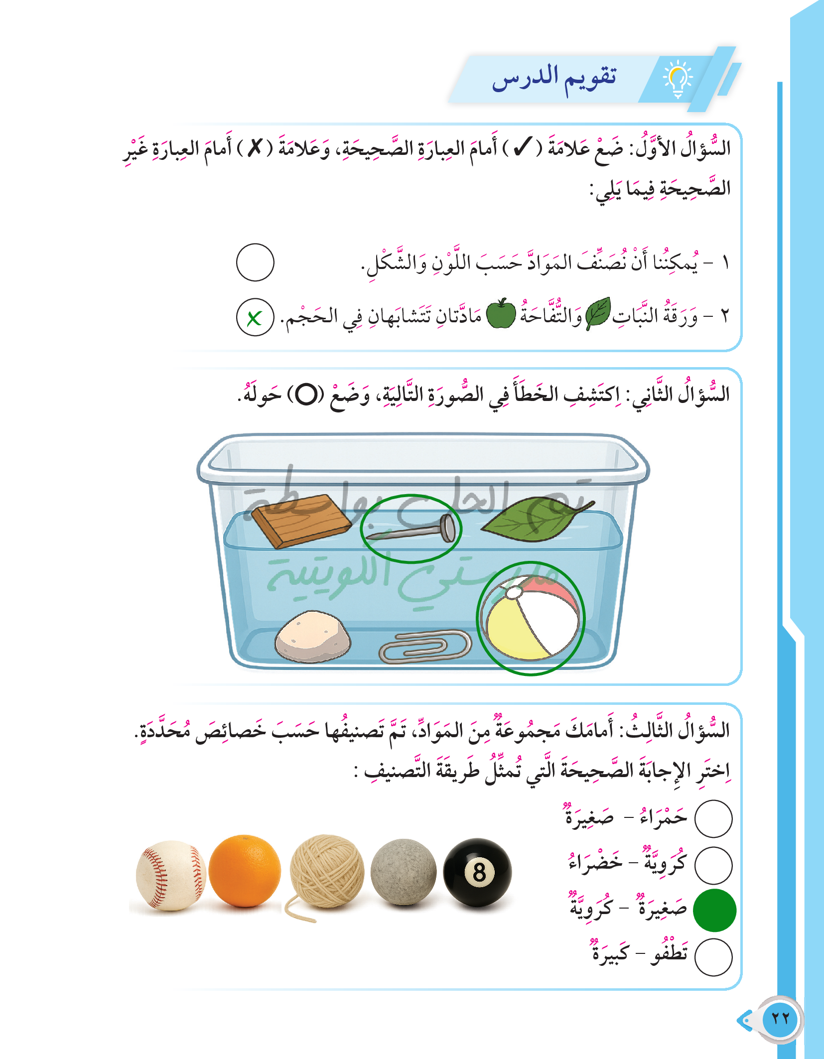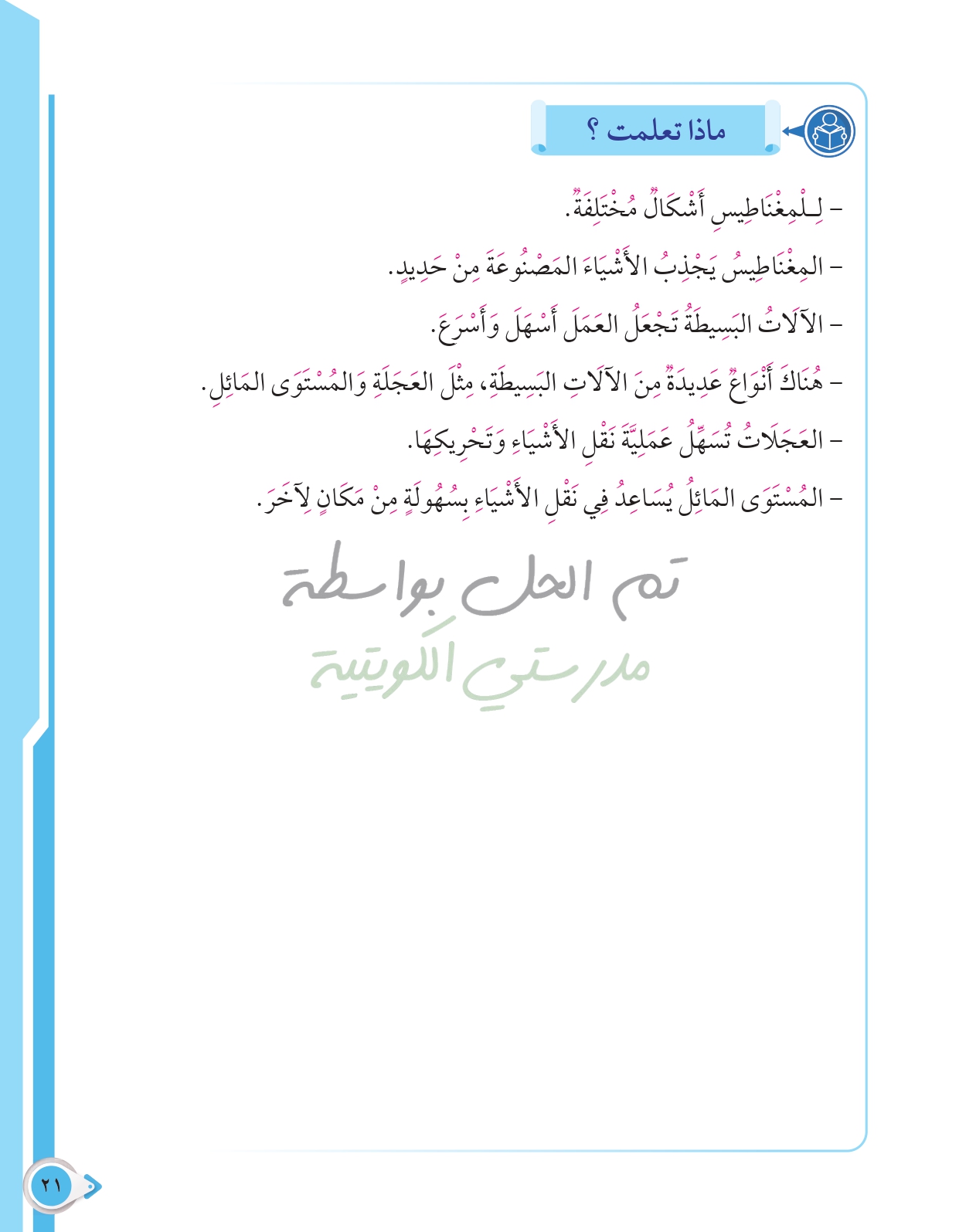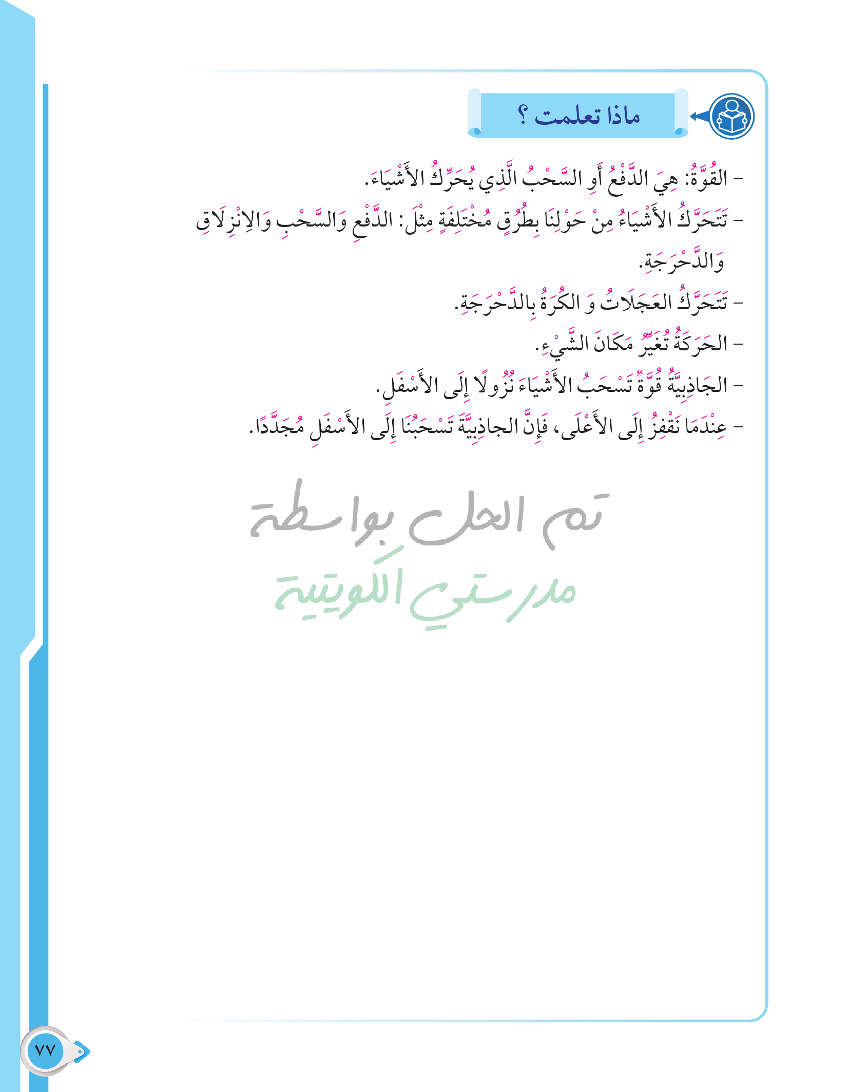 أسئلة نهاية فصل الطاقة من حولنا