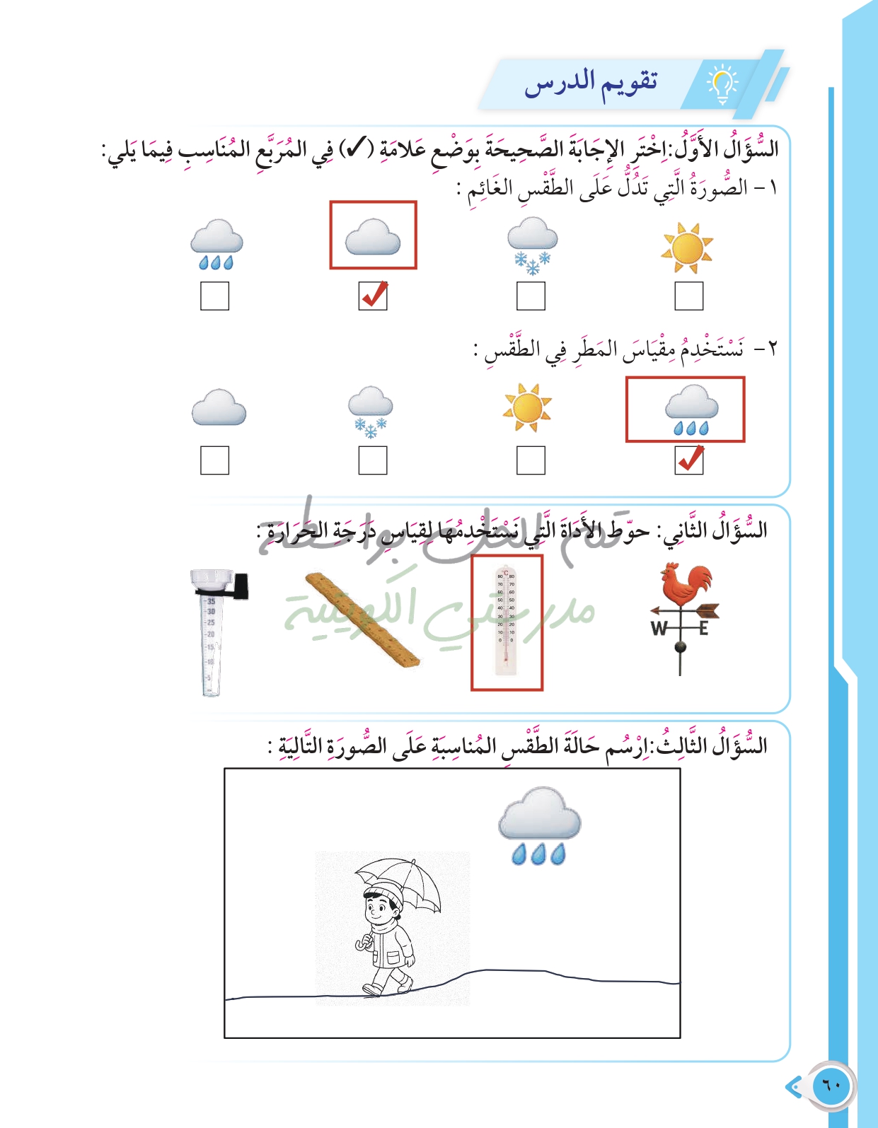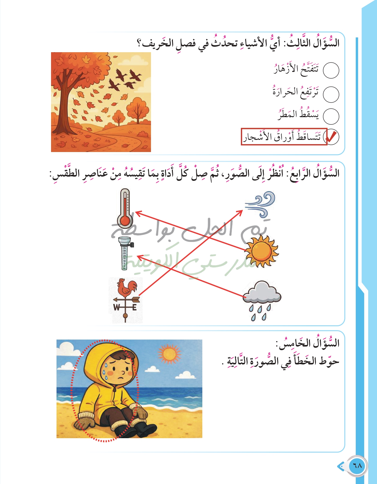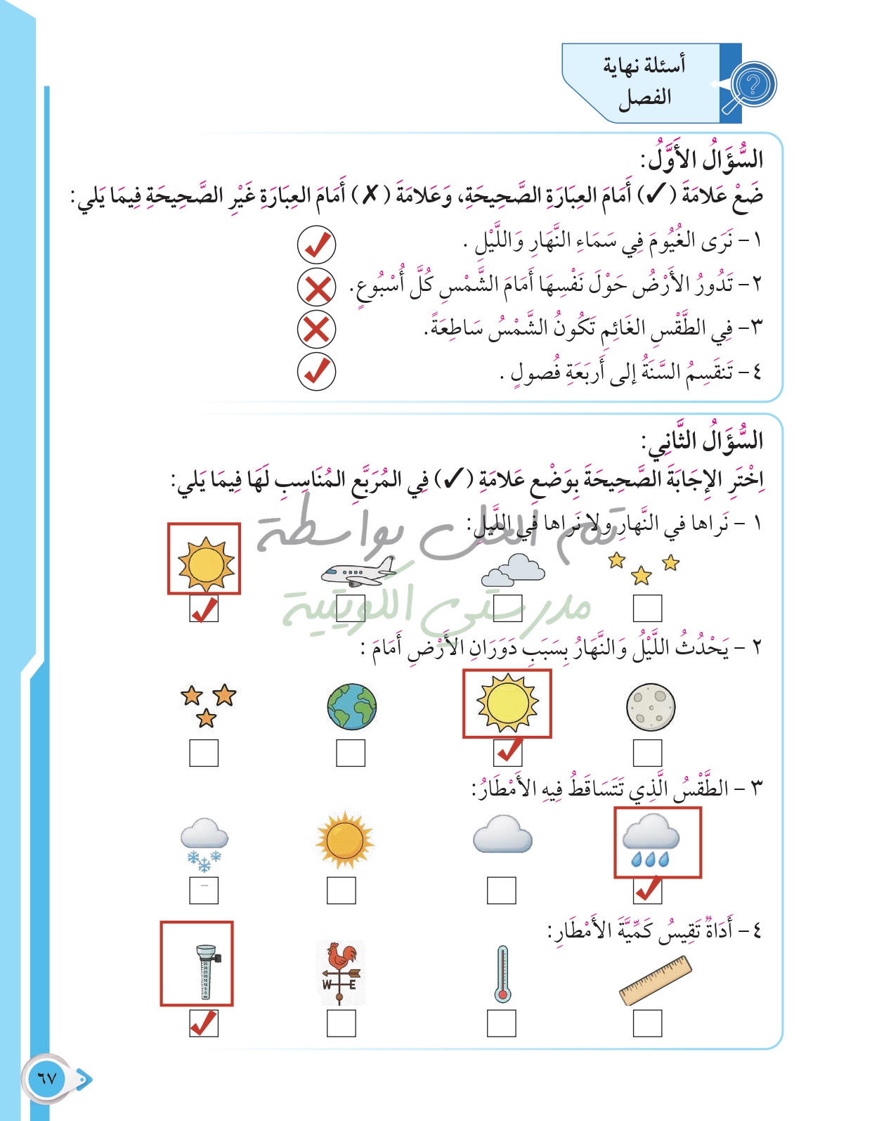أسئلة نهاية فصل الظواهر الطبيعية والطقس