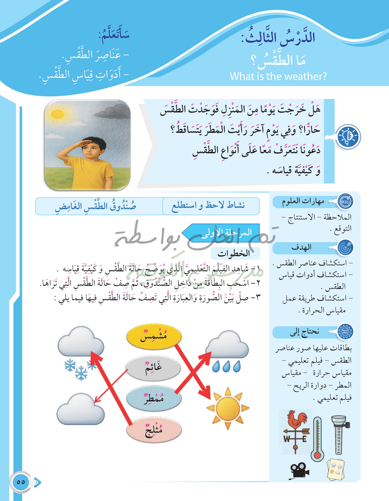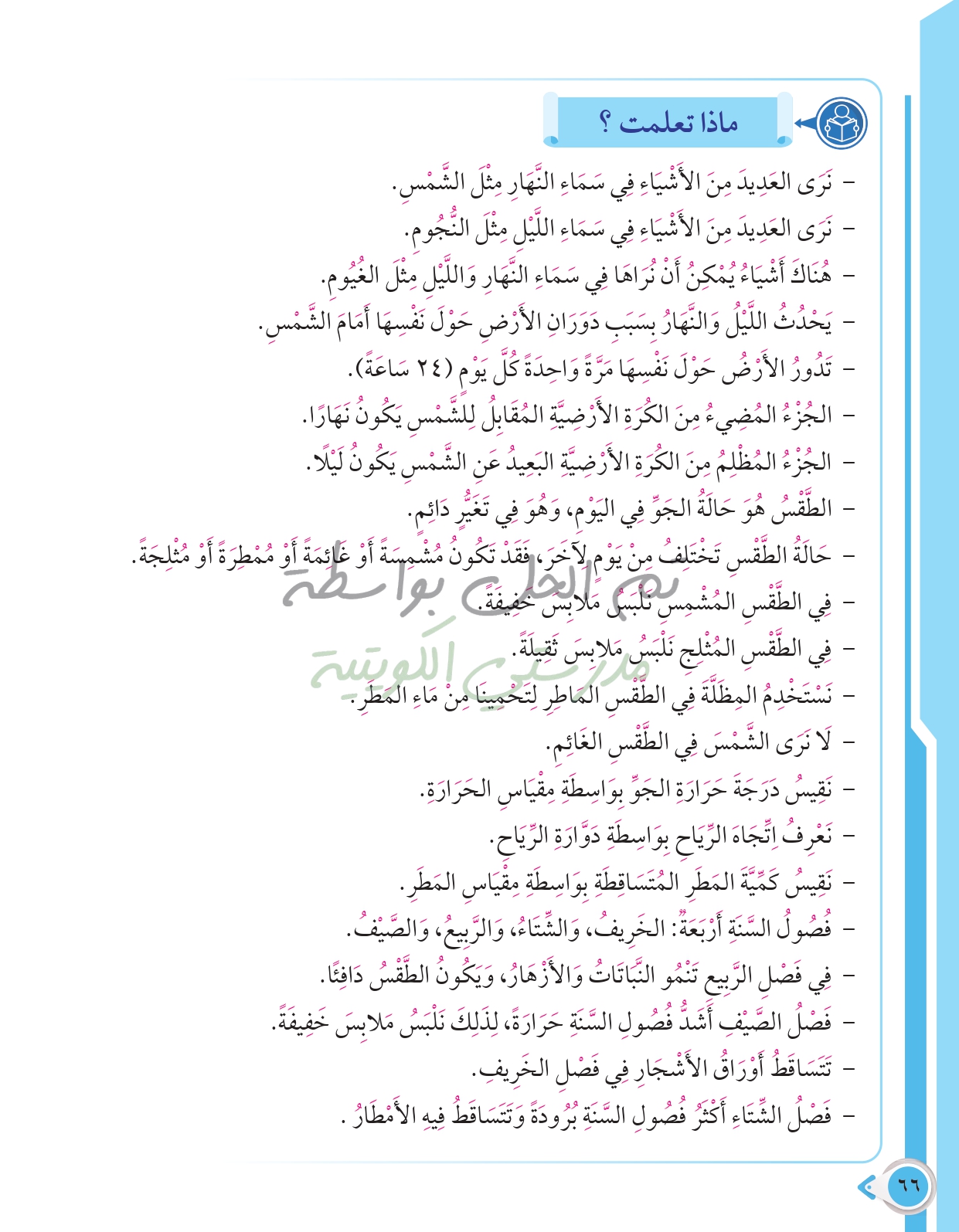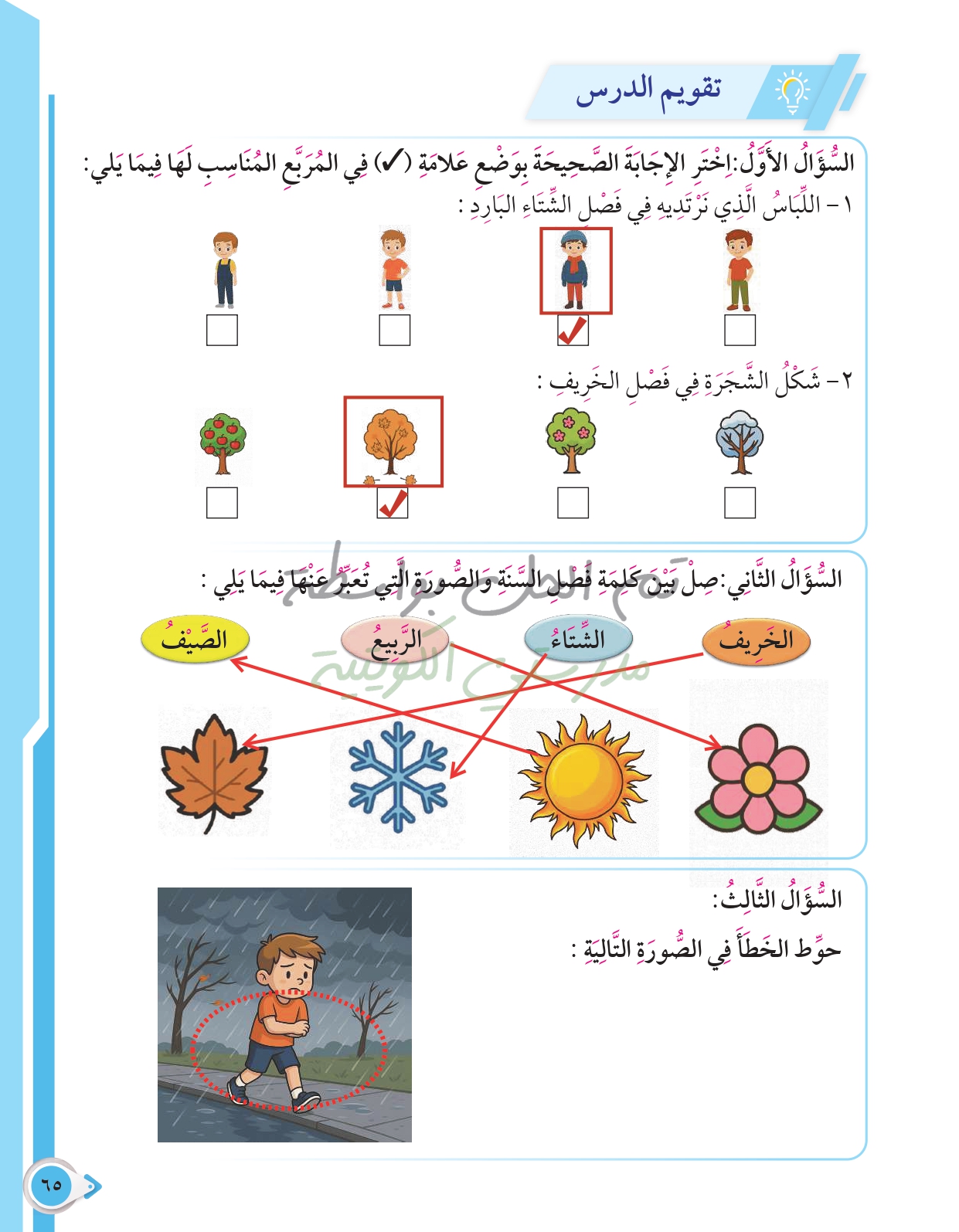 أسئلة نهاية فصل الظواهر الطبيعية والطقس