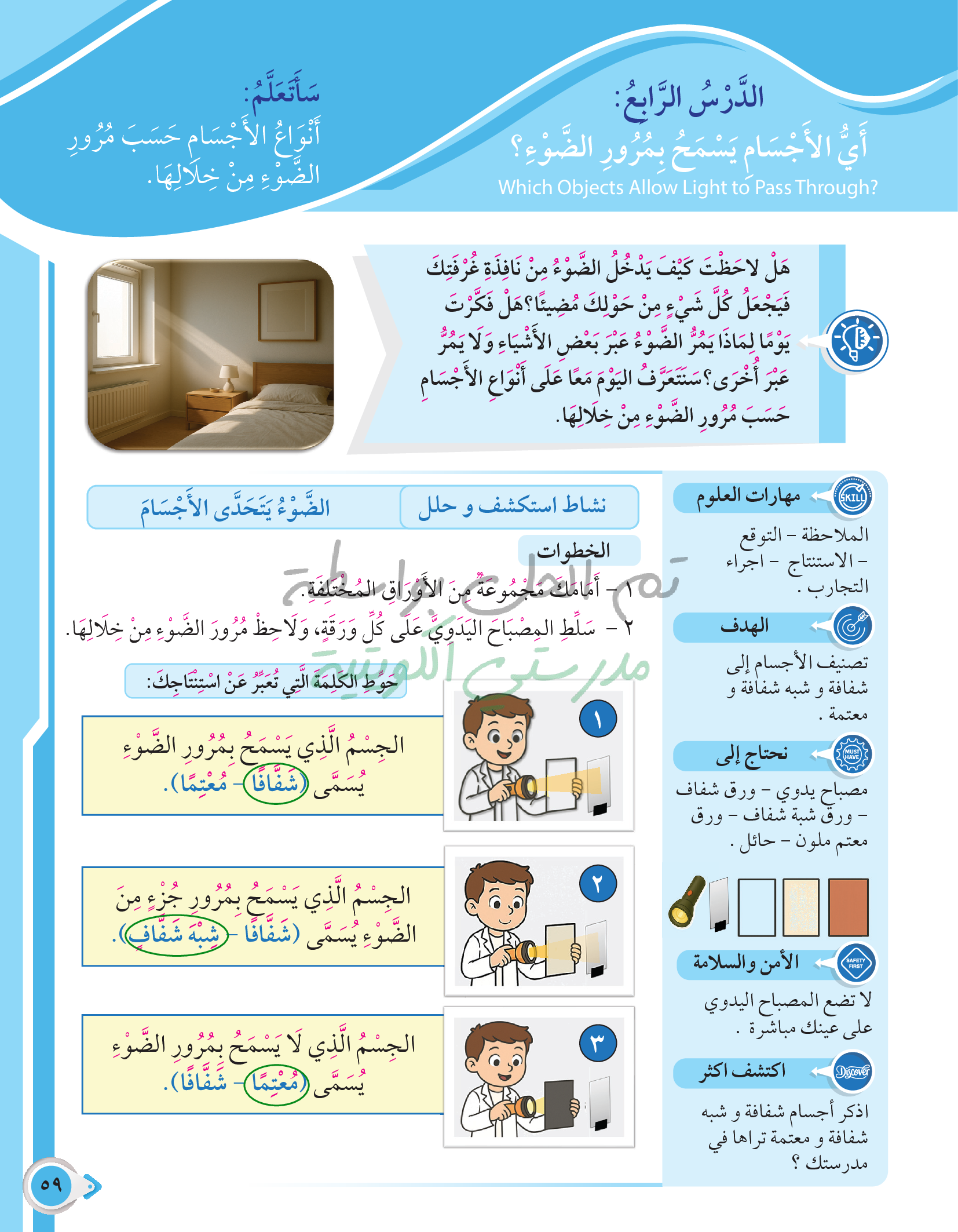 أي الأجسام يسمح بمرور الضوء؟
