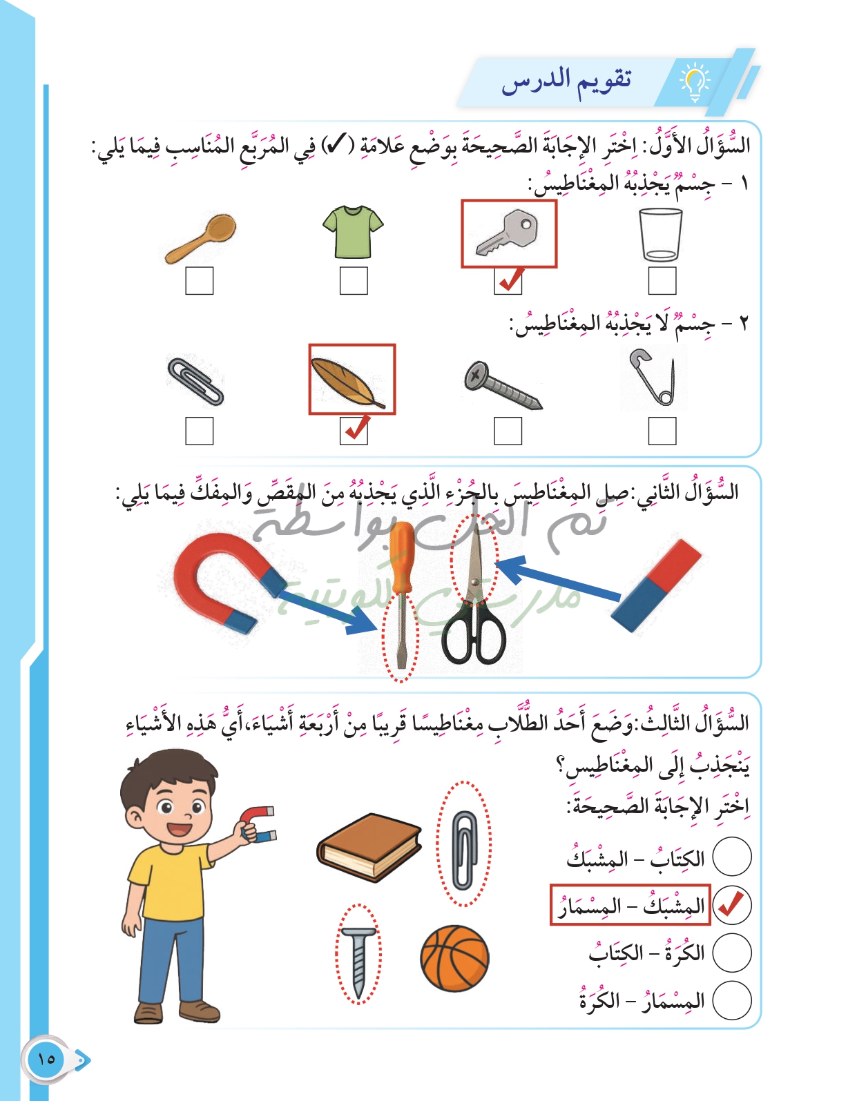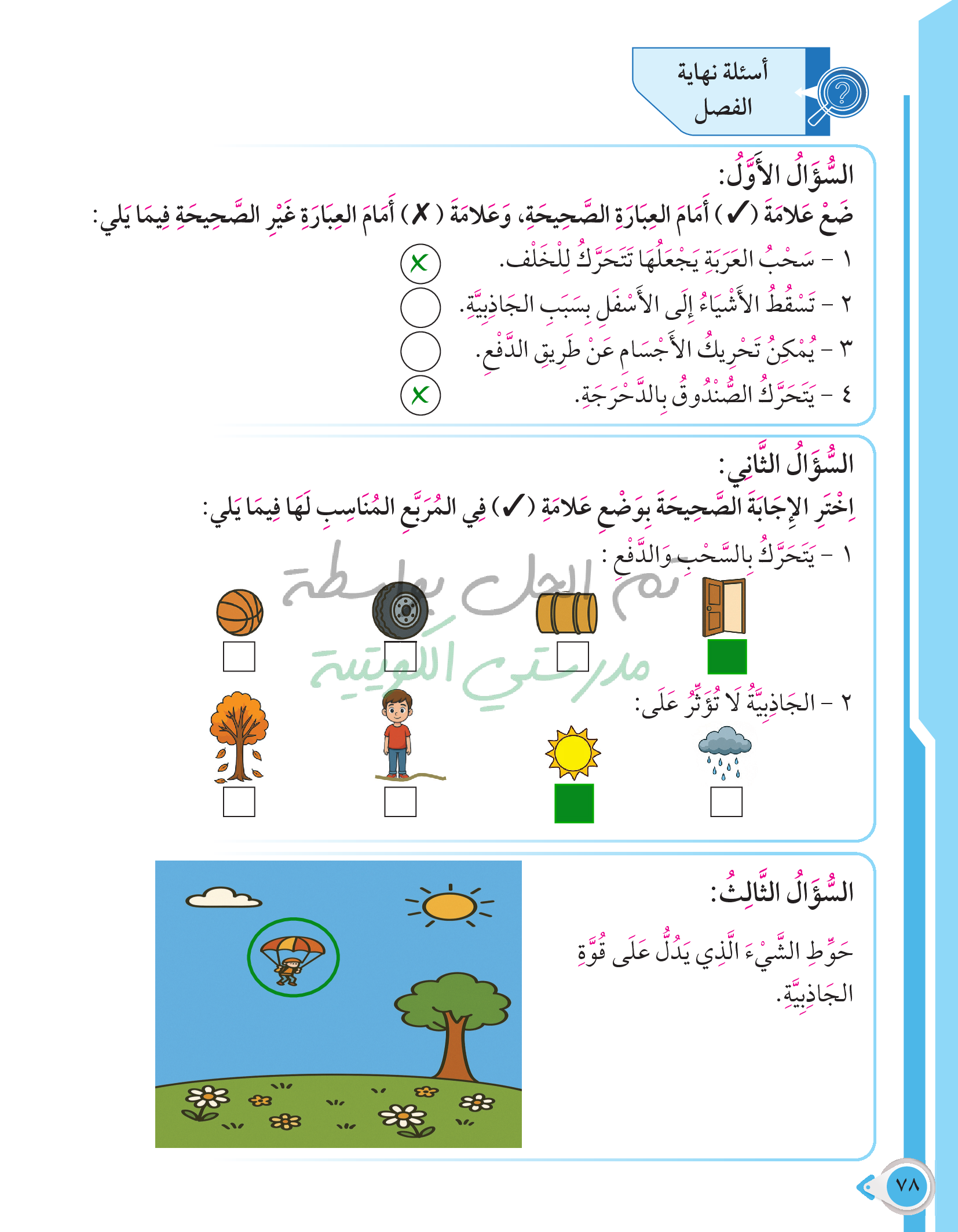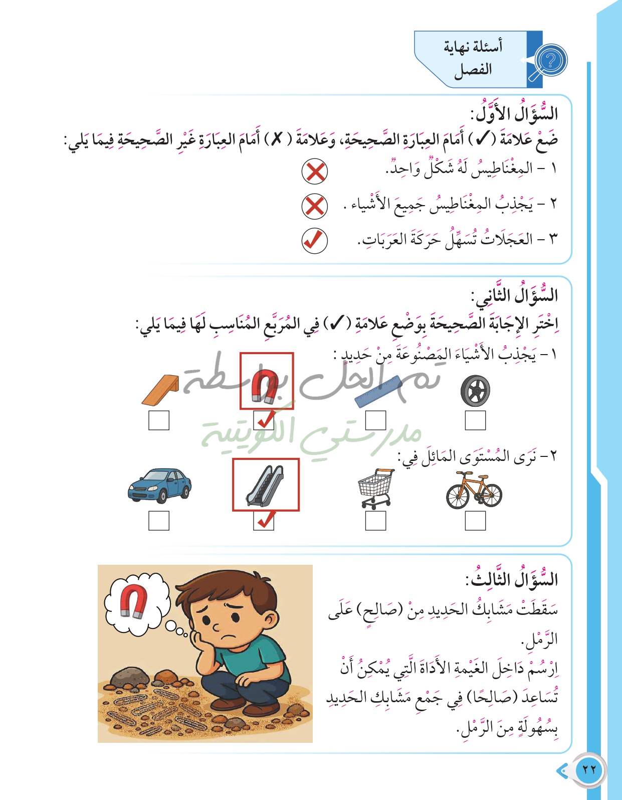 أسئلة نهاية فصل القوى والحركة والمغناطيس