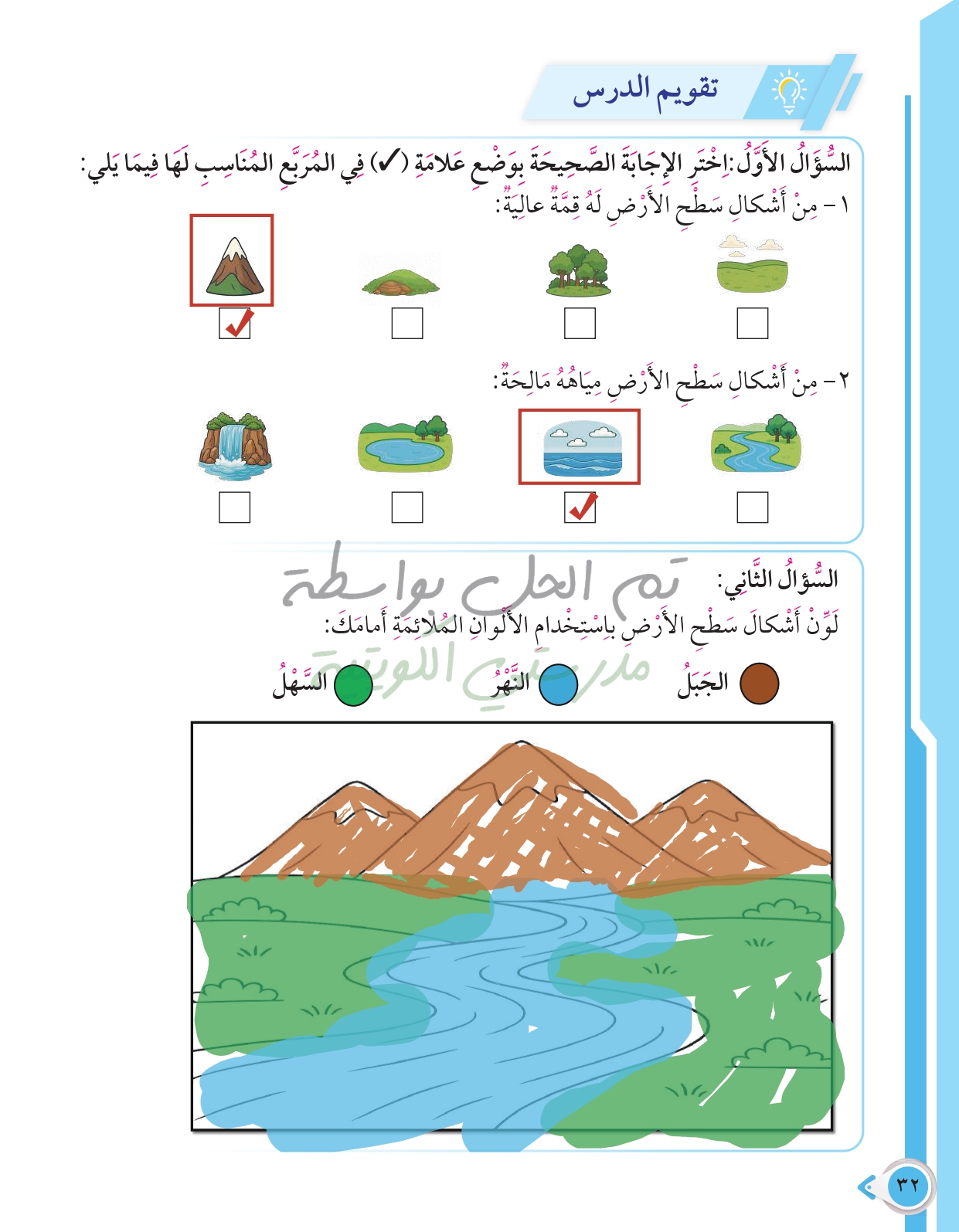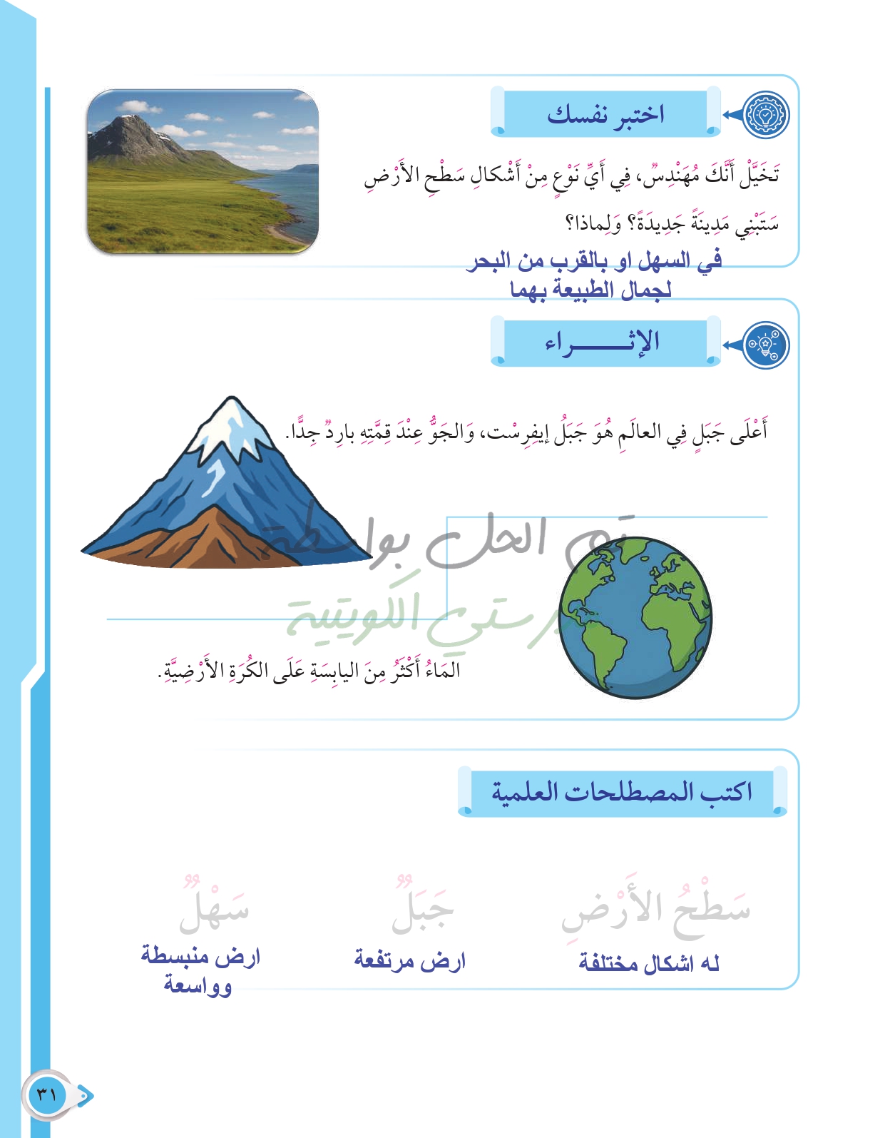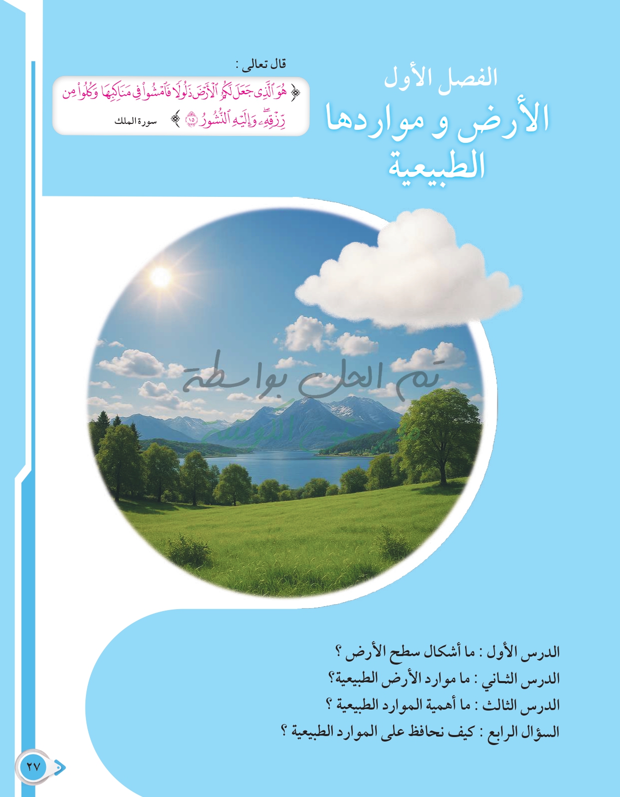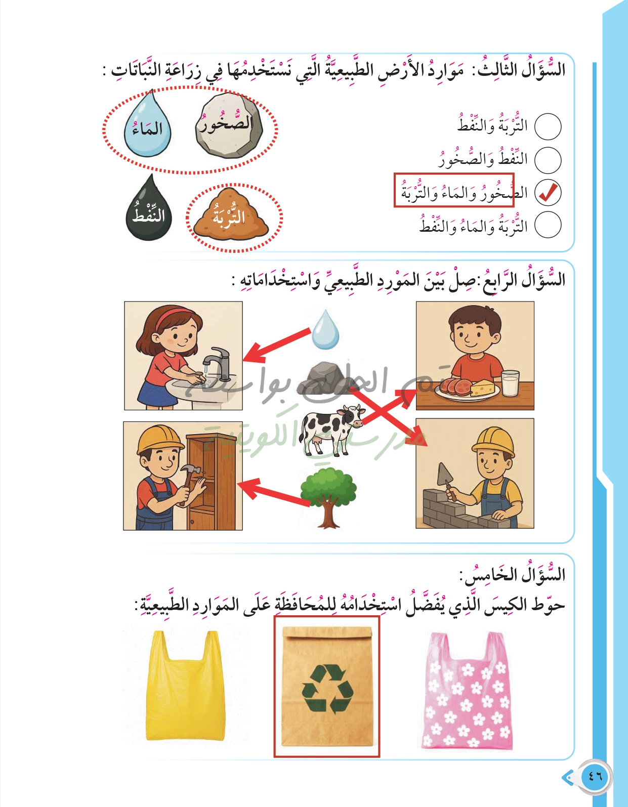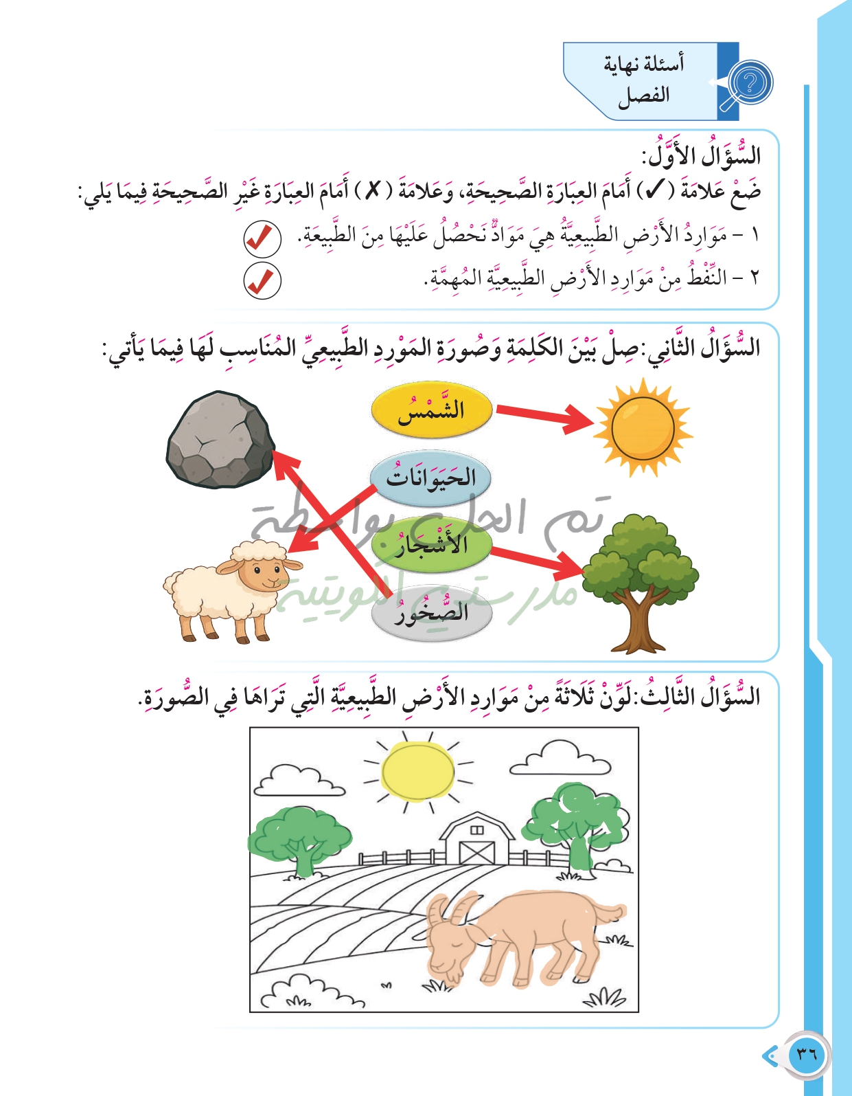 أسئلة نهاية فصل الأرض ومواردها الطبيعية