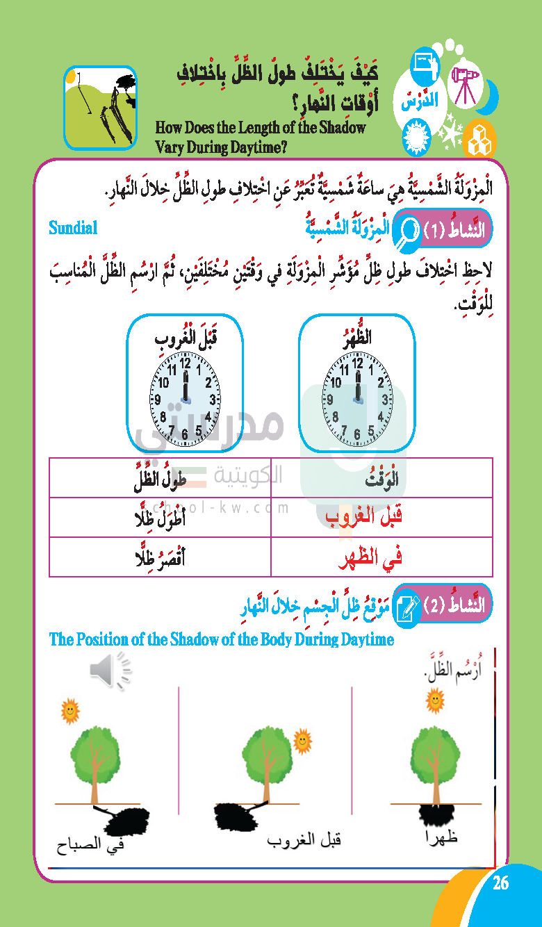 كيف يختلف طول الظل باختلاف أوقات النهار؟