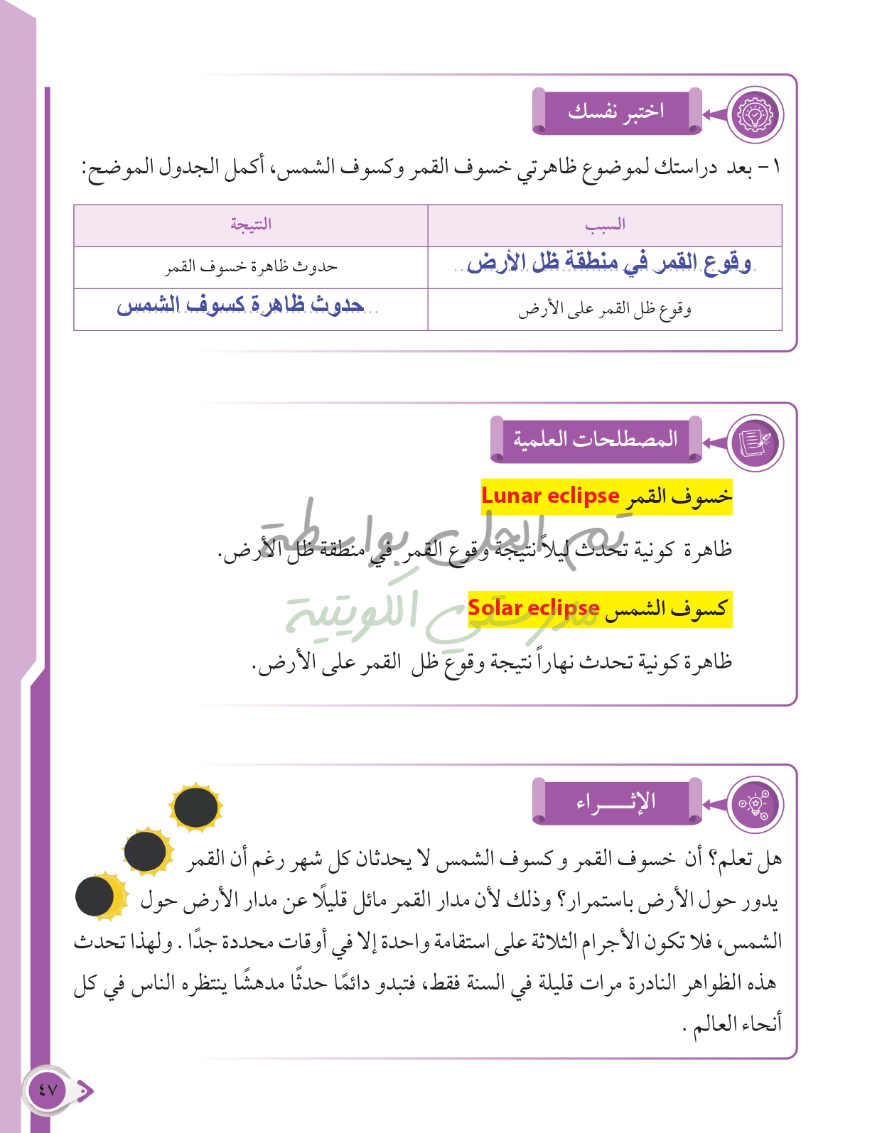 كيف تحدث ظاهرتي الخسوف والكسوف؟