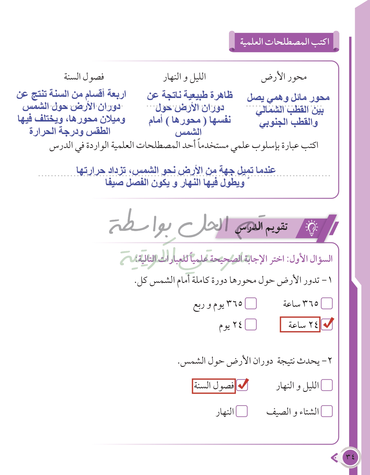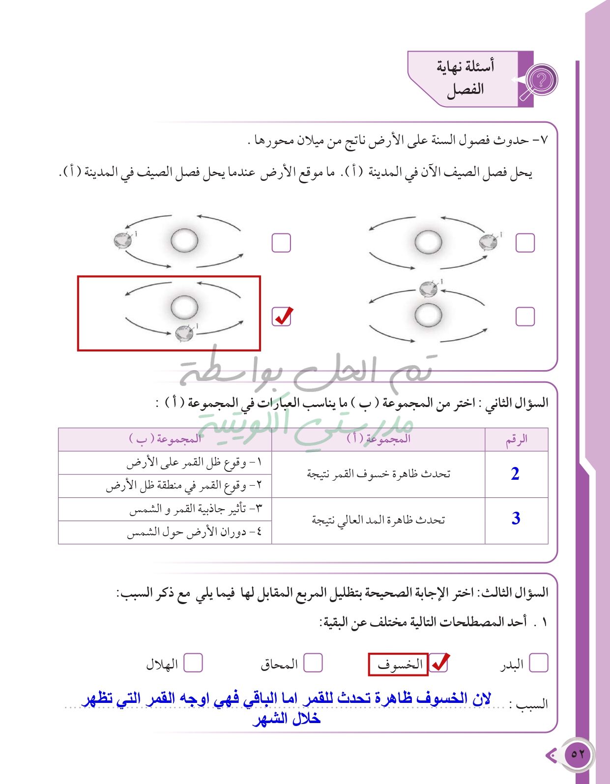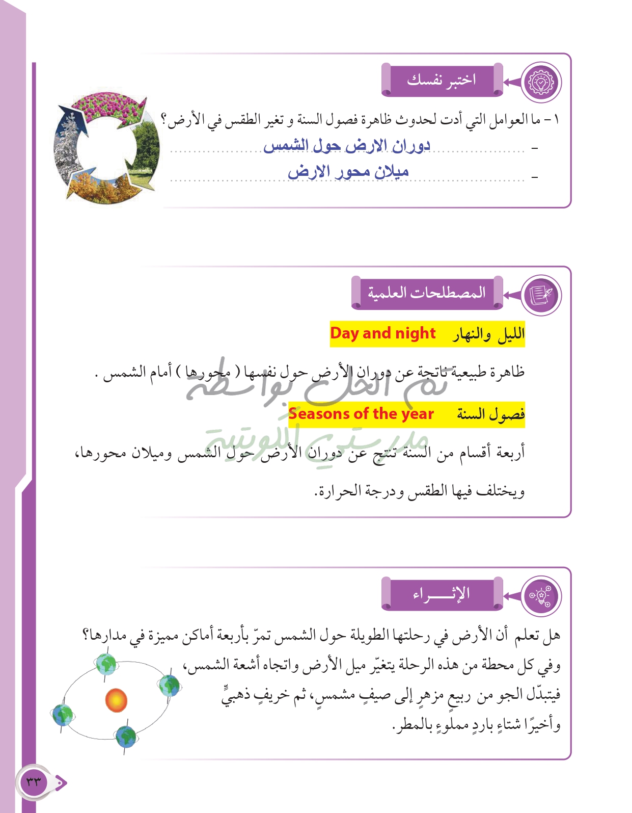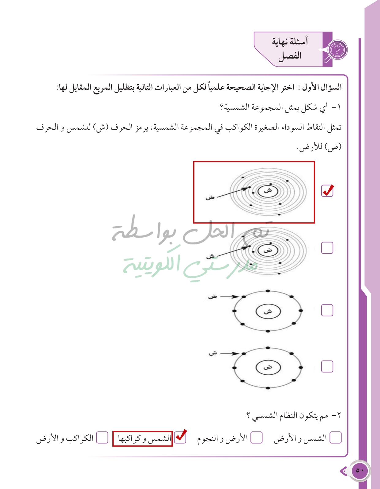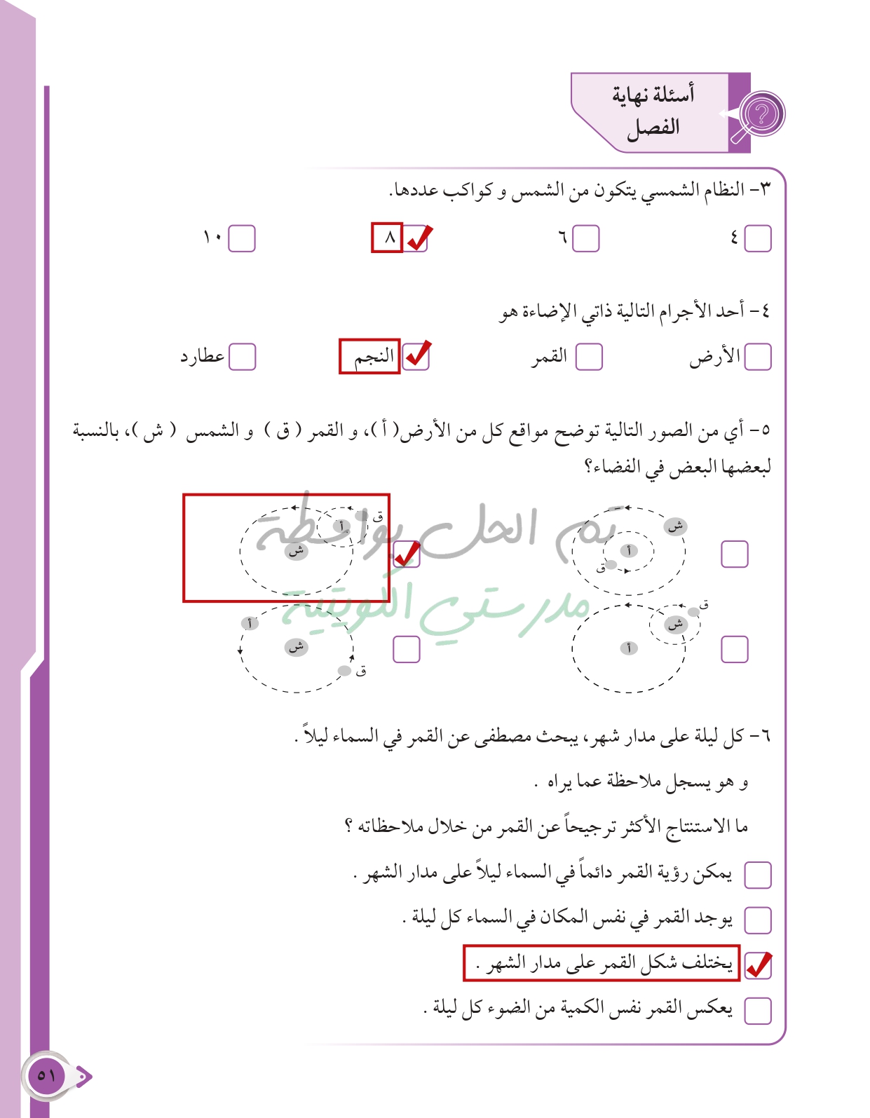 أسئلة نهاية فصل الطاقة من حولنا