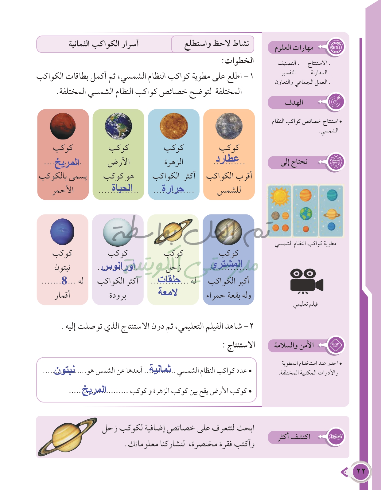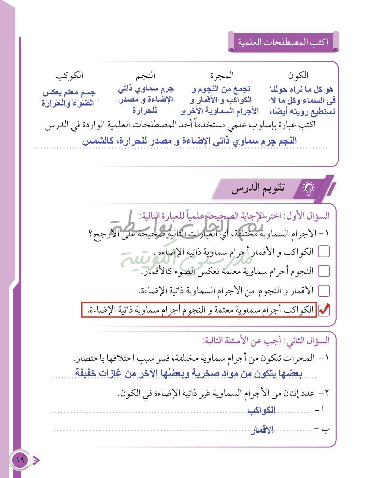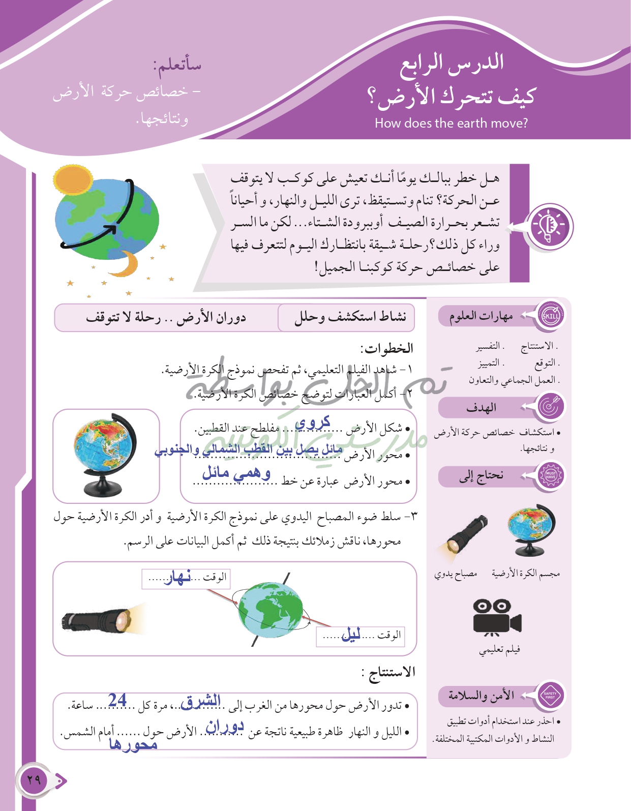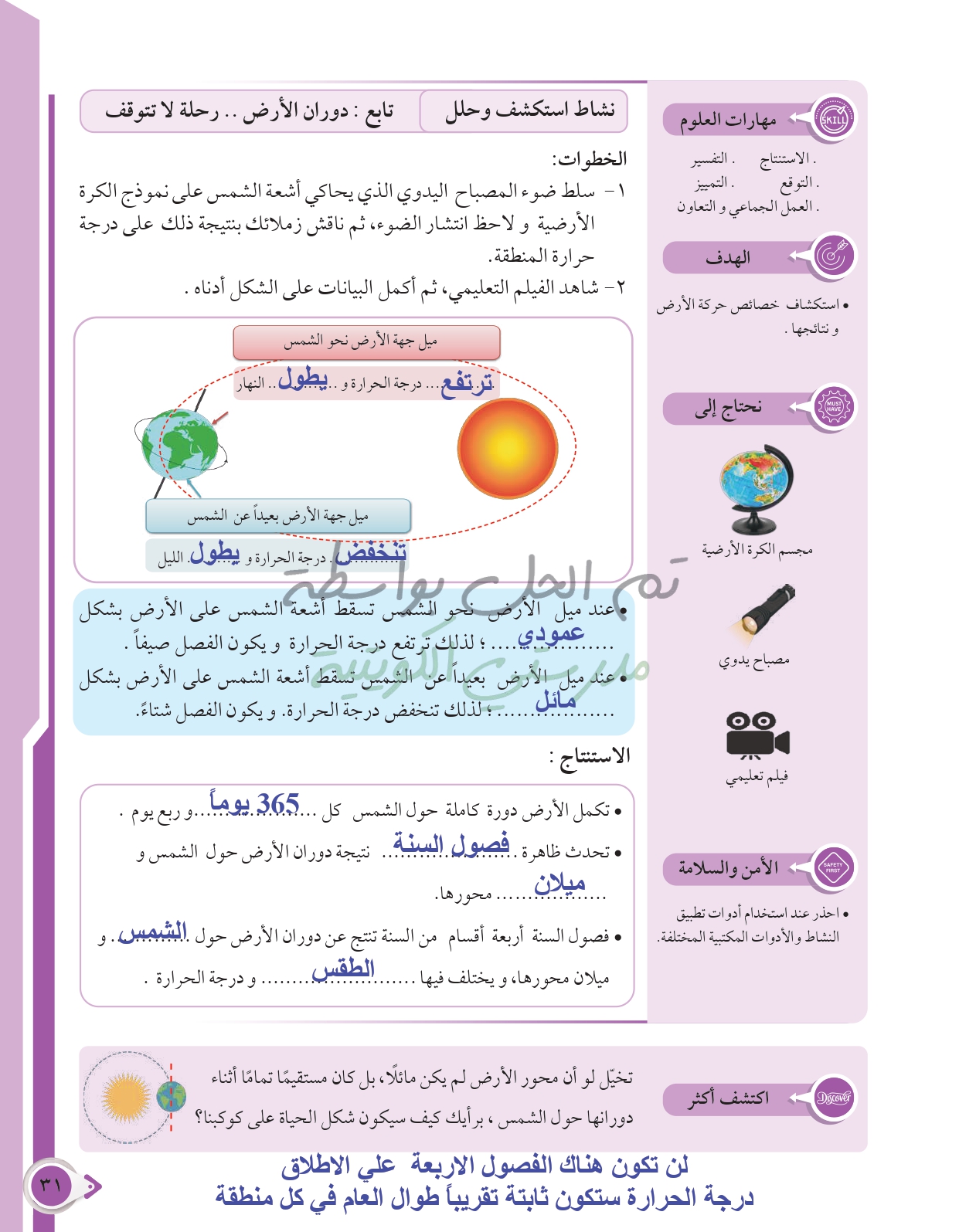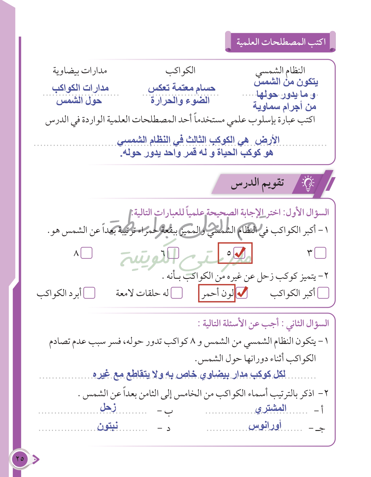 أسئلة نهاية فصل الطاقة من حولنا