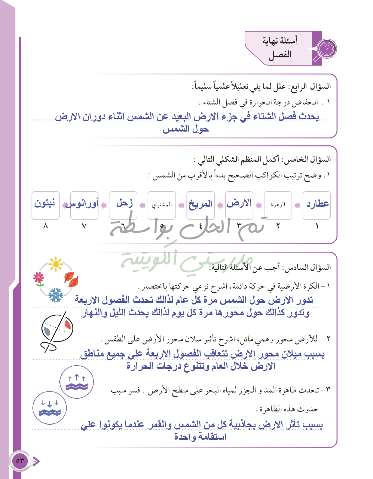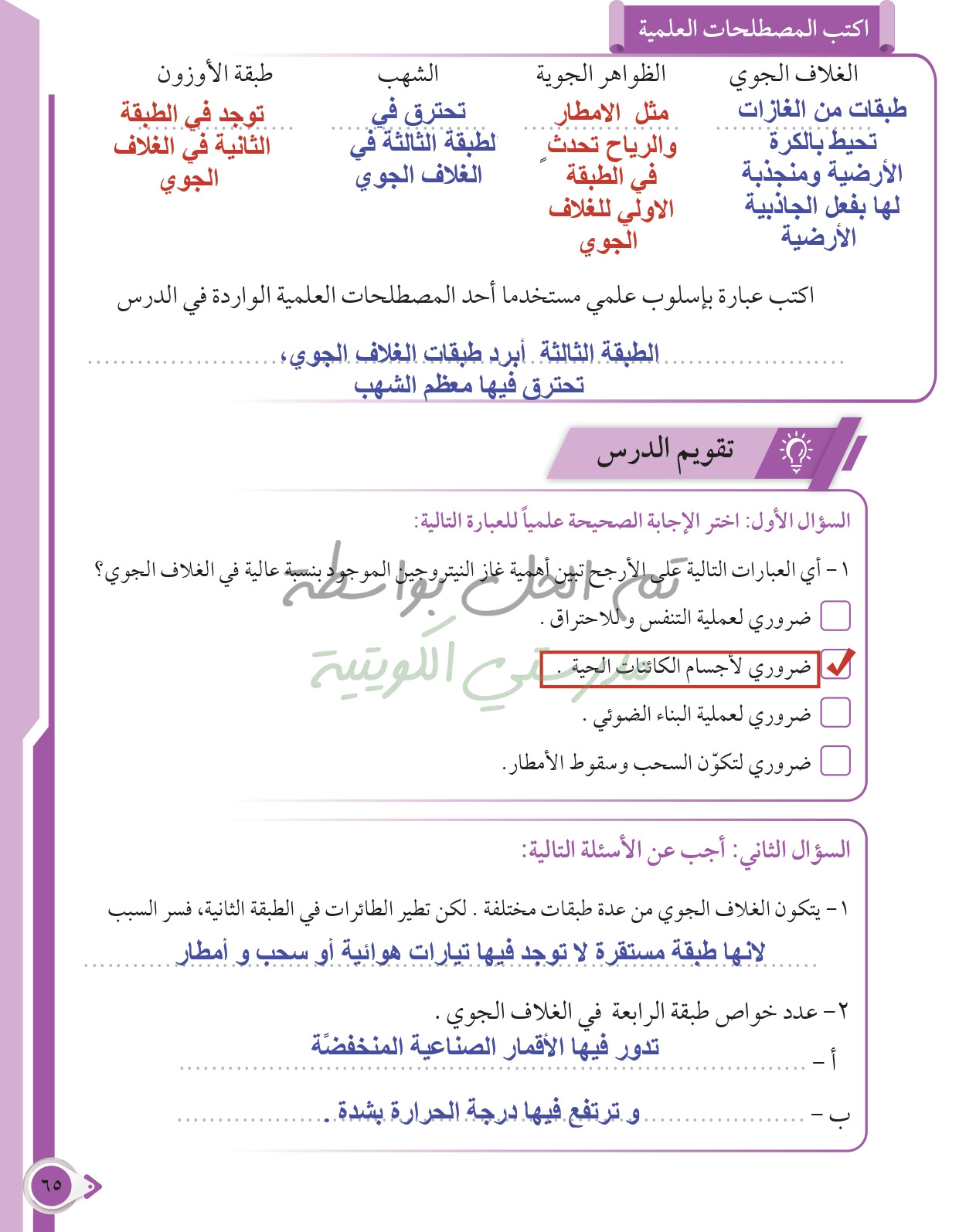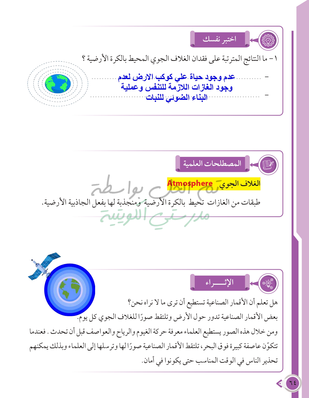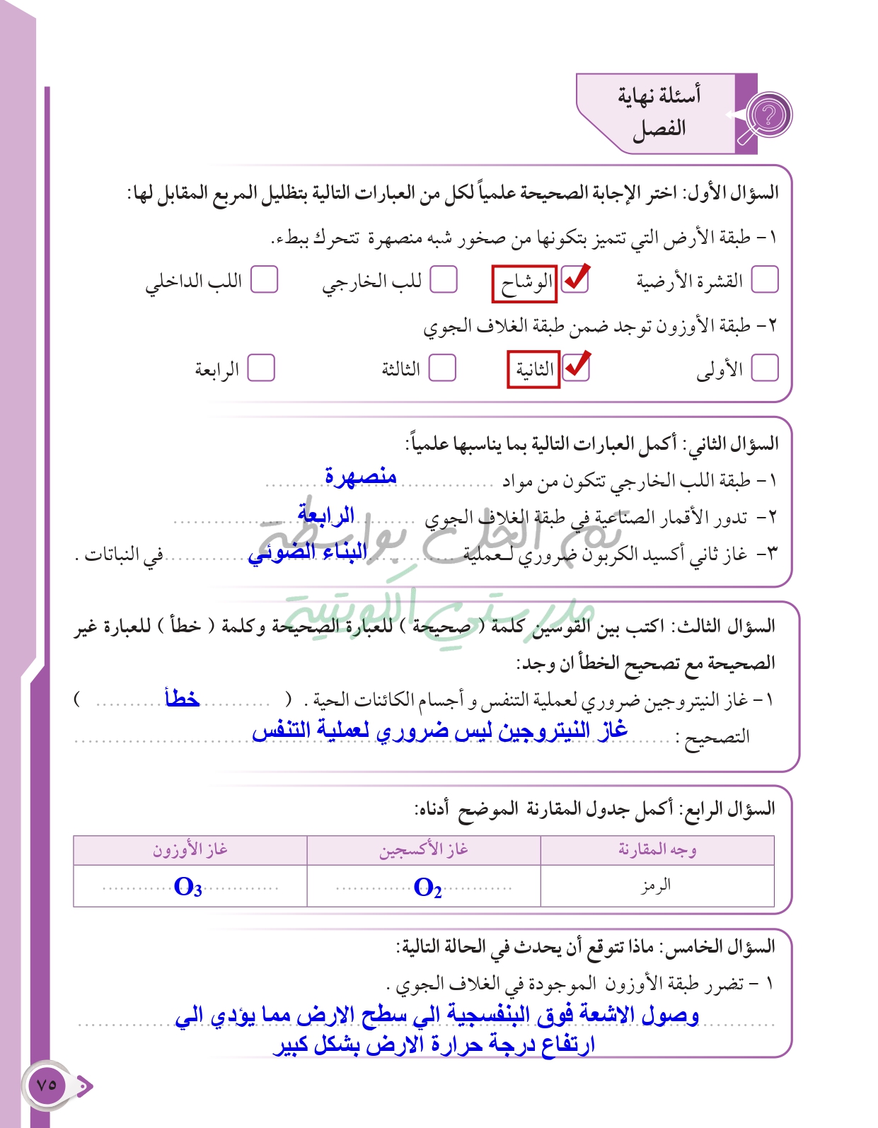 أسئلة نهاية فصل الأرض والغلاف الجوي