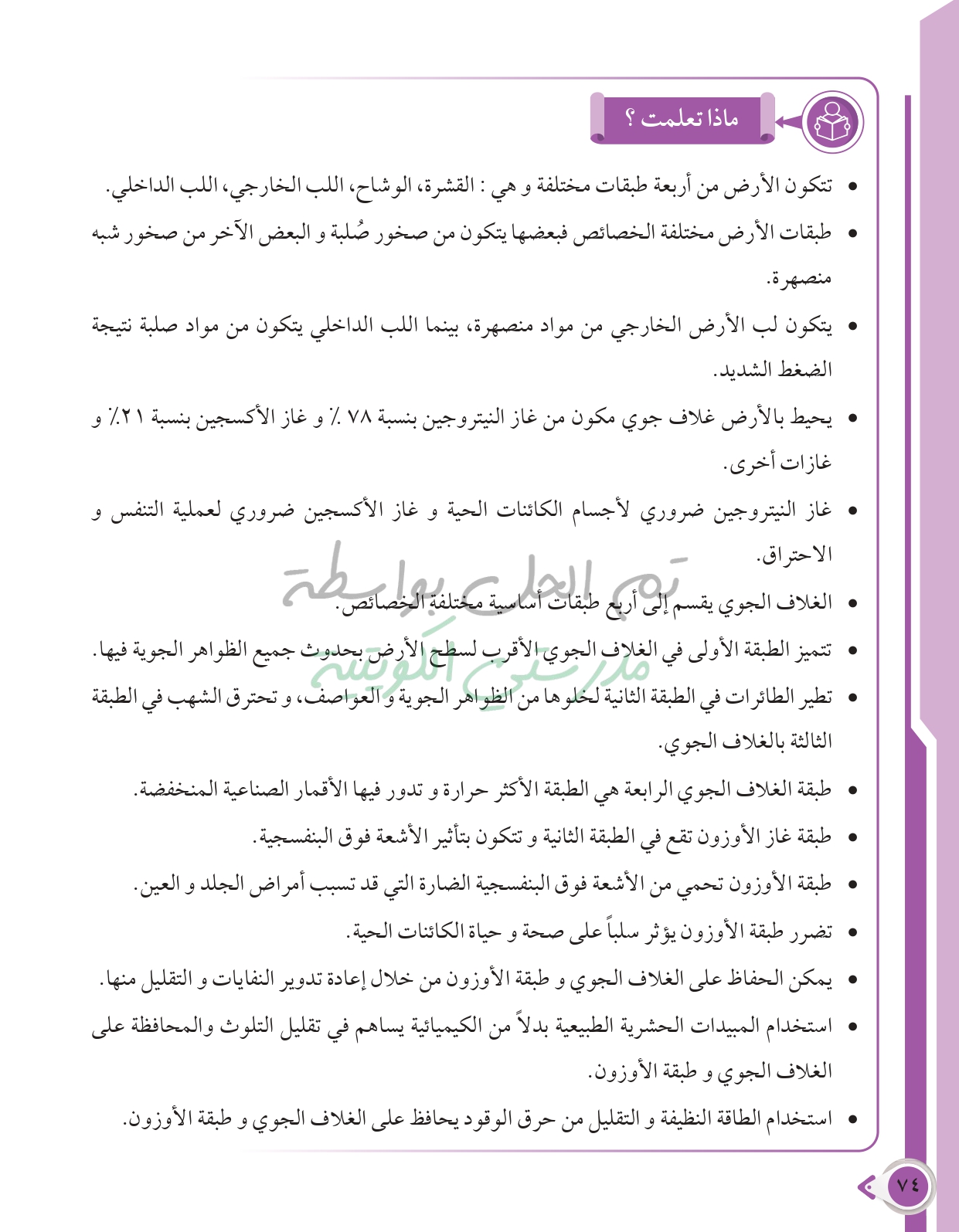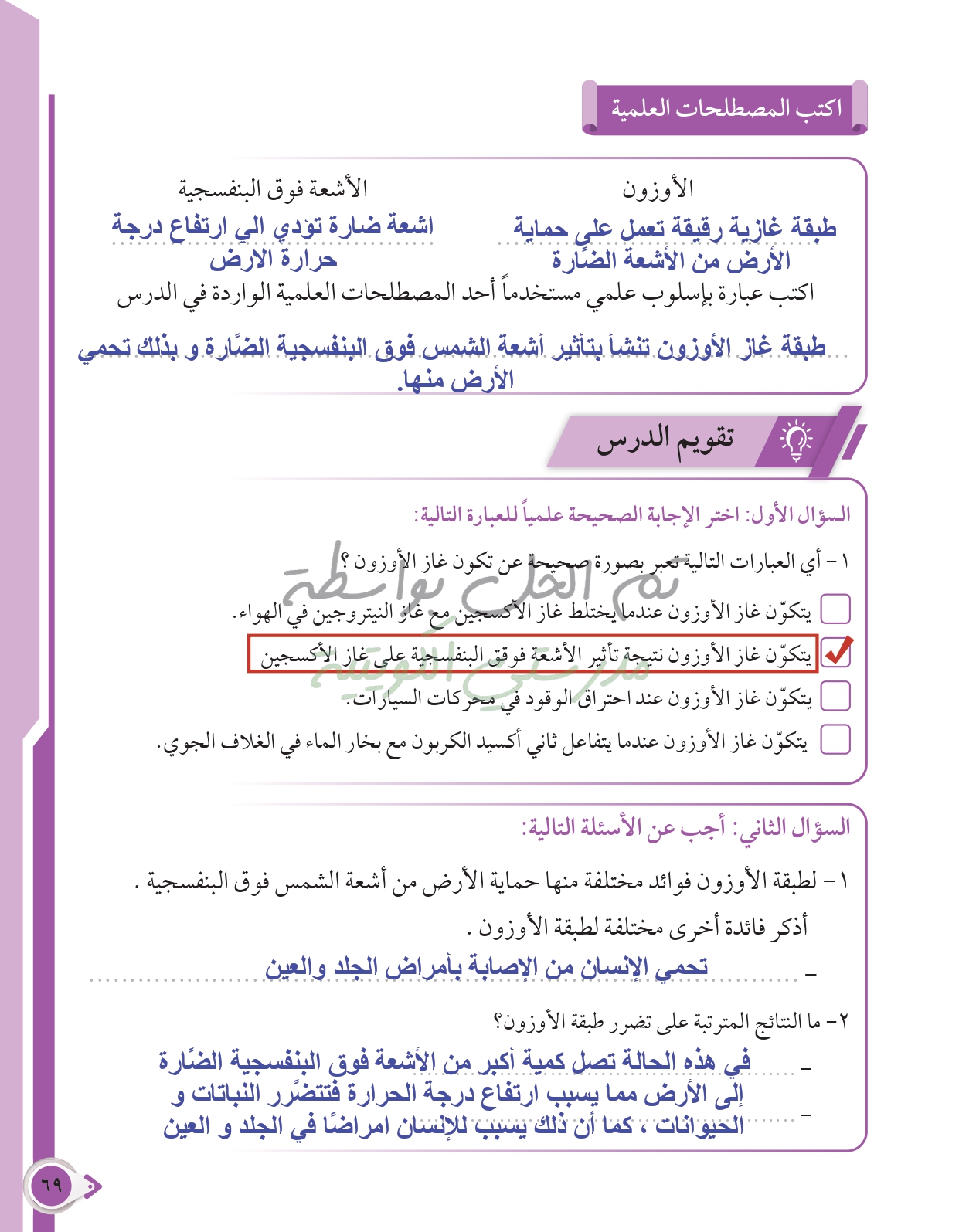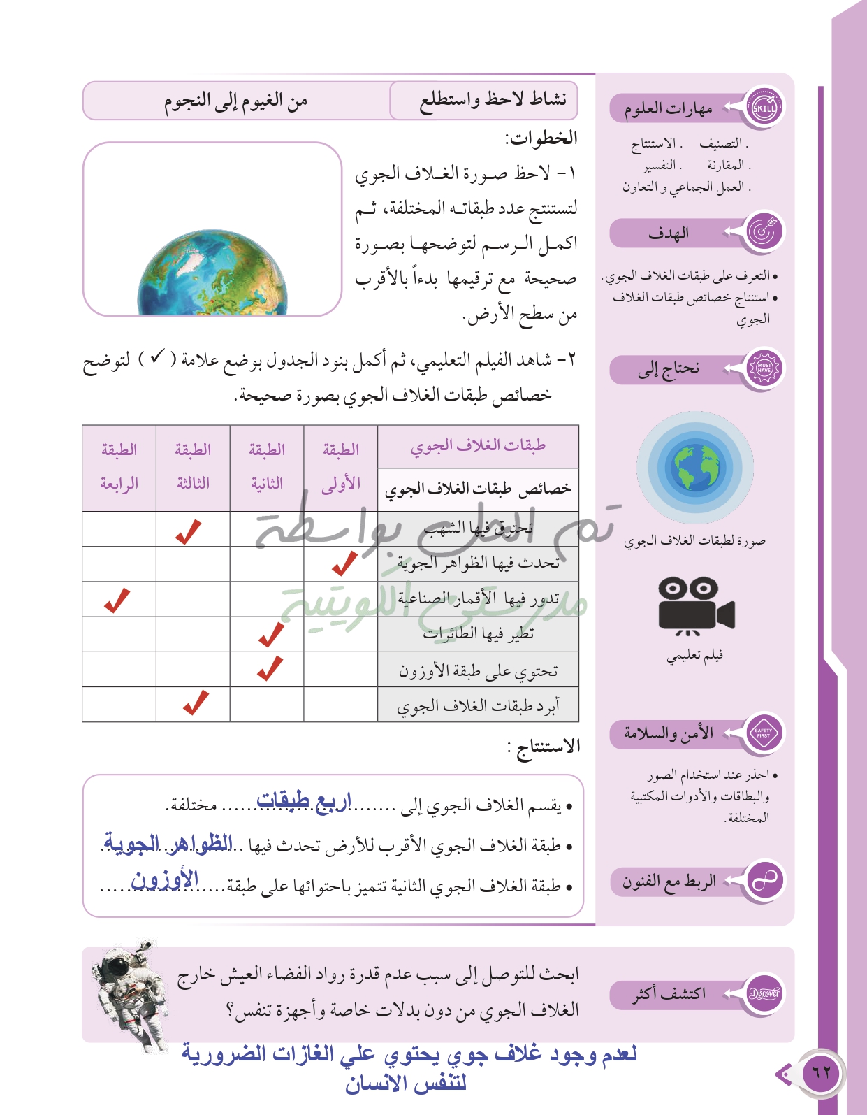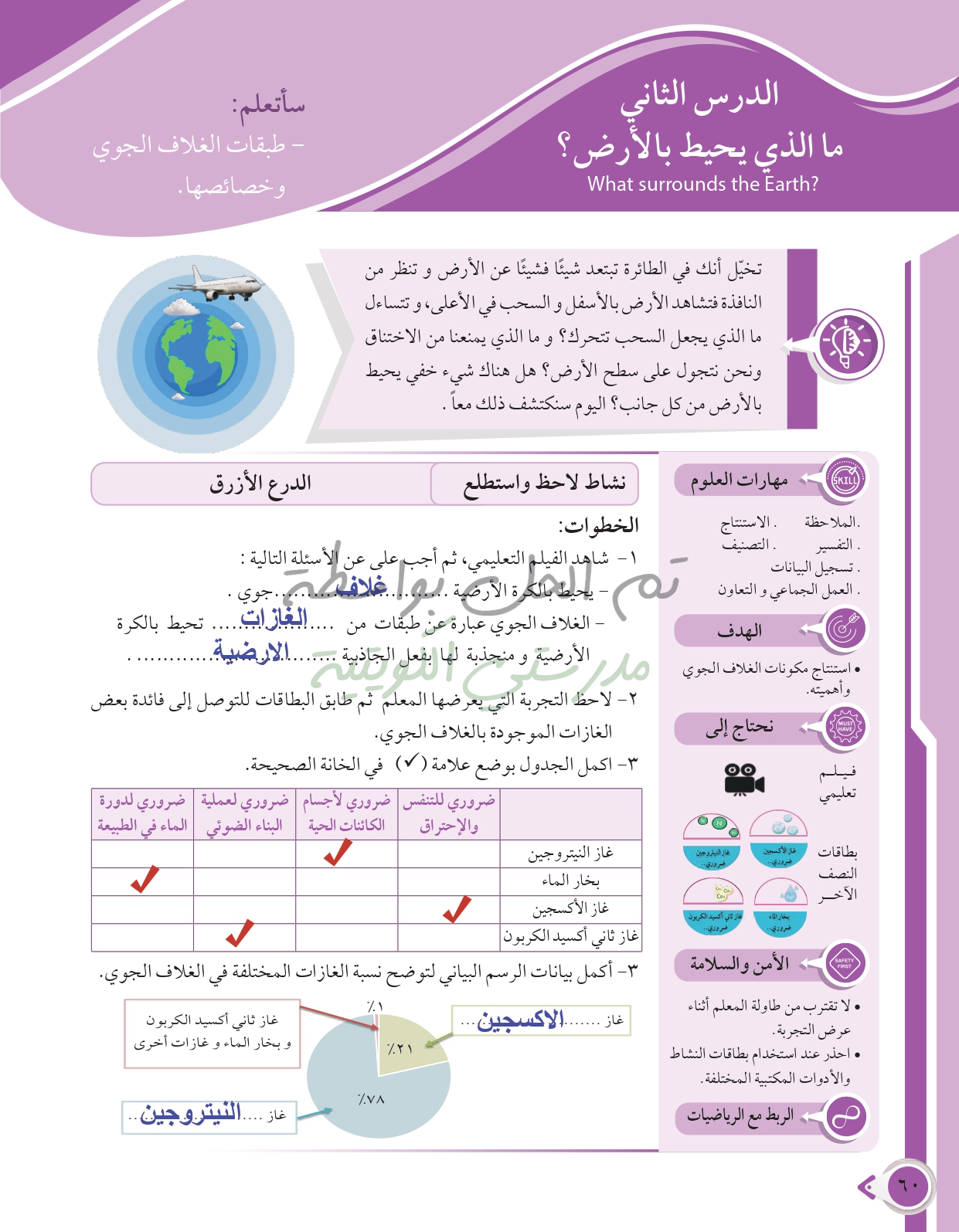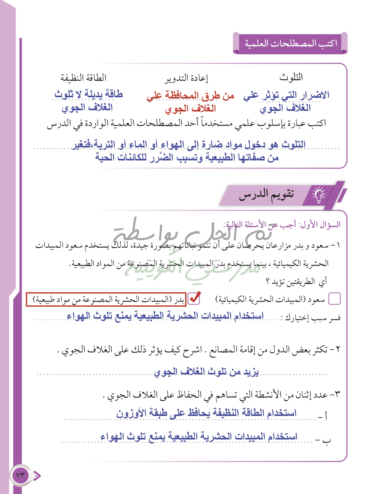 أسئلة نهاية فصل الأرض والغلاف الجوي