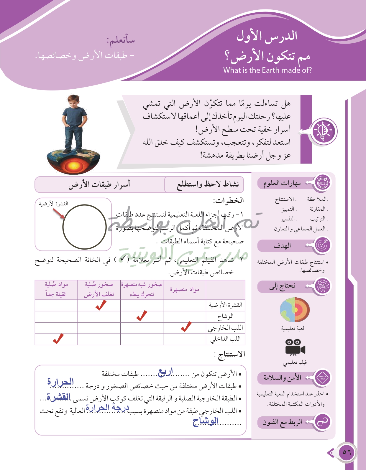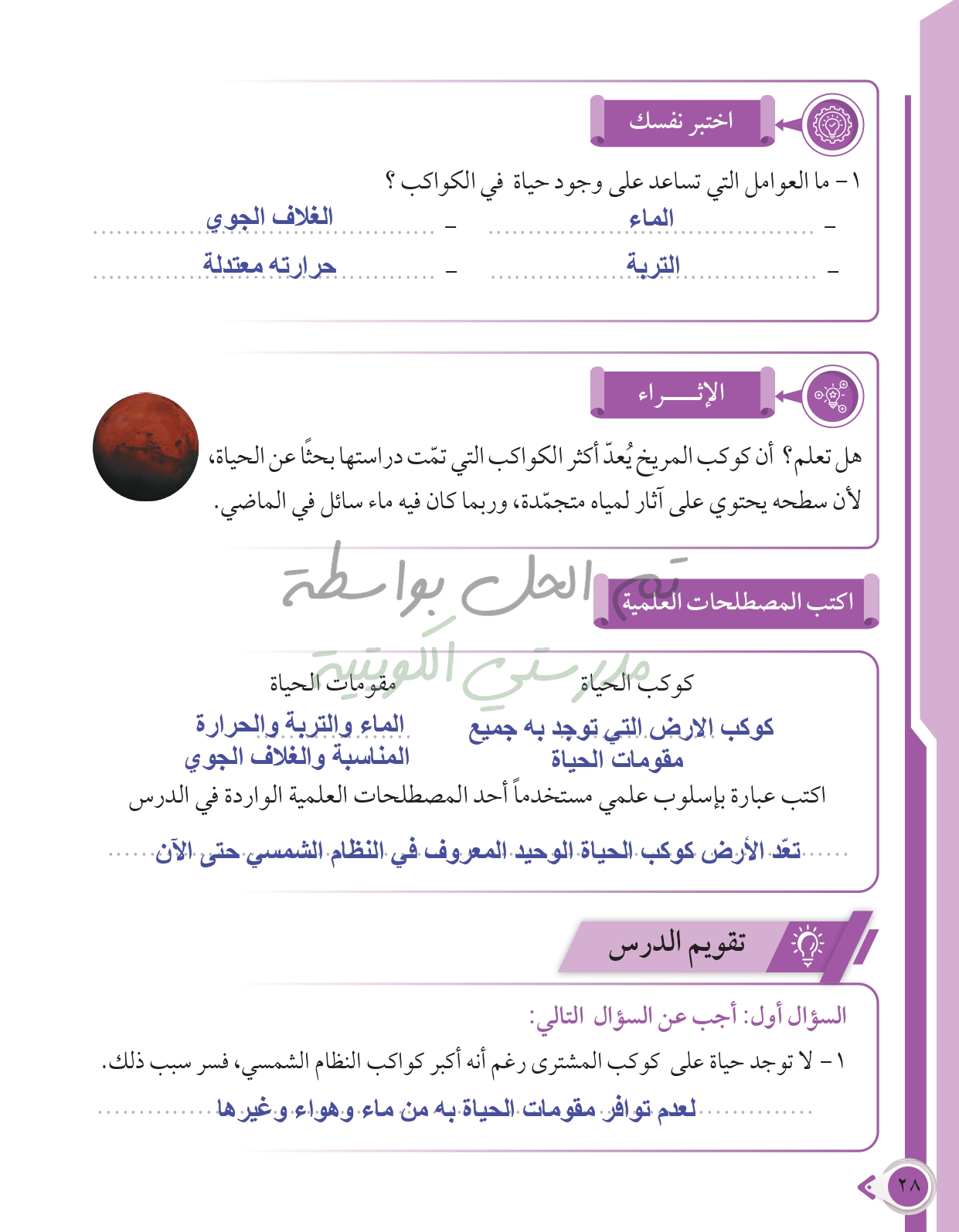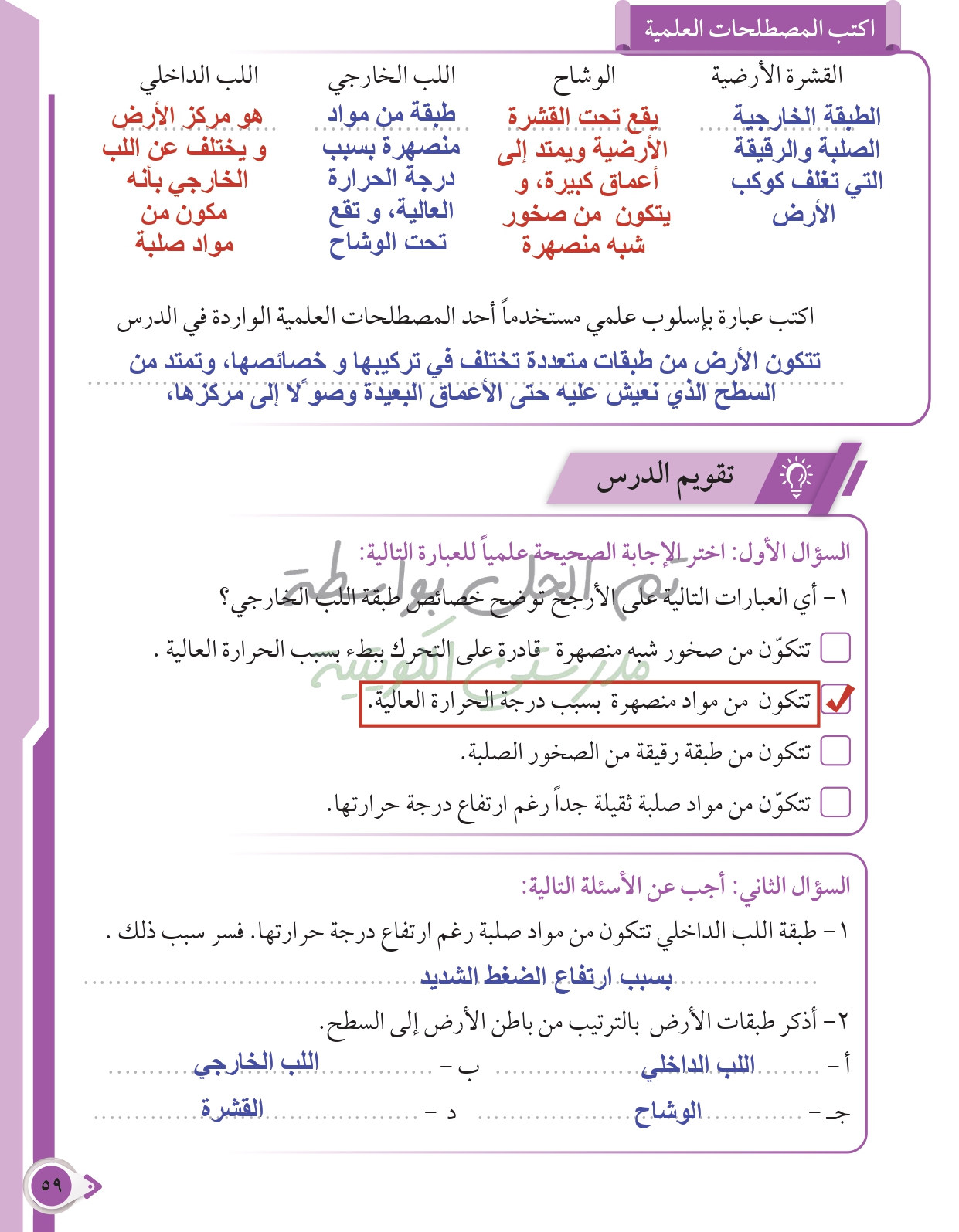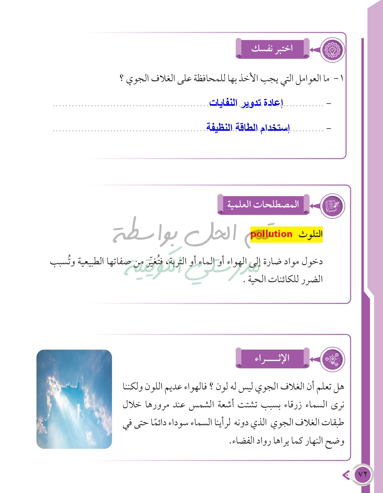 أسئلة نهاية فصل الأرض والغلاف الجوي