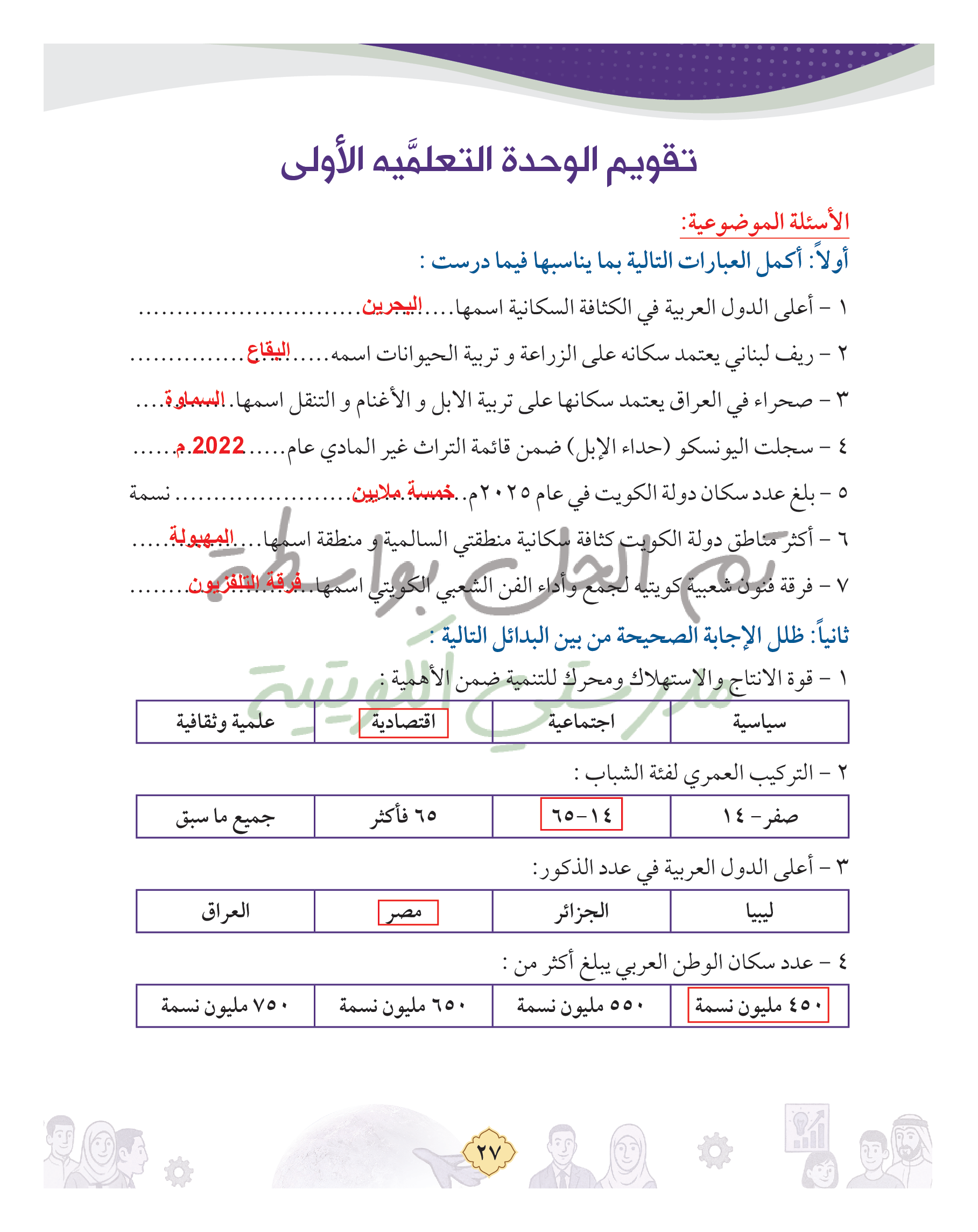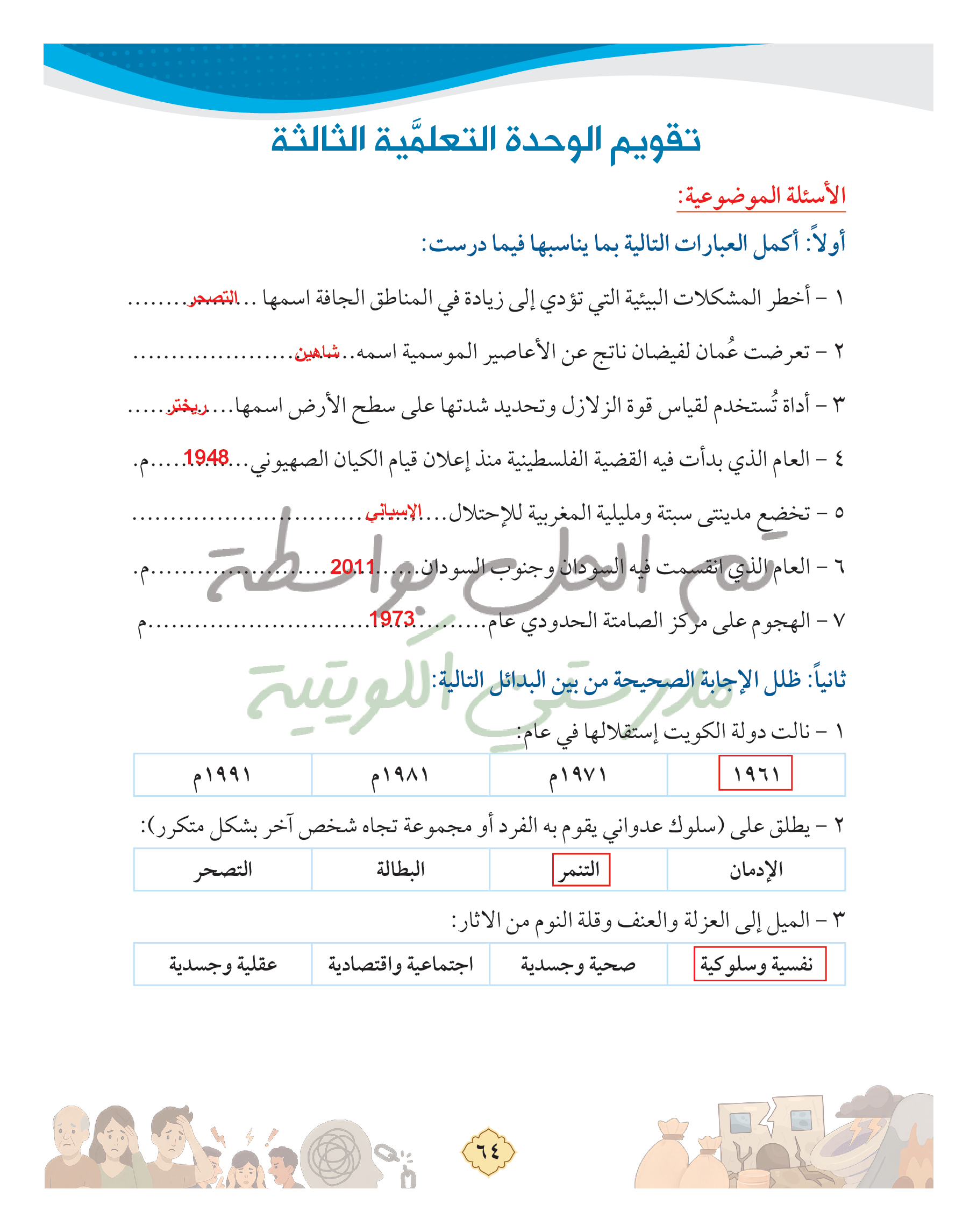 تقويم الوحدة الثالثة