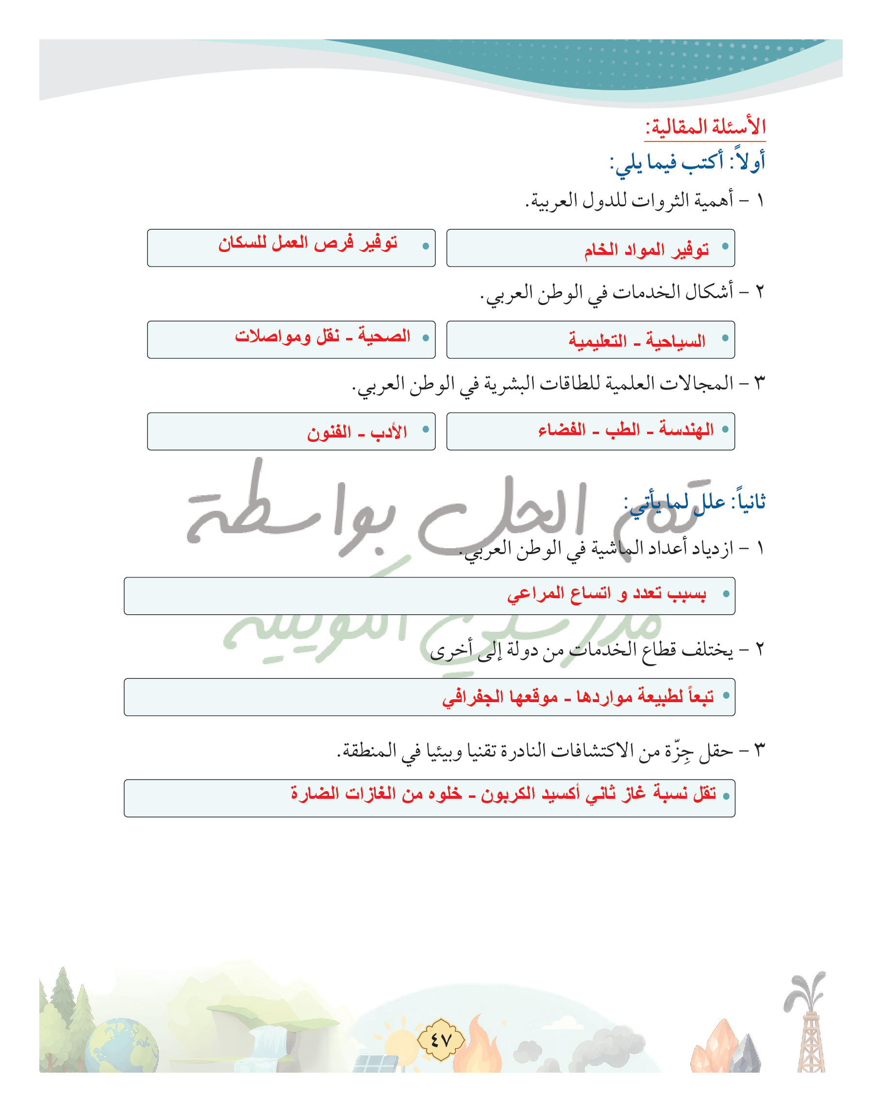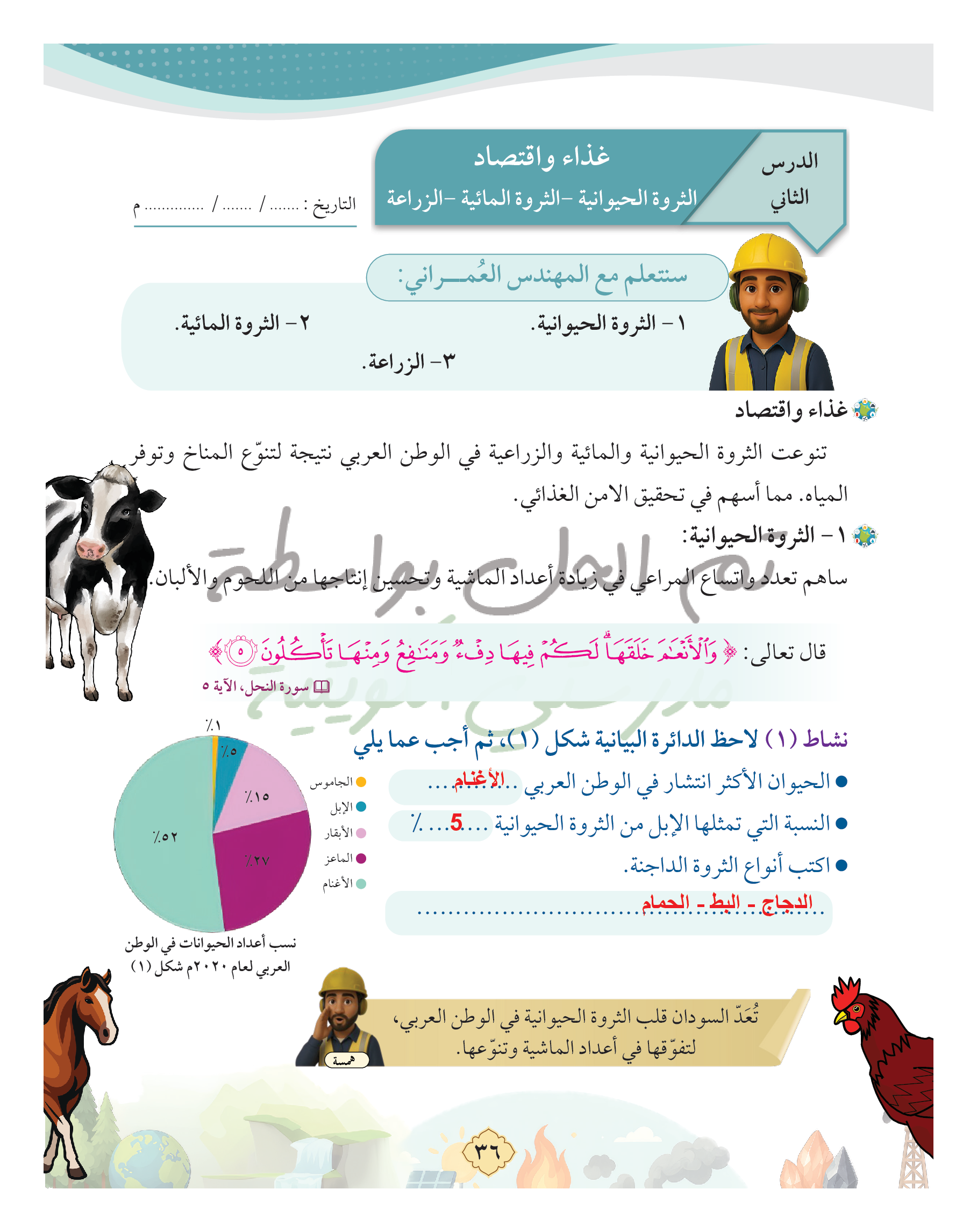 غذاء واقتصاد (الثروة الحيوانية - الثروة المائية - الزراعة)